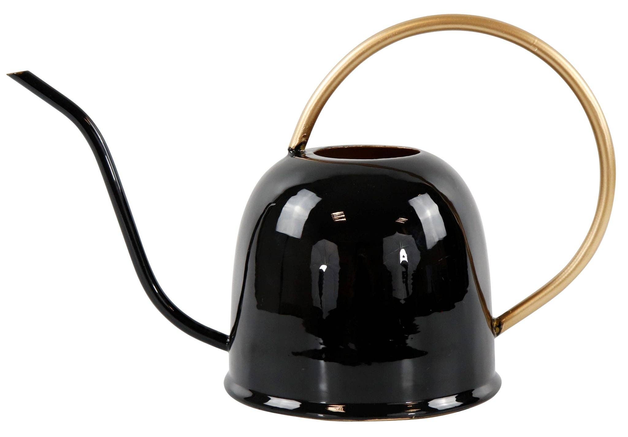 Regador de metal com dimensões de 39 x 20 x 22 cm.