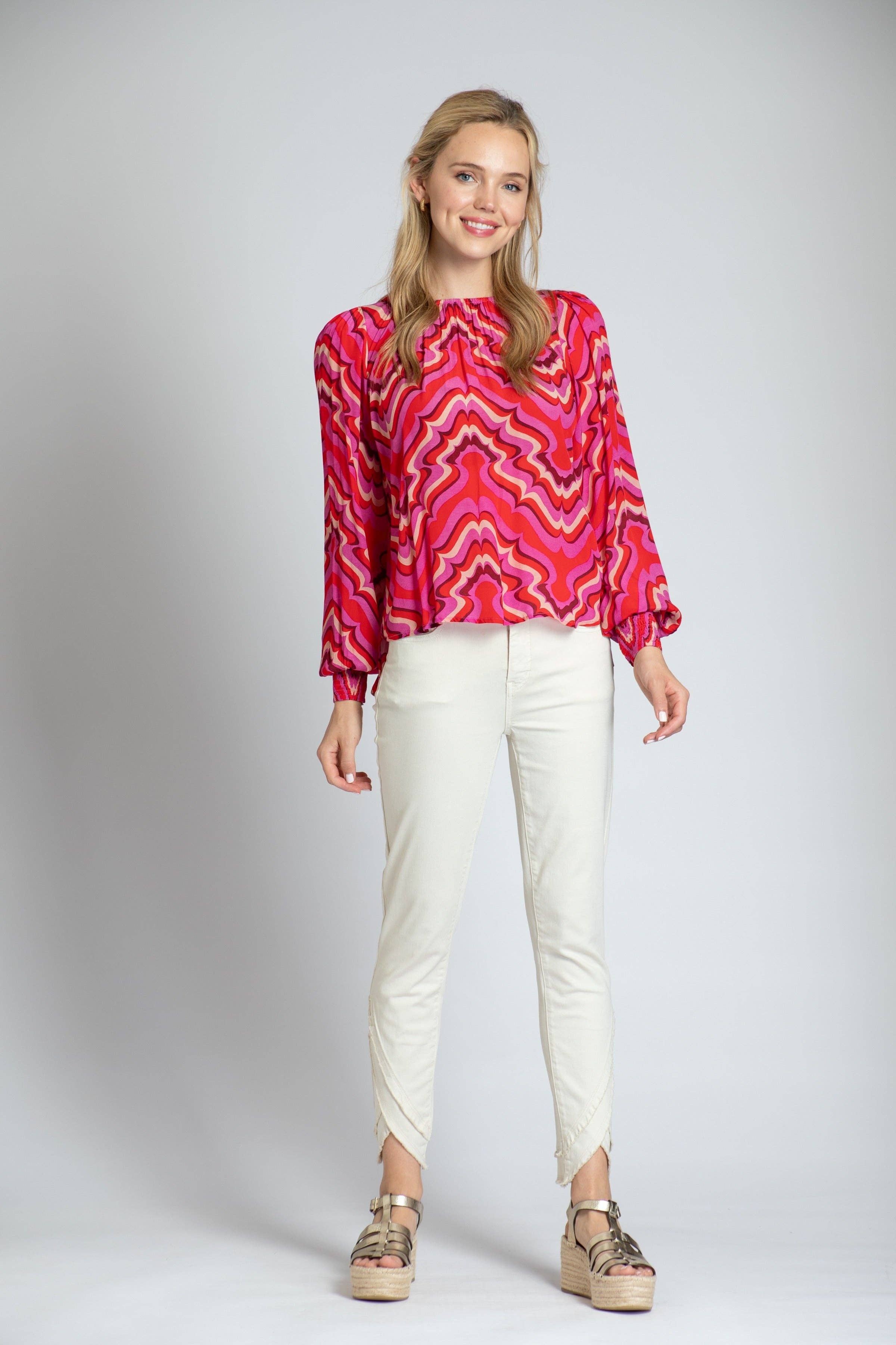 Blusa Envelope Estampada c/Punhos com Aba
