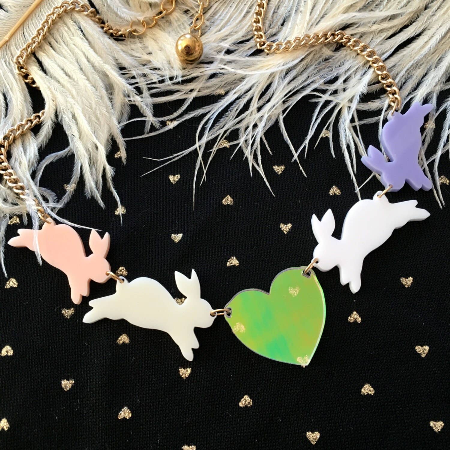 Este colar é tão precioso! Eu projetei o pingente no meu computador e o cortei a laser de acrílico fosco de 1/8”. Ele está pendurado em uma corrente de prata de 16 “com um extensor de 3". O pingente tem aproximadamente 4 polegadas por 1 1/4 de polegada. Os colares são resistentes, mas você ainda deve ter um pouco de cuidado com eles... só não os jogue no fundo da bolsa!