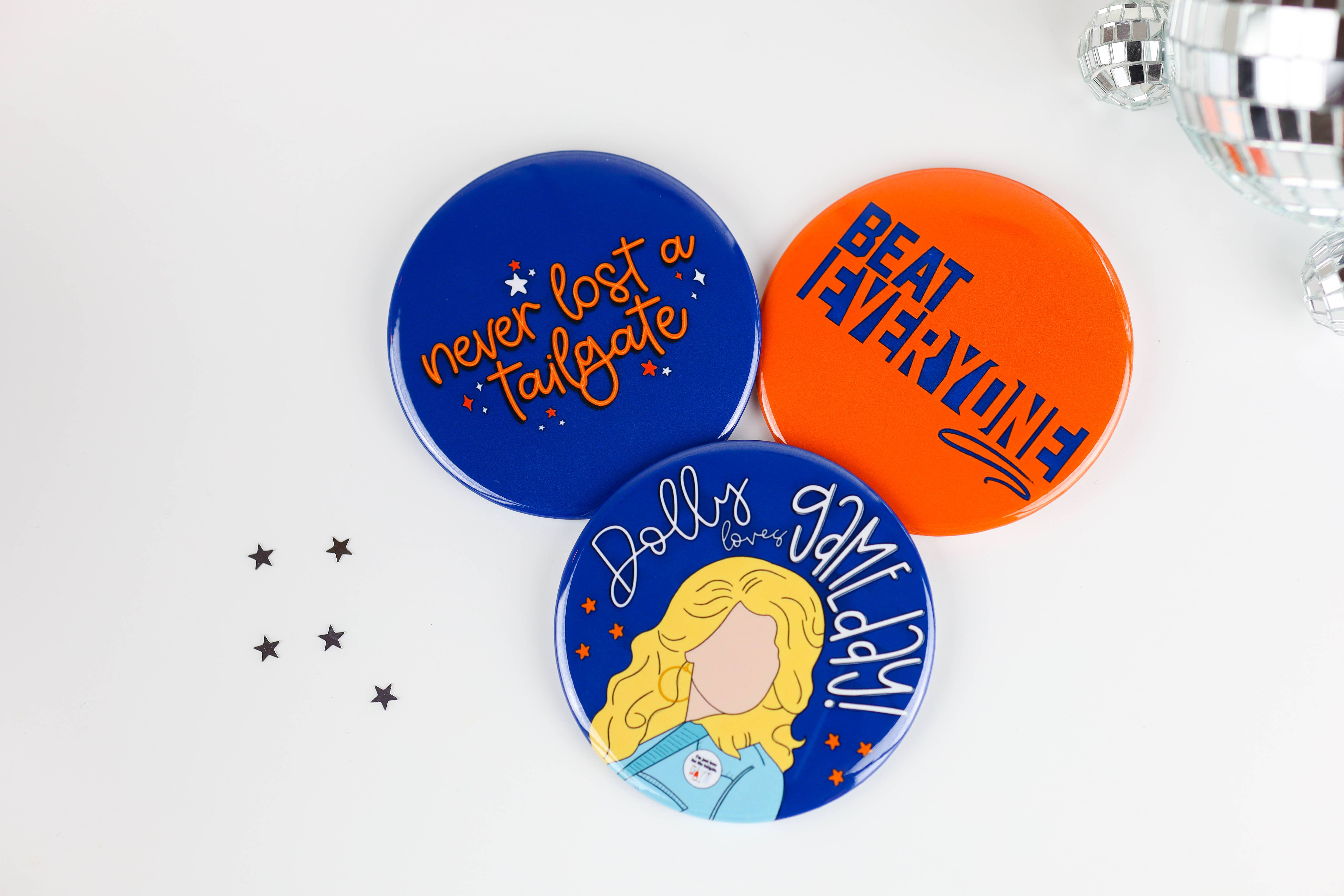 Adoramos os botões do dia do jogo que recebemos da Tailgated! Eles esgotam ano após ano.