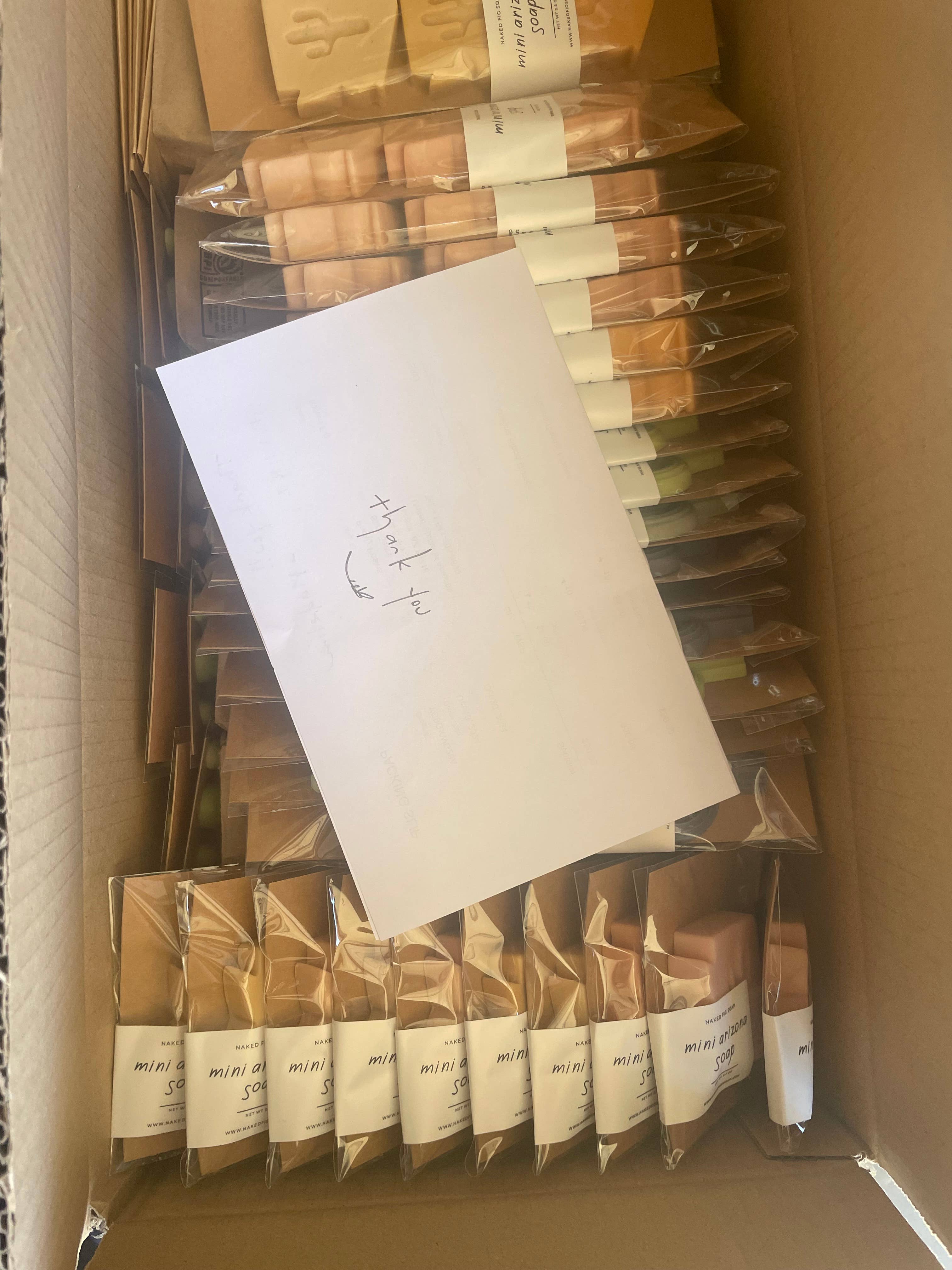 Inspirados pelo icónico cacto saguaro, estes mini sabonetes incorporam a beleza e resiliência da paisagem do Arizona. Com uma estética simples e limpa, são uma adição encantadora a qualquer exposição. Cada sabonete pesa aprox. 20 g e mede cerca de 5,7 x 5,7 cm. Feitos com a mesma base de Manteiga de Karité SFIC vegana e não tóxica da nossa Coleção Arizona, contribuem para os nossos valores de desperdício mínimo ao utilizar sobras de sabonete de outros lotes. Opções: • Standard – Vários tons de verde com uma mistura de fragrâncias leves e frescas dos nossos mais vendidos (Flor de Cacto, Agave, Zimbro, Pera Espinhosa, Laranja Sanguínea) • Cor Personalizada – Acrescenta €0,10 por sabonete • Rótulo Personalizado – Acrescenta €0,40 por sabonete Personalização adicional disponível mediante pedido — por favor, envie uma mensagem antes de encomendar. Ingredientes: Base de Manteiga de Karité SFIC totalmente natural (Manteiga de Karité, Óleo de Oliva, Óleo de Coco, Óleo de Palma, Óleo de Cártamo, Água Purificada, Glicerina Vegetal, Hidróxido de Sódio, Sorbitol, Proteína de Aveia) com variações de óleo de fragrância e corantes de mica.