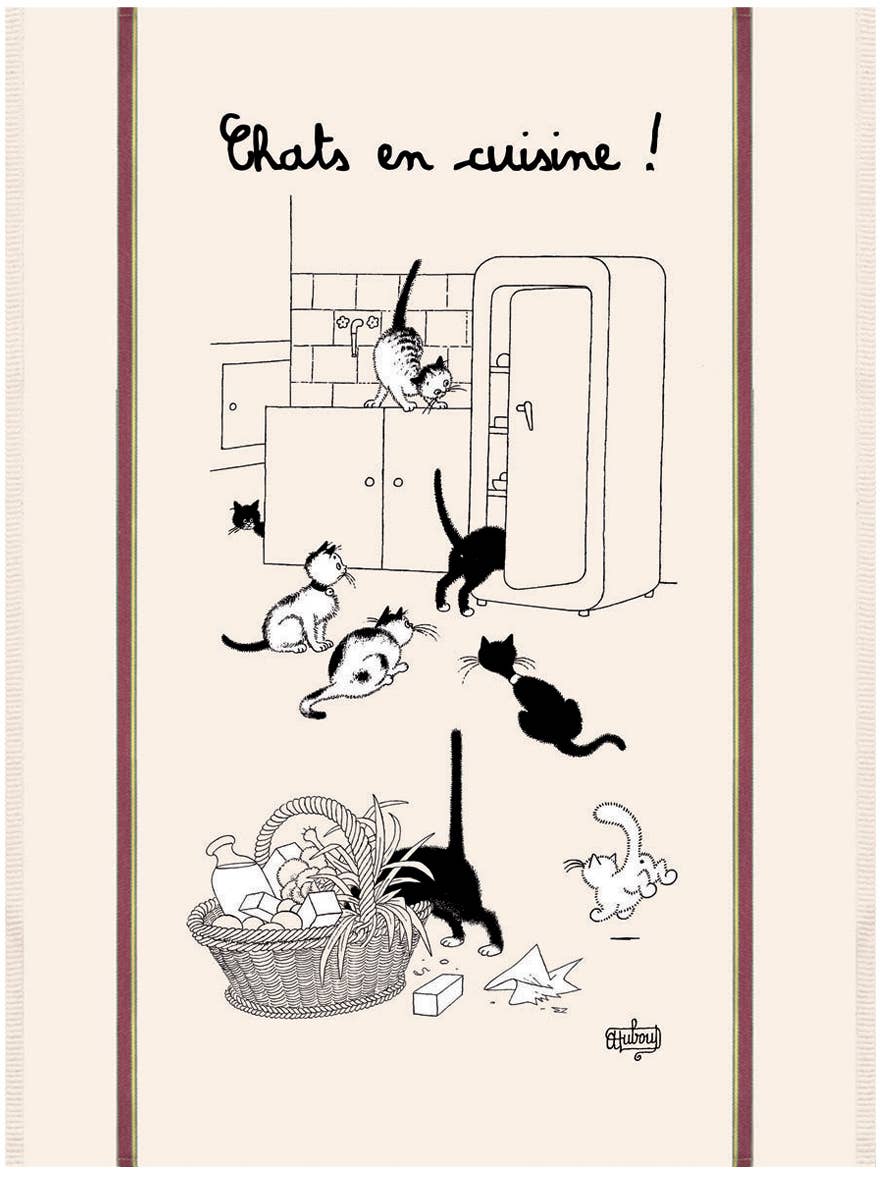Toalha de chá grande Dubout Cats In Kitchen Ecru 60 X 80