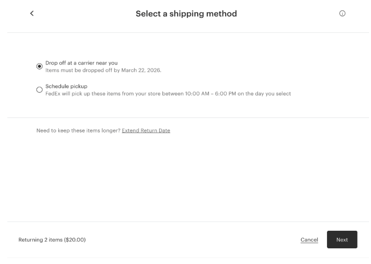 Select your return shipping method: