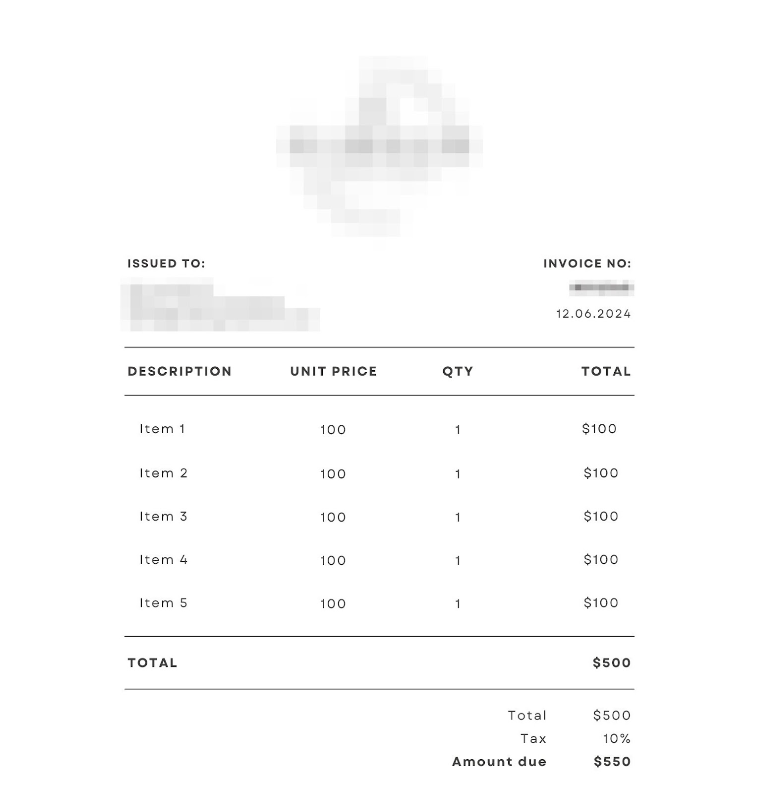 Example of an acceptable invoice: