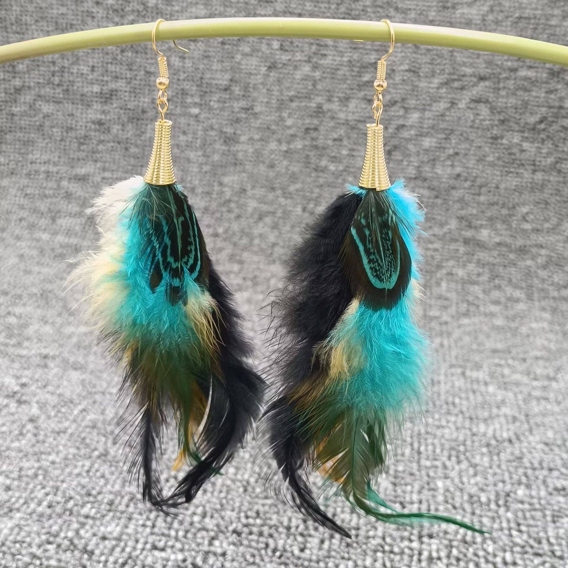 Type: earrings Material : Feather,Copper Size : 37mm * 182mm ★Made of high quality material, Nickel-free / Lead-free, Harmless to Human Body. ★Perfect jewelry gifts