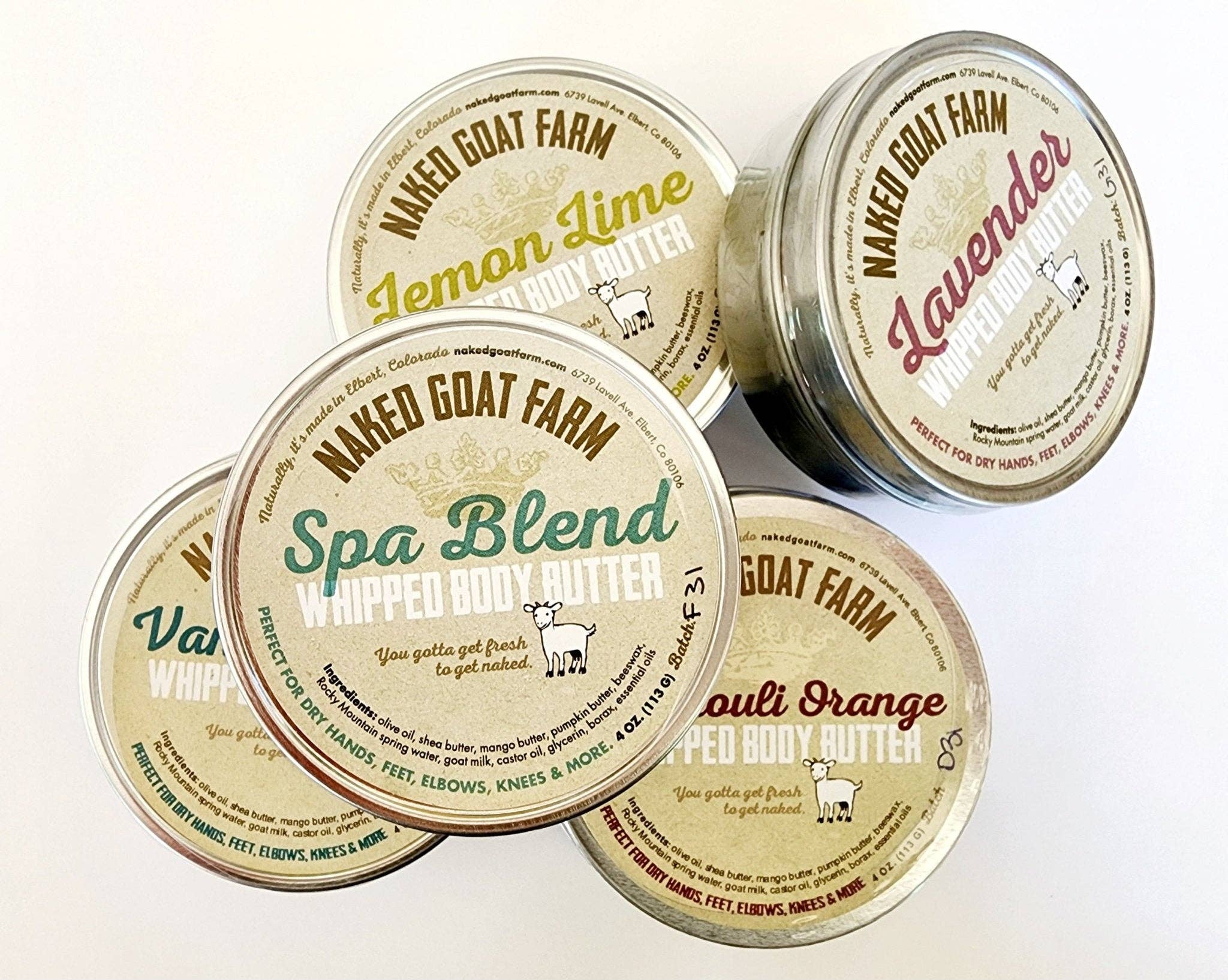Naturligtvis, det är tillverkat i Elbert, CO. Vi handtillverkar våra getmjölkstvålar och lotioner med helt naturliga ingredienser som sheasmör, getmjölk och ångdestillerade eteriska oljor. Alla våra produkter är gjorda med känslig hud i åtanke, därför använder vi bara färska minimalt bearbetade växtbaserade oljor, smör och getmjölk. Dessa råvaror hämtar vi från små gårdar runt om i världen, alla rättvisemärkta och etiskt producerade, eller från vår egen 40 hektar stora gård i Colorado. Du måste bli fräsch för att bli naken. Sylt & Gelé, Vi gör vår sylt och gelé i små satser i vårt kommersiella kök i Elbert, Colorado. Vi använder lokala, naturligt och/eller ekologiskt odlade ingredienser utan GMO eller bekämpningsmedel, ekologiskt socker och vegansk pektin från apelsiner. Ren och bevarad toppfräschhet i varje burk! Skicka gärna ett snabbt meddelande på faire för att säga hej innan du lägger en beställning. Frågor??? Skicka oss ett e-postmeddelande nakedgoatfarm@gmail.com.