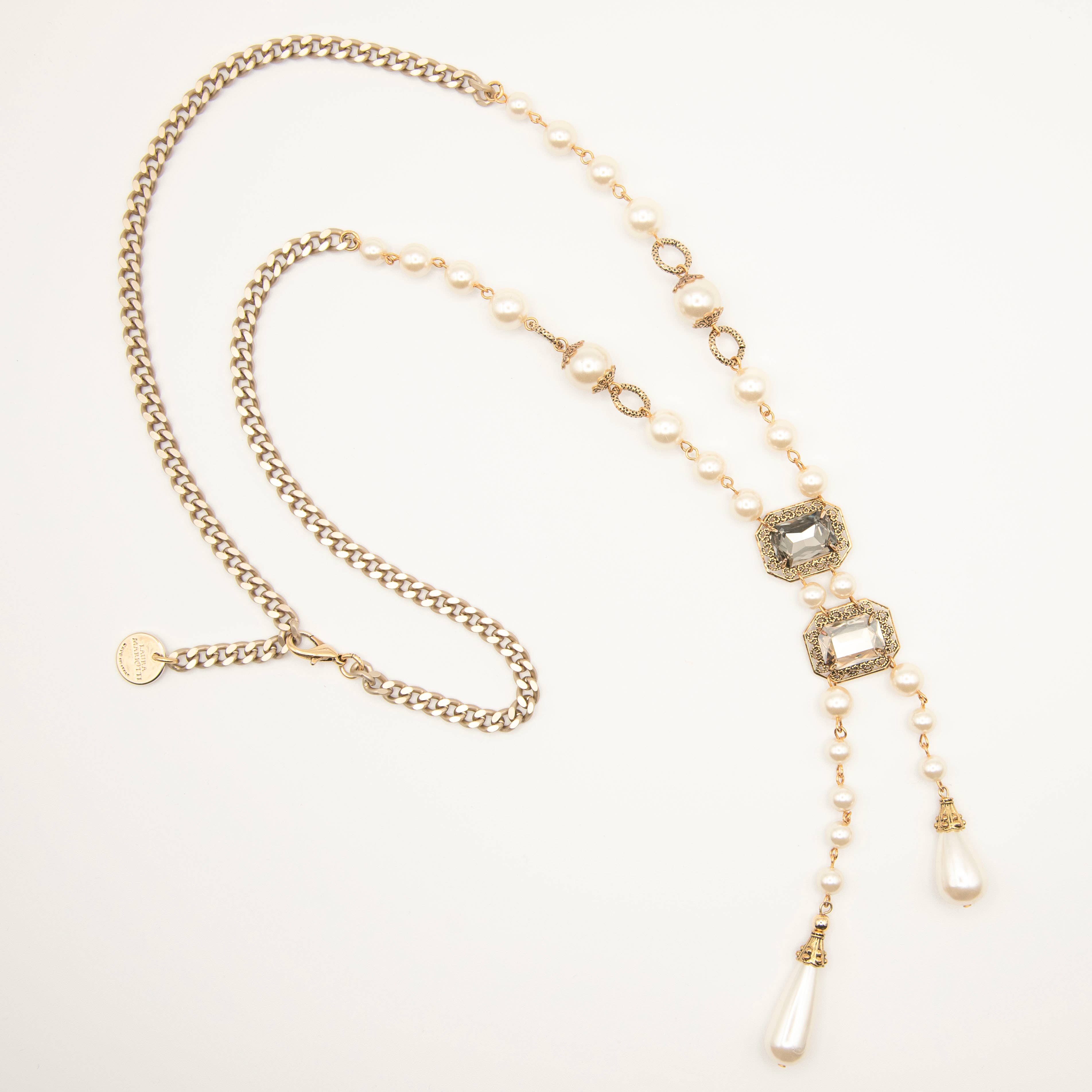 Laura Mariotti - luxurycollections varumärke föddes från en viktig kreativ process som utvecklats av skaparen under de många år av stilistisk konsultation som genomfördes inom mode- och accessoarsektorerna. Syftet med projektet är att erbjuda sofistikerad och smakfull bijoux som är född ur inspiration, tankar och förslag relaterade till resor, mode, film och konst. Det är forskning och studie av raffinerade material som kristaller, pärlor, halvädelstenar, färgade metaller, hartser, keramik, glas, vars harmoniska fusion skapar samlingar som alltid är unika. Halsband, armband, örhängen: bijoux med en stark personlighet perfekt samordnad i ”fönster” som är avsedda att överföra rena, rika och energiska känslor till kvinnan som kommer att bära dem eller som kommer att få dem som en gåva. Genomförandet av hela projektet är feminint och anförtros skickliga italienska hantverkare, med respekt för kulturen ”Made in Italy”.