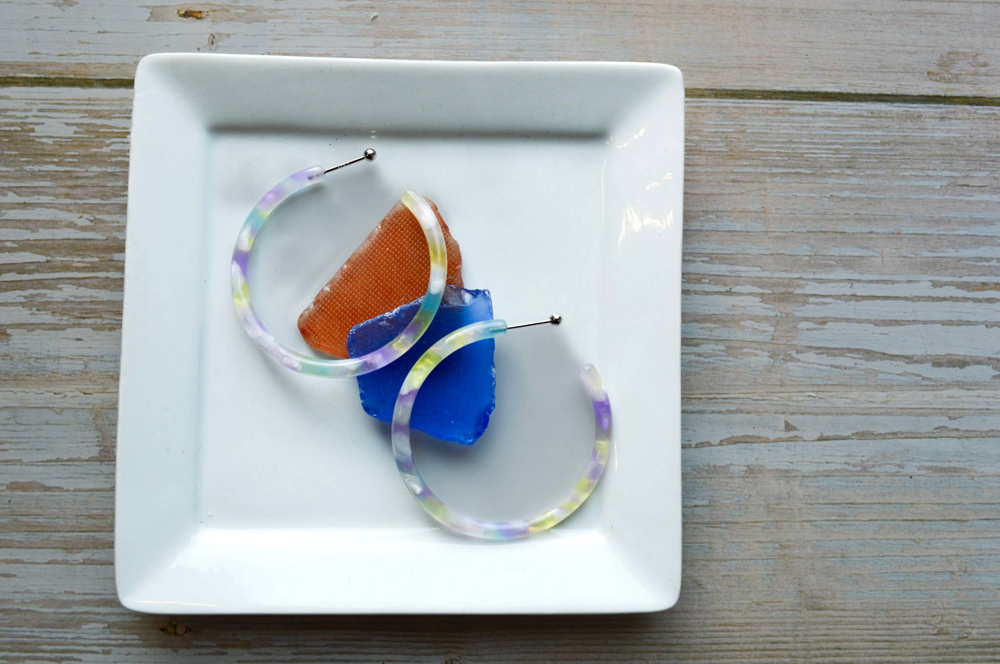 Vi är engagerade i ett hållbart mode och skapar smycken och håraccessoarer med hjälp av en växtbaserad och biologiskt nedbrytbar plast som kallas cellulosaacetat. Cellulosaacetat är tillverkat av bomullsmassa och ättiksyra. Det är icke-petroleumbaserat och miljövänligt! Vårt acetatmaterial kommer etiskt från Italien och Japan. Alla våra produkter är designade av mig och tillverkade i våra studior i Kina och Boise, Idaho. Alla delar är anbringade med allergivänliga kirurgiska stålstolpar och/eller 0,925 sterlingsilver.