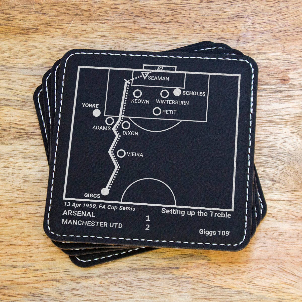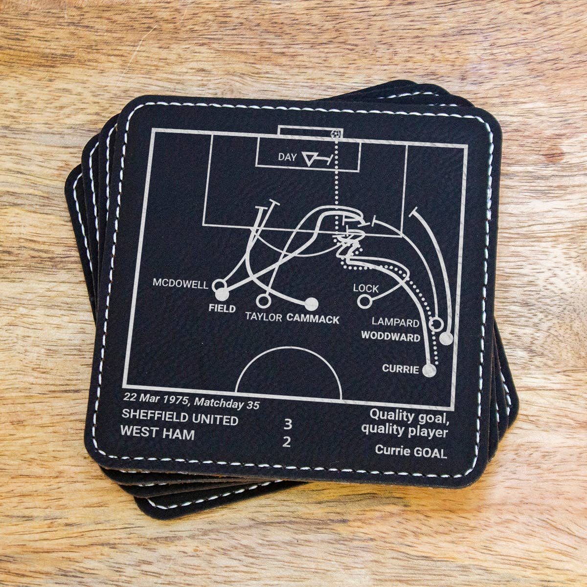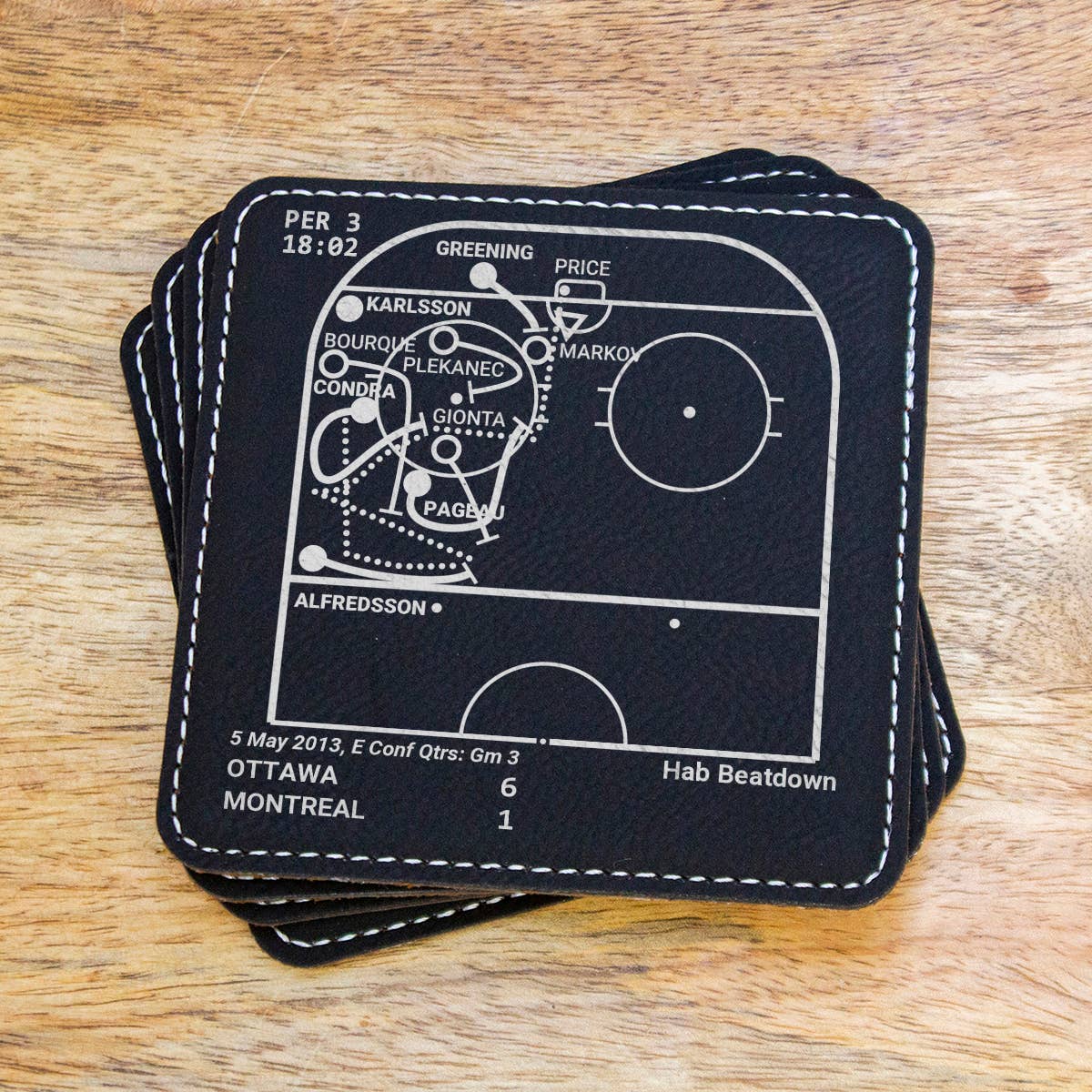 Som sportfans har vi alla våra favoritspel. Dessa spel handlar lika mycket om oss - fansen - som de handlar om lag och spelare. Vi kommer alltid att minnas vad dessa stunder betyder för oss. Var och en av våra produkter berättar en historia, en som du kan dela med dina gäster eller återuppleva när du väntar på att en match ska börja. Detta företag började med en uppsättning skifferunderlägg som var en gåva till min brors 30-årsdag. Med honom 3000 mil bort får vi inte ofta chansen att titta på matcher tillsammans, men sport har alltid varit ett starkt band mellan oss. Jag undersökte de viktigaste ögonblicken i hans lags historia och diagrammade pjäserna så att han kunde återuppleva dem varje gång han satte sig vid sitt soffbord. Med mer än 14 000 femstjärniga recensioner... har vi vuxit till ett varumärke som kunderna älskar och litar på. ** MEDDELANDE: Ingen sportspelare, lag, liga eller playoff är ansluten till Playbook Products™ eller är källan till, ansvarar för eller har godkänt, sponsrat eller godkänt dessa produkter. **