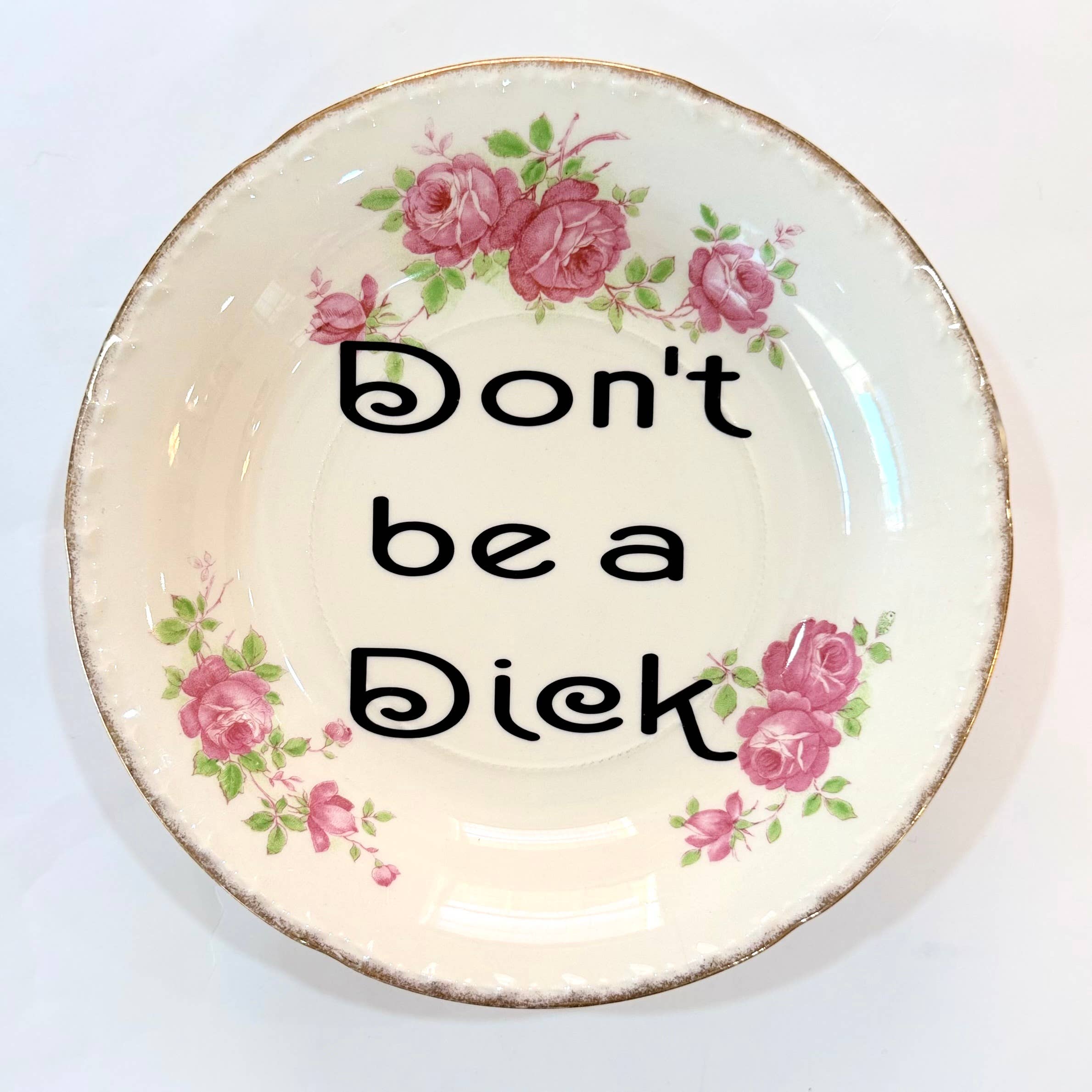 Un Péché Mignon Efter att ha ägt en butik i hjärtat av French Quarter, New Orleans, i över 25 år, började jag göra vintage-tallrikar med oväntade—och oförlåtande—twister: klassiskt porslin, söta blommönster… och ett välplacerat svärord. Det som började som ett udda sidoprojekt för min butik blev snabbt en kundfavorit. När jag fick min dotter, bytte jag fokus för att helhjärtat skapa dessa unika föremål under namnet Un Péché Mignon—franska för "en skyldig njutning." Det kändes rätt. Varje tallrik är handplockad, handgjord och helt unik—ingen är den andra lik. De är eleganta, respektlösa och precis lagom fel. Vi är ett kvinnligt ägt, New Orleans-fött varumärke byggt på humor, uppror och en djup kärlek till vintage. Perfekt för kunder som vill ha lite edge med sin etikett. För ibland… känns det bara bättre att vara lite dålig på fint porslin.
