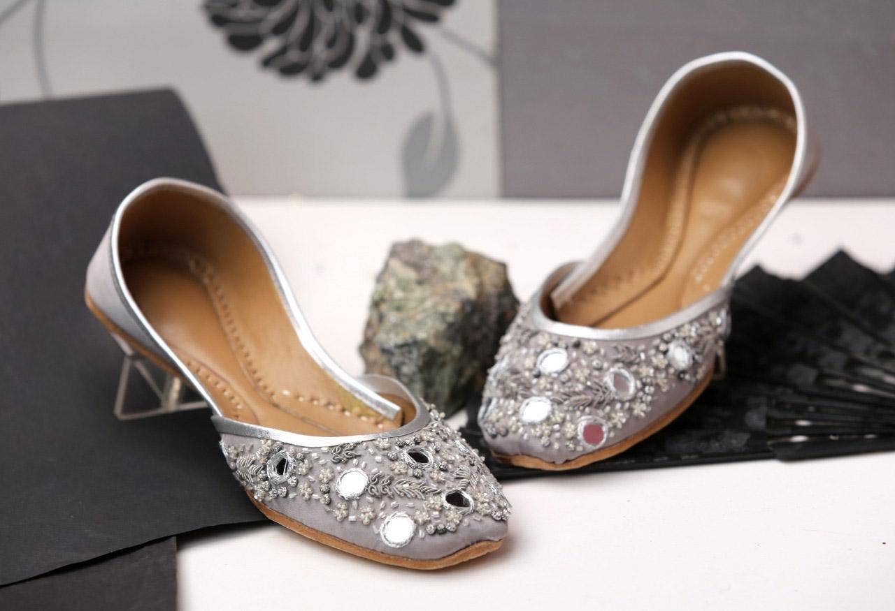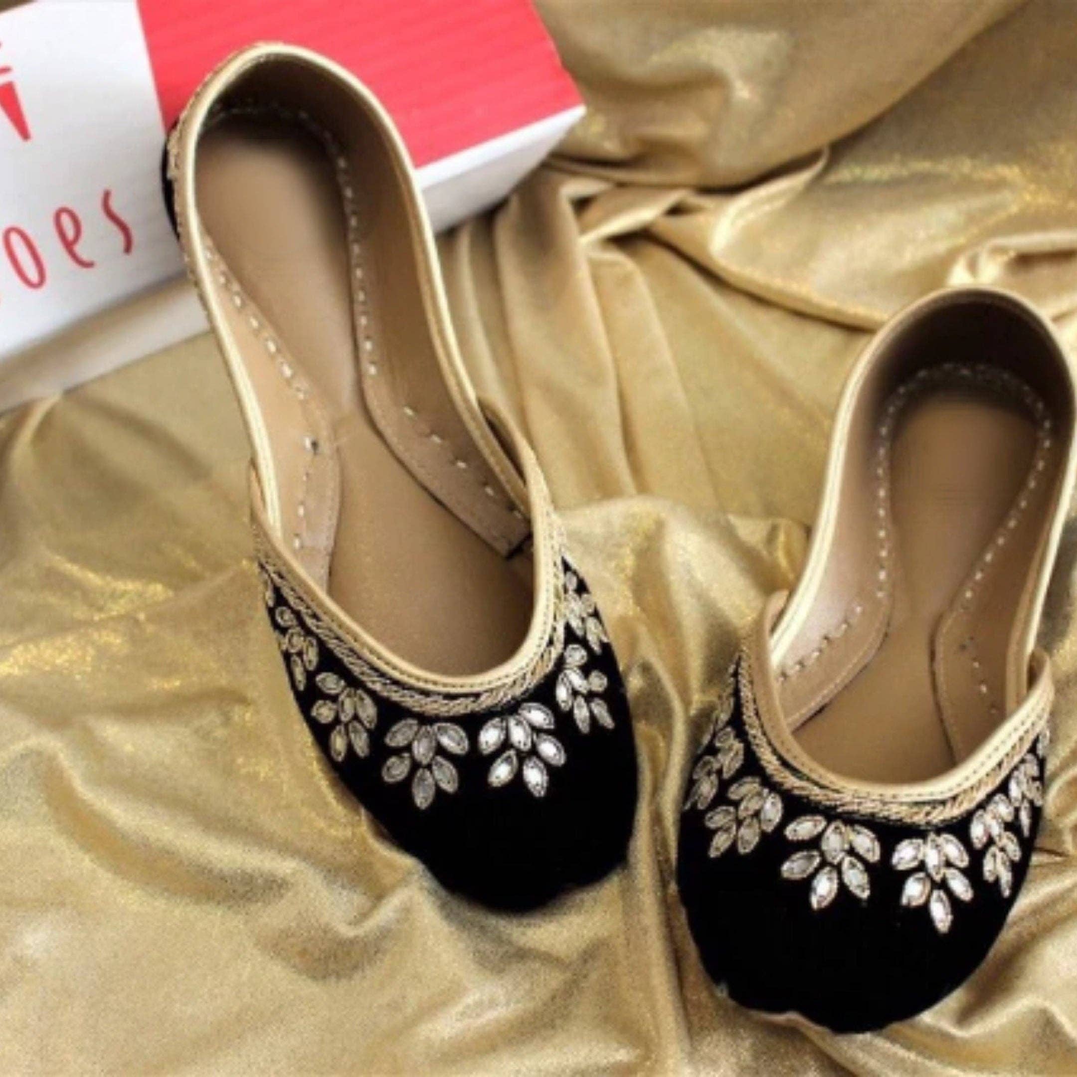 Henna, hjärtat och själen bakom Qhareed, började sin resa 2018 med ett enkelt men personligt uppdrag: att skapa lyxiga platta bröllopsskor som får varje kvinna att känna sig speciell, bekväm och självsäker. Efter att ha sett brudar kämpa med smärtsamma klackar på sin stora dag insåg hon att det fanns ett behov av något bättre. Och så tändes gnistan för Qhareed. Fast besluten att skapa en lösning blandade Henna sin passion för traditionella skor som Khussa och Punjabi Jutti med modern design för att skapa eleganta, bekväma flats. Hon samarbetade med skickliga hantverkare för att skapa handgjorda designerjuttis som kombinerar trendiga designer, material av hög kvalitet och extra dämpning. Snart började hon få förfrågningar om specialdesignade flats, vilket ledde till personliga alternativ som minnesdatum, initialer, broderi och breda sulor. När efterfrågan växte introducerade hon en vardagslinje för dagligt bruk. Att visa upp sitt arbete på utställningar väckte beundran och inspirerade henne att lansera sin Etsy-butik, där kunderna berömde hennes hantverk. Passionerad för sina skapelser älskar Henna att knyta kontakt med kunder för att förverkliga deras perfekta par. VI HAR FÖRBETALAT TULLAR PÅ ALLA US-LEVERANSER för att göra din beställning stressfri. Om transportören någonsin lägger till en liten avgift kommer de att meddela dig före leverans.