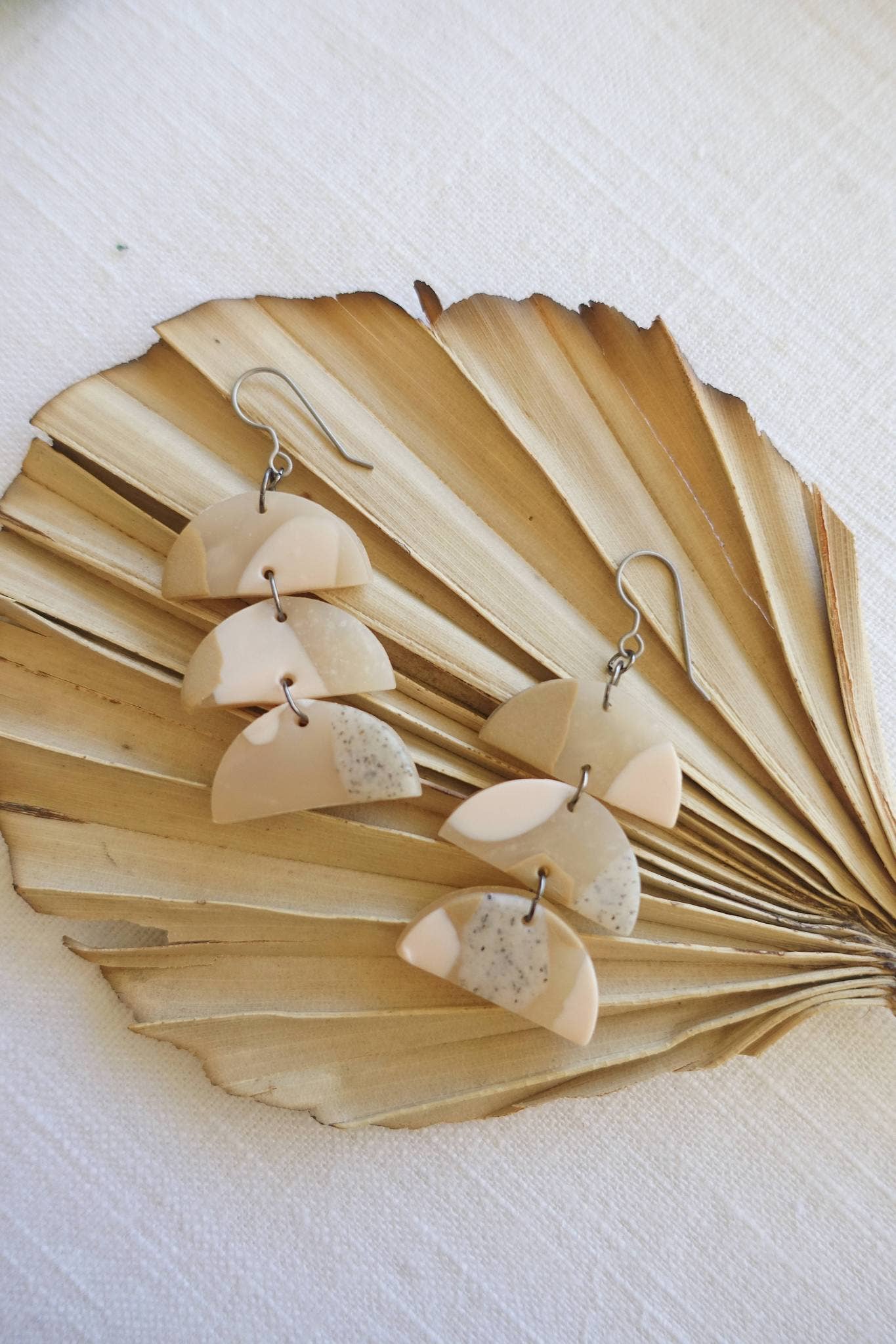 Hey Moon Designs integrerar olika former för att skapa uttalande smycken med minimal design som fokuserar på jordnära toner + geometriska former. Varje del är handmarmorerad, formad och sammansatt av Scarlet Penaloza i hennes hem i Los Angeles. Hey Moon är inspirerad av skönheten i absolut allt, från natur, konst, till landskap. Namnet kommer från låten ”Hey Moon” av John Maus, en låt som hjälper mig att bara stoppa allt och känna sig närvarande med livets kaos.