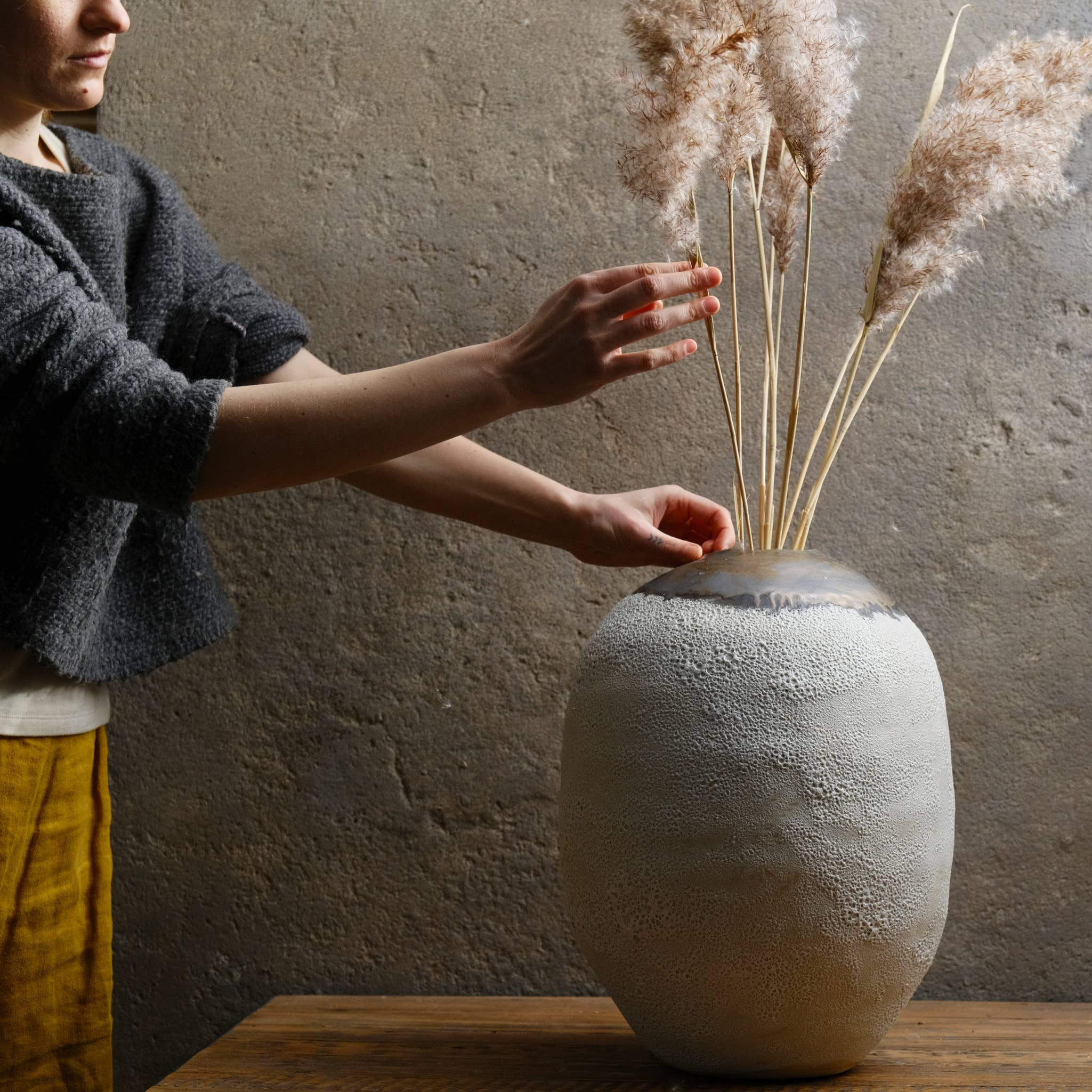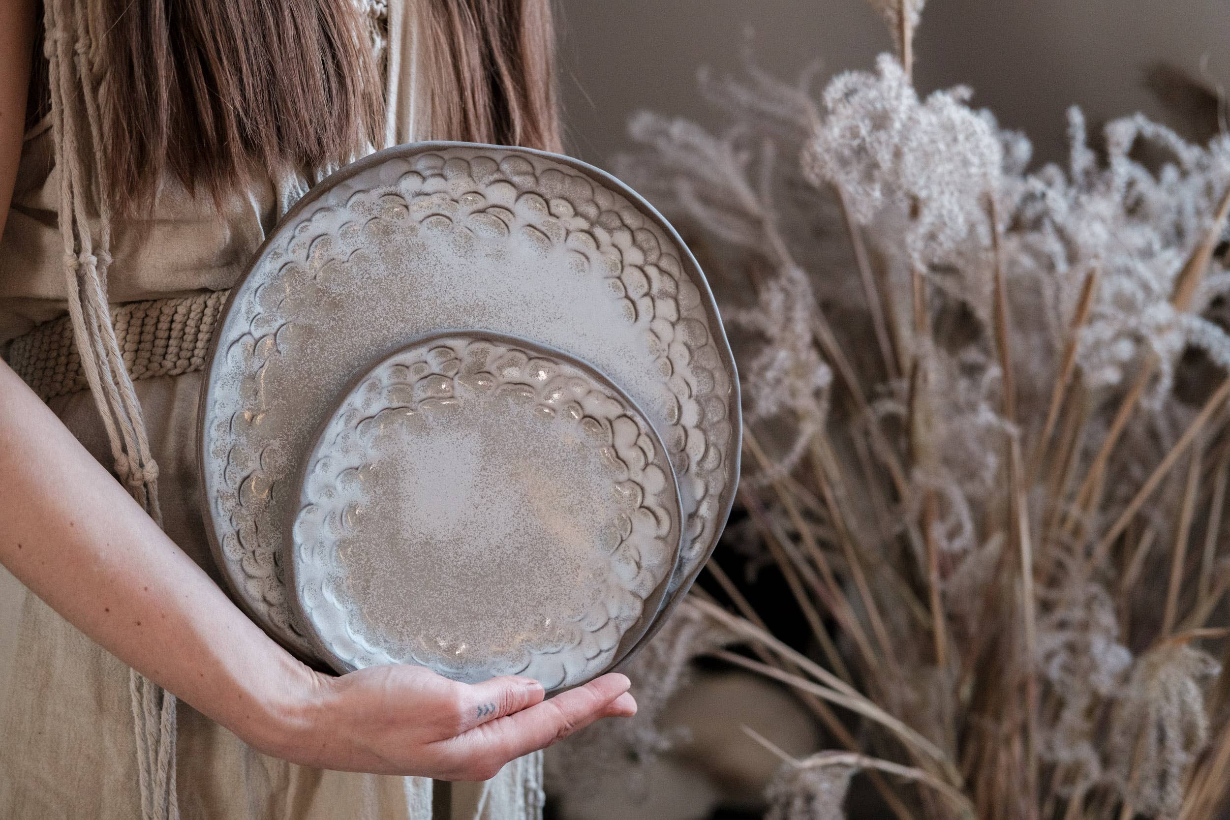 Laima Keramik är en kollektion av servis som är rotad i fusionen av konst, hantverk och design. Varje del är individuellt handbyggd eller drejad i små partier, med varje glasyr och textur utvecklad internt — subtila variationer som återspeglar äkta, långsamt tillverkat hantverk. "Belägen djupt på den lettiska landsbygden designar och skapar jag unika föremål som är avsedda att bli en del av vardagen — objekt som för medvetenhet, omsorg och tyst skönhet till de dagliga ritualerna av matlagning, ätande och delande. Hållbarhet, förvaltarskap och socialt ansvar utgör kärnan i min praktik. Jag hoppas kunna inspirera till en genomtänkt koppling med de föremål vi lever med — en balans mellan det handgjorda och det massproducerade. Varje föremål förkroppsligar min tro på att omsorg i skapandet främjar omsorg i livet." Produktfotografi och beskrivningar får endast användas med full kredit till författaren: "Design och fotografi © Laima Keramik." Att representera vårt arbete med transparens hedrar både hantverket och hantverkarens berättelse. Företagsnamn: SIA Radošā Apvienība Spāres, Moms-ID: LV43603044820, Adress: Urštēni, Bauskas rajons, Svitenes pagasts, LV-3917, LETTLAND