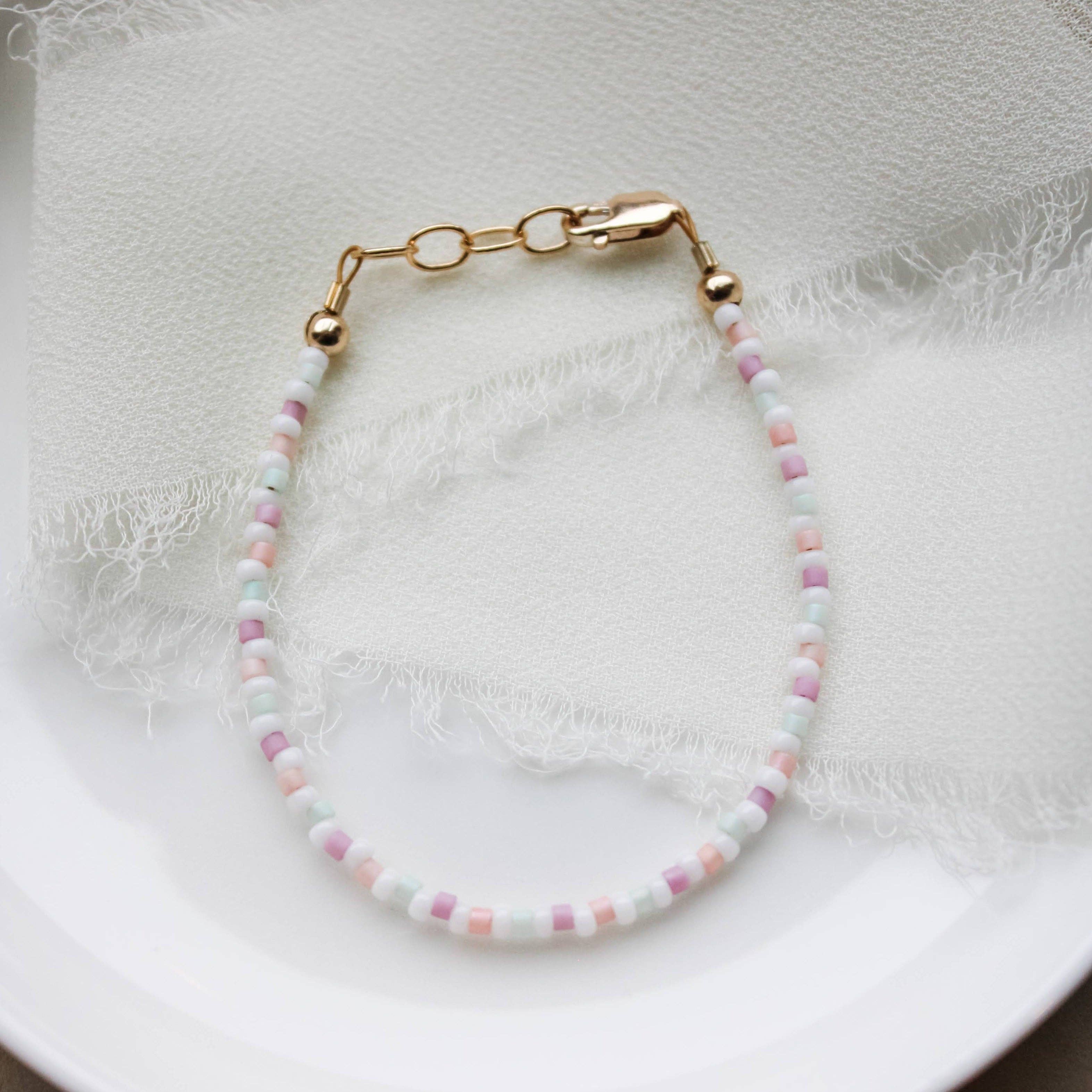 Joyful Bead Company startades av en mamma som växte upp tillsammans med sin mamma som gjorde smycken. Vi älskar att göra högkvalitativa smycken för små och vuxna som håller. För att försäkra kvaliteten använder vi guldfylld eller sterling silver hårdvara. Vi använder hummerspännen som håller längre än vanliga klämmor. Vi vet att du kommer att bli kär i våra armband!