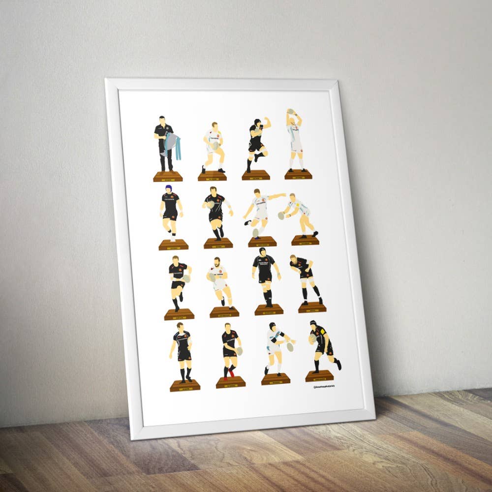 Vi är ett etablerat varumärke med över 8 års arbete inom sportdesignbranschen. Kunder inkluderar National Football Museum, Aston Villa, Manchester City, Leeds United, New York Cosmos, Columbus Crew, England Rugby. Med över 200 olika lag producerade över NFL, fotboll, MLB, NBA, Cricket och Rugby. En stor majoritet av våra tryck firar Hall of Fame eller legender för varje lag. Vi är också specialiserade på ett av legendariska lagtryck eller enstaka år när en klubb har uppnått en enastående prestation eller säsong.