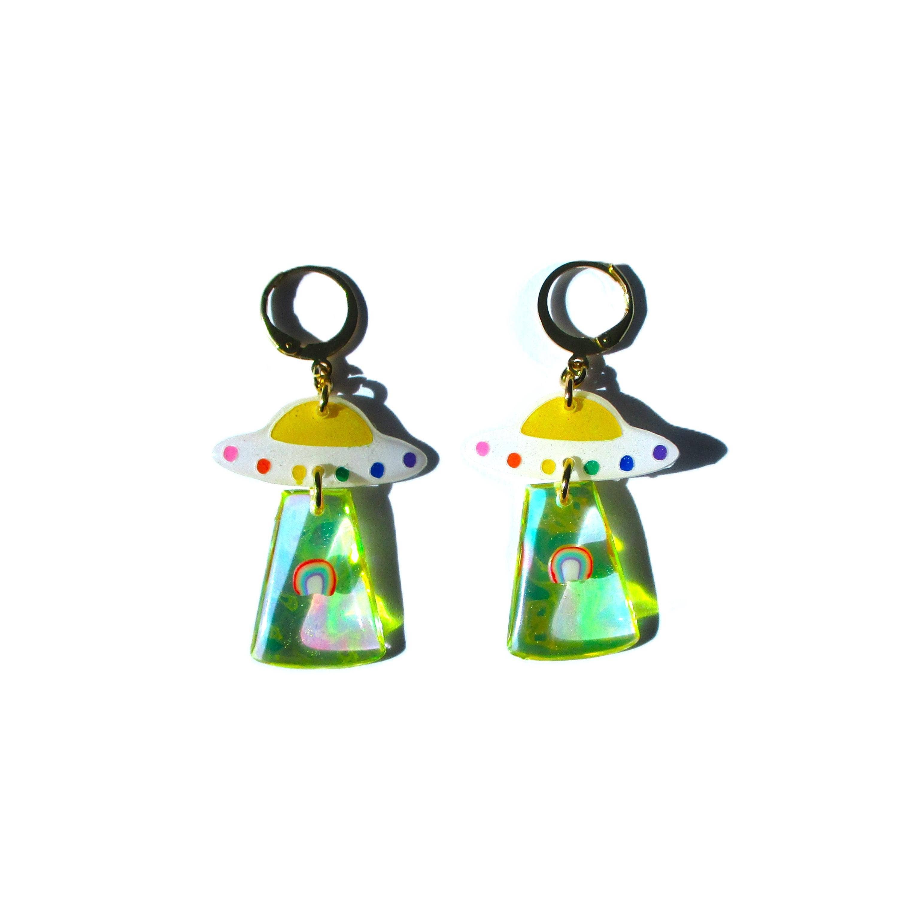Att skapa min juvelinje Wuve har blivit ett sätt att uttrycka mig i världen idag. Det är något magiskt med att kunna ta ett tomt papper och ett par vätskekannor och förvandla dem till fantastiska små konstsmycken. Jag ser utåt för färginspirationer, tar inflytande från natur och mode. Min konst har gett mig ett sätt att få kontakt med människor och få lite nyckfull till deras vardag. Bara en liten inblick i min process för dig... Jag målar ett originalkonstverk. Jag skar upp den för hand. Jag harts fram- och baksidan av varje bit flera gånger. Jag städar sedan upp och sandar varje bit. Sedan borrar jag och fäster hårdvara på varje bit för att göra ett komplett smycke. Varje smycke som jag gjort är ett speciellt konstverk, en representation av var jag befinner mig i livets konstnärliga resa. Processen att göra dessa örhängen tar 5 dagar, med flera steg i den process som jag har upptäckt och fulländat under det senaste decenniet.