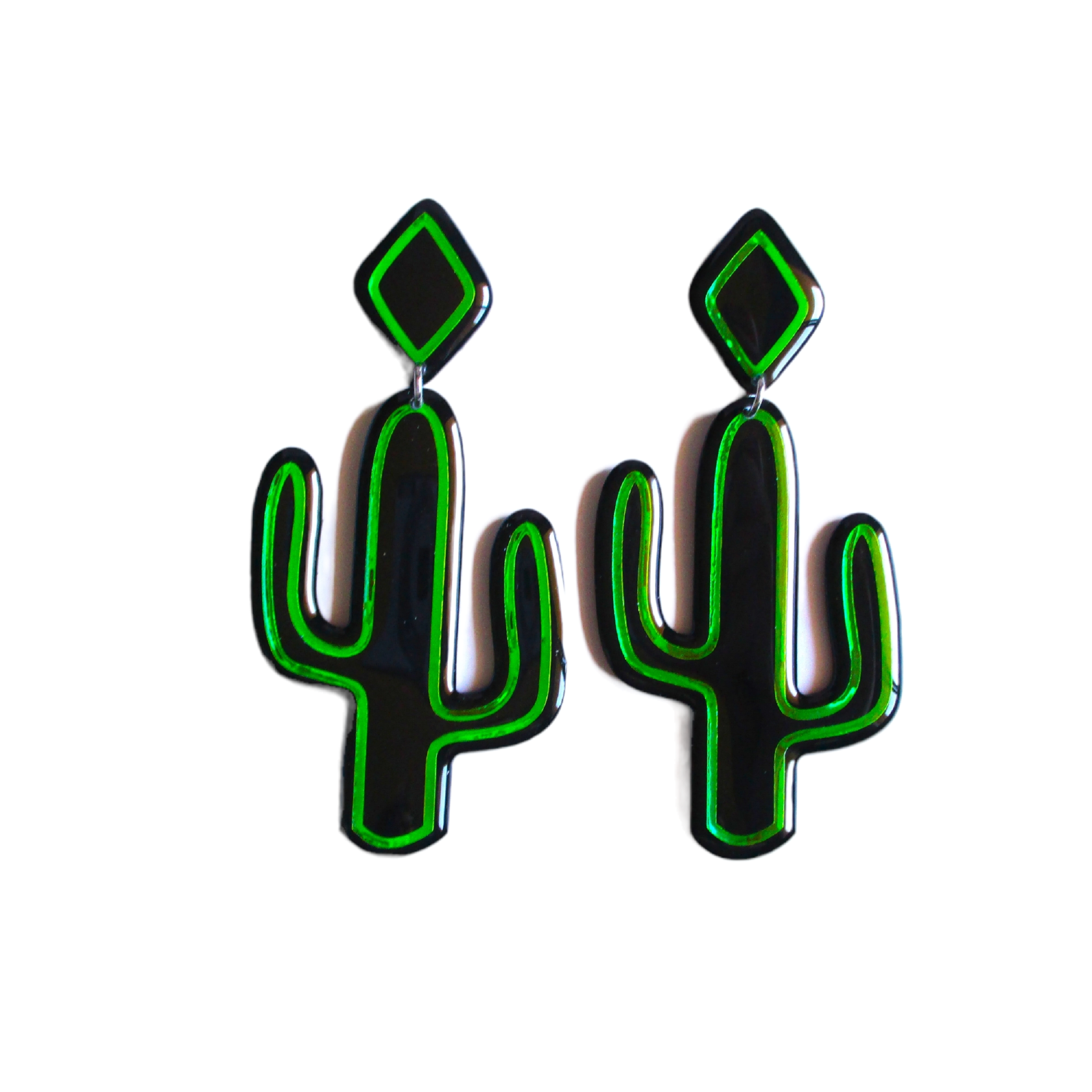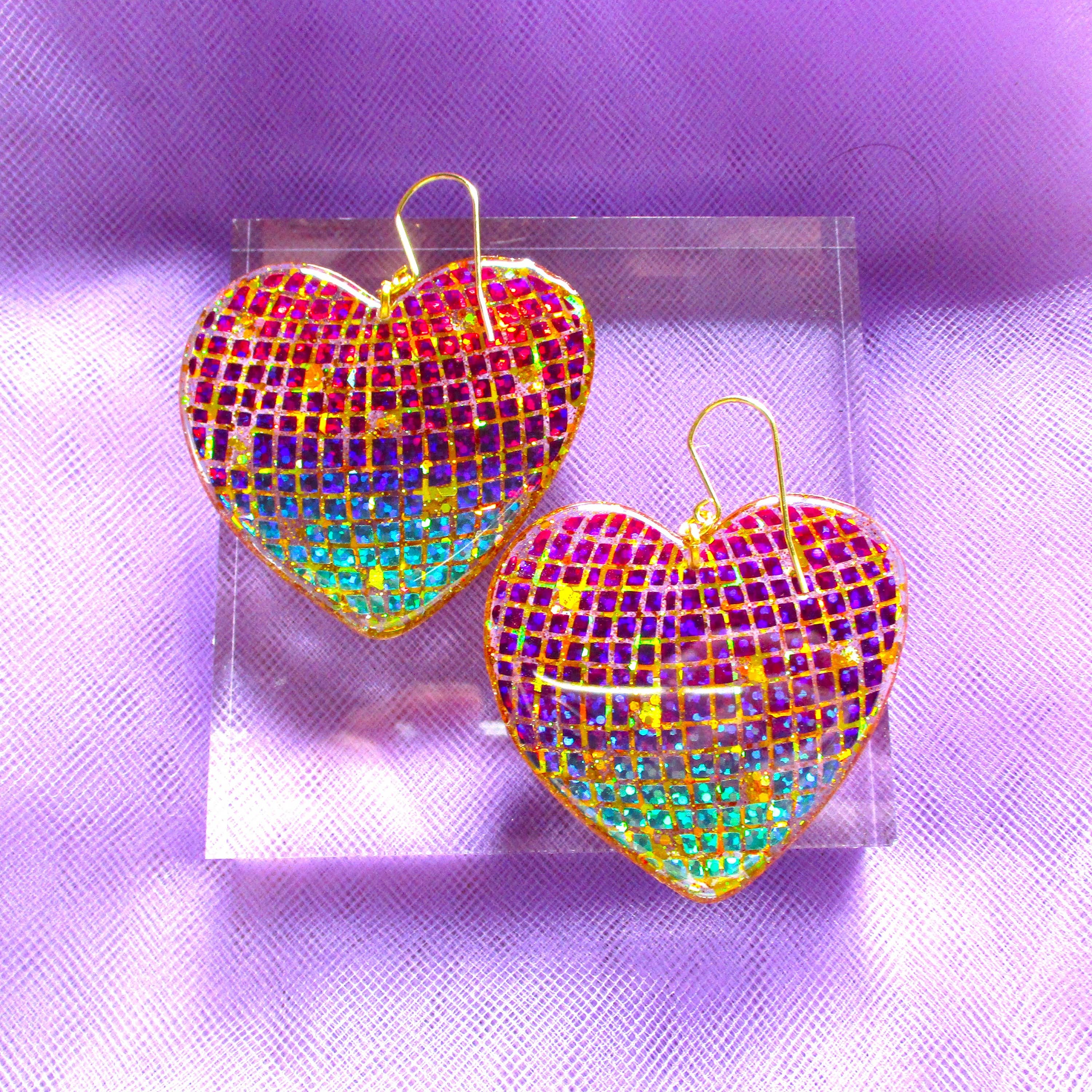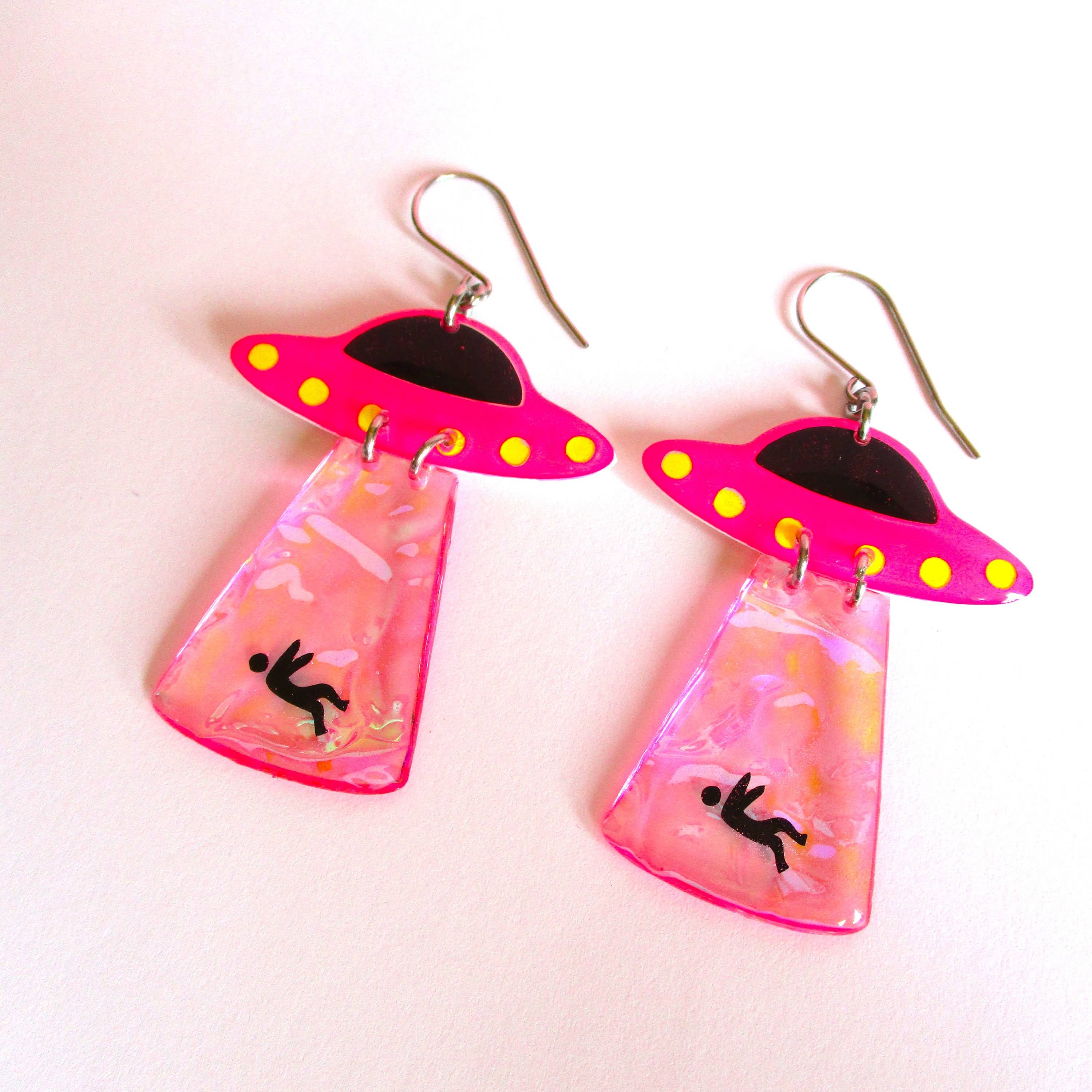 Att skapa min juvelinje Wuve har blivit ett sätt att uttrycka mig i världen idag. Det är något magiskt med att kunna ta ett tomt papper och ett par vätskekannor och förvandla dem till fantastiska små konstsmycken. Jag ser utåt för färginspirationer, tar inflytande från natur och mode. Min konst har gett mig ett sätt att få kontakt med människor och få lite nyckfull till deras vardag. Bara en liten inblick i min process för dig... Jag målar ett originalkonstverk. Jag skar upp den för hand. Jag harts fram- och baksidan av varje bit flera gånger. Jag städar sedan upp och sandar varje bit. Sedan borrar jag och fäster hårdvara på varje bit för att göra ett komplett smycke. Varje smycke som jag gjort är ett speciellt konstverk, en representation av var jag befinner mig i livets konstnärliga resa. Processen att göra dessa örhängen tar 5 dagar, med flera steg i den process som jag har upptäckt och fulländat under det senaste decenniet.