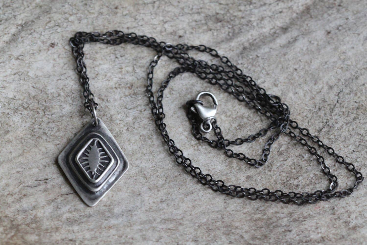 Skapat för att ge bäraren en känsla av lugn och komfort, oavsett om det är i form av sten eller form, är varje bit en liten del av naturen som du kan ta med dig. Mina smycken är avsedda att påminna ägaren om hur de känner när de är i sitt naturliga element. Stilistiska nickar ges till sydvästra designestetiska genom användning av navajo gjord metallstämpling och användningen av naturliga ädelstenar. Kombinationen av sydvästra stämpling med ikoniska östkusten växtlivsformer har blomstrat in i min egen unika smyckeslinje. Jag är en självlärd metalsmith. Jag startade Silverbrook Studios 2016 för att blanda min kärlek till metalsmithing med det lokala växtlivet. Jag säljer nu online och på lokala konsthantverksföreställningar. Jag bor för närvarande i Haymarket, VA med min man Brian och studioassistenter/hundar Lucy och Ruby.