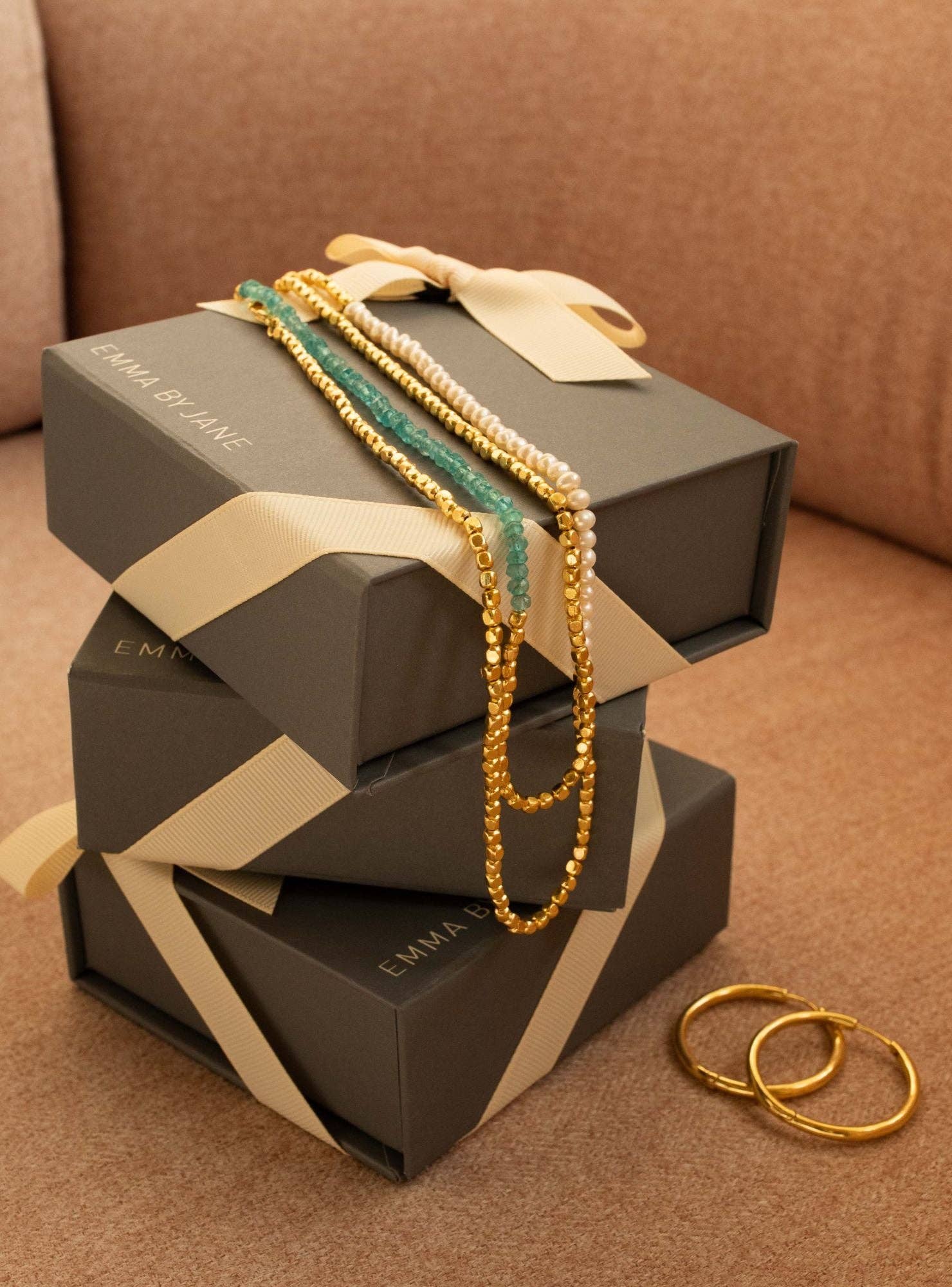 Den första frågan jag alltid får frågan är ”varifrån kom namnet?” Emma by Jane grundades när Jane bodde i London med sin bästa vän, Emma. Som alla tjejer gör, delade vi allt och en dag hade Emma rånat halva min garderob och accessoarer och någon sa ”det är som din stil av Jane, det är som Emma by Jane”, och så föddes varumärket. Emma by Jane grundades 2017, jag slutade min heltid som köpare fredagen den 13: e, en lycklig dag för mig, för att fullfölja mina drömmar om att ha mitt eget smyckemärke. Varje pjäs är designad i Irland av mig själv, och vår etos är att designa små bitar av lyx som tar dig från dag till natt. Emma by Jane har varit med i British Vogue som Brand to Watch vilket var en otrolig upplevelse och har gett våra kunder stort förtroende för oss. Vi är ett varumärke som älskar att fortsätta utvecklas, och nya kollektioner lanseras regelbundet.
