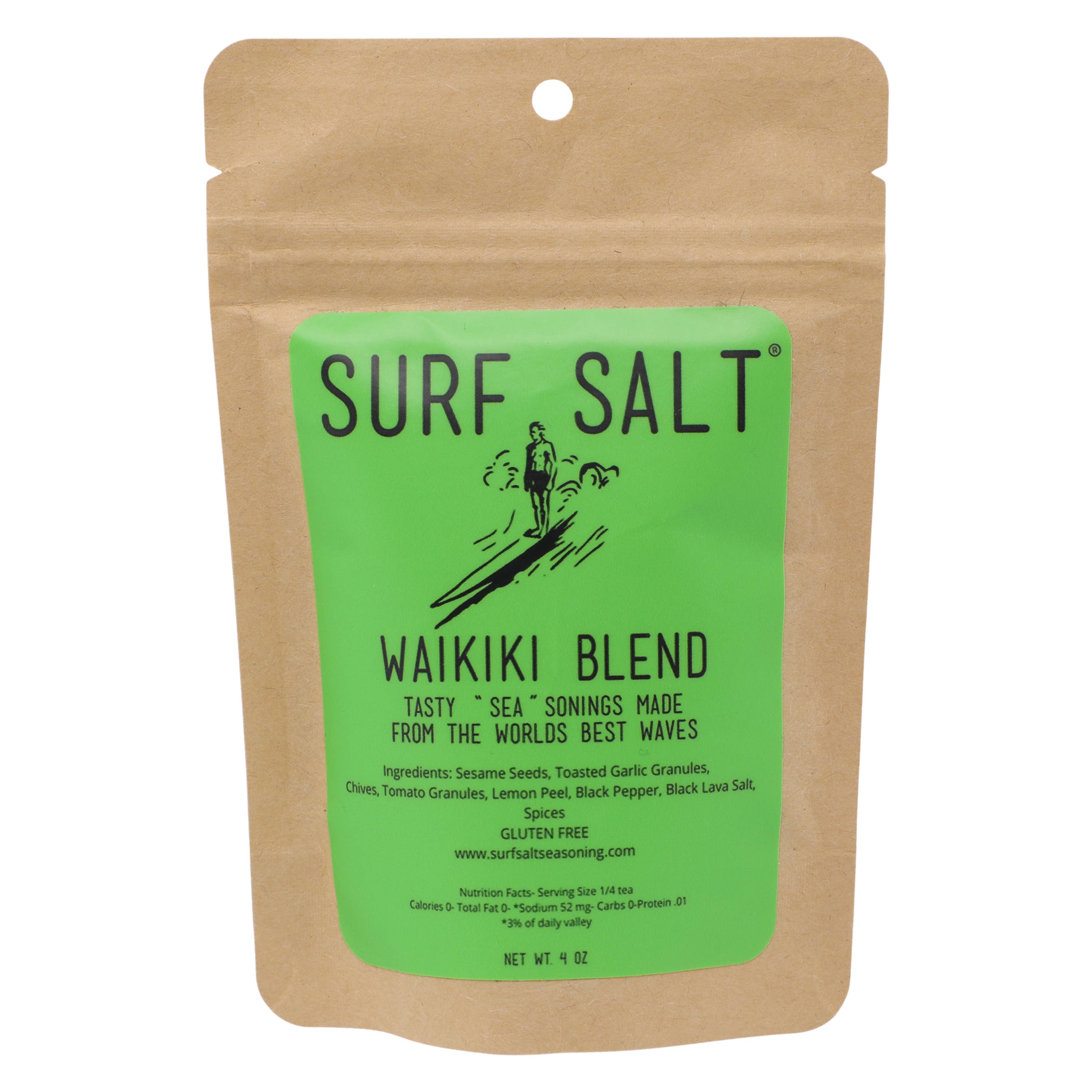 Om Surf Salt Seasonings Kryddor är det enklaste och mest mångsidiga sättet att förstärka matens smak. Som kock, Jag vill skapa en snabb, smakrik, och hälsosamt sätt att krydda mat. Som surfare, Jag ville bli påmind om de långt borta surfpauserna och de lokala smakerna. Surf Salt Kryddor är kryddblandningar med havssalt skördat från stora surfpauser. Sedan kombineras havssaltet med livliga kryddor, grönsaker, frukter och frön för att göra Surf Salt smakfullt och hälsosamt. Vi handgör dessa i små partier för att säkerställa smak och friskhet. Sedan packas de i biologiskt nedbrytbara förpackningar med en träsked inkluderad som fungerar som en server plus absorberar fukt när kryddan sitter på din hylla. Surf Salt Kryddor är enkla att använda och kan användas i många stadier av matlagning, inklusive torr saltlösning, smakbyggnad och en prick.