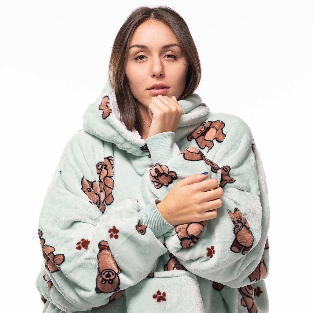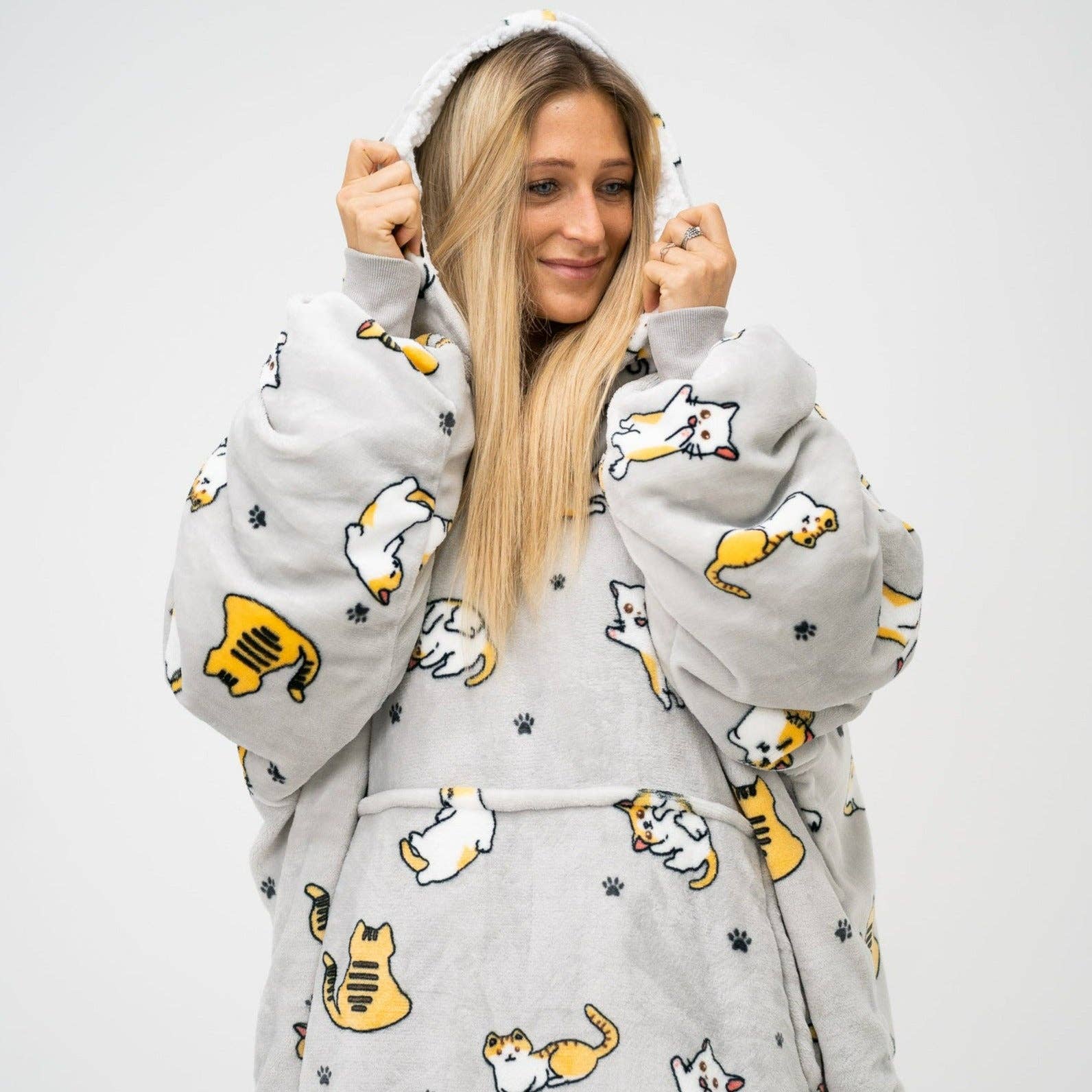 Snowie är den varmaste, fluffiga och mjukaste filten du någonsin har provat. Den är baserad på en extra stor 6XL sweatshirt som alla kan bära! Den perfekta presenten till någon du älskar. Vi använder mjuk flanellfleece på utsidan och varm sherpafleece på insidan så att du inte behöver oroa dig för kylan. Vissa tycker att det är en filt. Vissa tycker att det är en huvtröja. Hur som helst, vi vet att Snowie kommer att vara det mysigaste och varmaste du någonsin har upplevt.