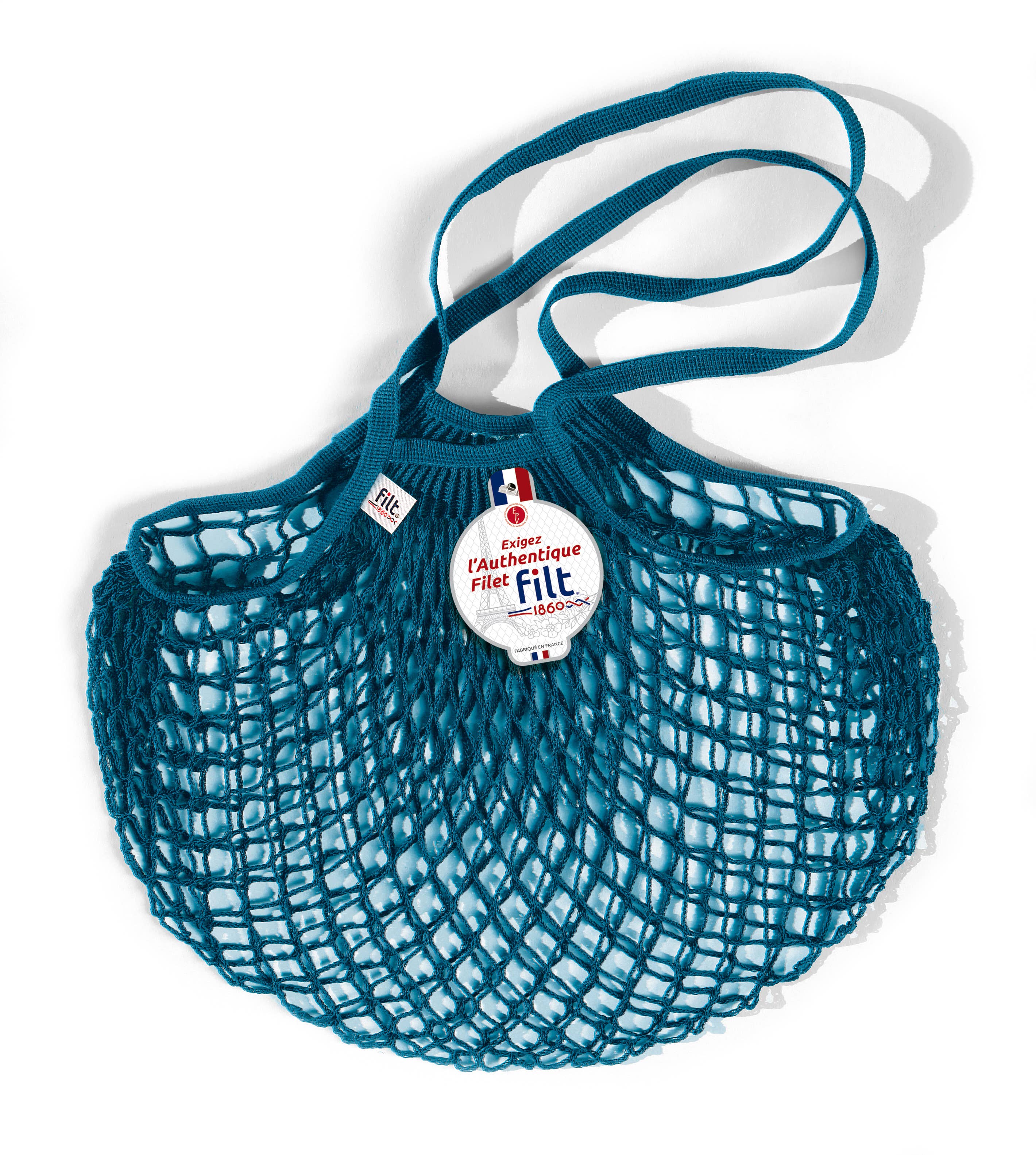 Matnätet är en symbol för den franska konsten att leva. Efter att ha fallit ur bruk på 1980-talet var det utan att räkna med kunskapen och djärvheten hos Filt 1860 Manufacture, baserad i Normandie sedan 1860, för att uppdatera den och göra den till IT-väskan, eftertraktad av de stora franska lyxhusen och även för export som i Japan eller USA. Dess användbarhet är inte längre i tvivel. Våra mormors traditionella filé är robust, praktisk och stretchig. Men det är också ett tidlöst tillbehör som är praktiskt, ekologiskt och trendigt samtidigt. Vi är så stolta över våra skräddares expertis att vi skriver deras förnamn i vart och ett av de shoppingnät de gör. 100% bomull, finns i 4 storlekar och över 30 färger. Filt 1860 är en textilindustri för nät och snören, tillverkad exklusivt i Normandie sedan 1860. Living Heritage Company sedan 2017.