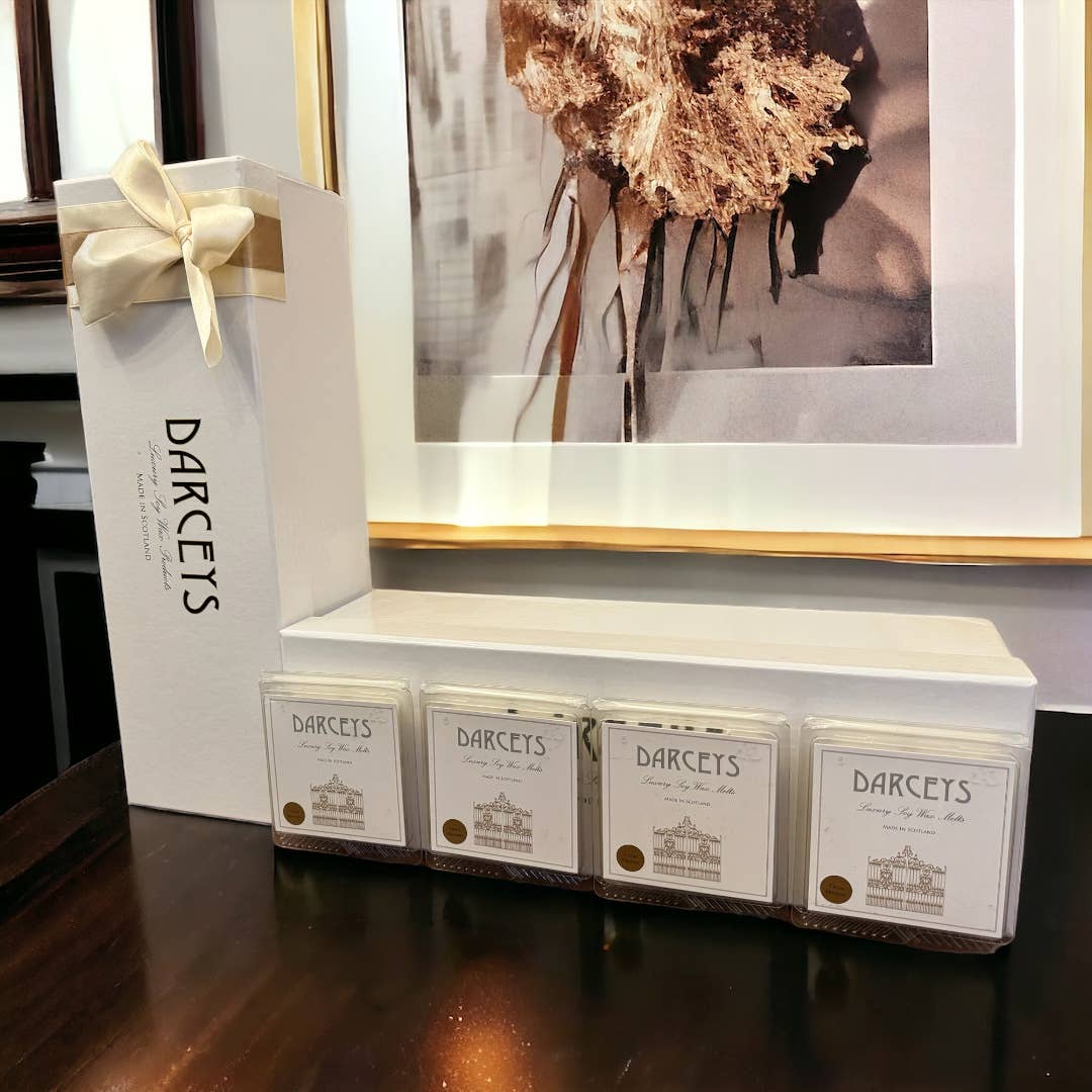 Välkommen till Darceys, där lyx och doft möts för att skapa en verkligt förtrollande upplevelse. Vi är en stolt producent av premium sojavaxprodukter, tillverkade här på Skottlands västkust. Vårt team är dedikerade till att föra värme, skönhet och härliga dofter in i ditt liv. På Darceys tror vi att ditt hem ska vara en fristad fylld med de mest fängslande aromerna. Därför använder vi bara sojavax av finaste kvalitet, vilket säkerställer en ren och långvarig brännskada varje gång. Våra smältor och ljus hälls för hand, infunderade med en rad lockande dofter. Upptäck magin i våra produkter gjorda med kärlek och passion. Från våra klassiska dofter till våra unika och kreativa blandningar, det finns något för alla i vår kollektion. Oavsett om du föredrar den tröstande omfamningen av fransk vanilj eller den uppfriskande fräschheten av citrus och örter, är våra ljus utformade för att antända dina sinnen och skapa en verkligt uppslukande atmosfär. Vi erbjuder också ett stort utbud av bad- och kroppsprodukter, vassdiffusorer och rumssprayer. Dessa är perfekta för dig som vill omge sig med lyxiga dofter på olika sätt eller för dem som söker den perfekta presenten till någon speciell. Darceys är engagerad i hållbarhet. Vi är stolta över att använda sojavax, en förnybar och biologiskt nedbrytbar resurs, samt att anskaffa våra material på ett ansvarsfullt sätt.