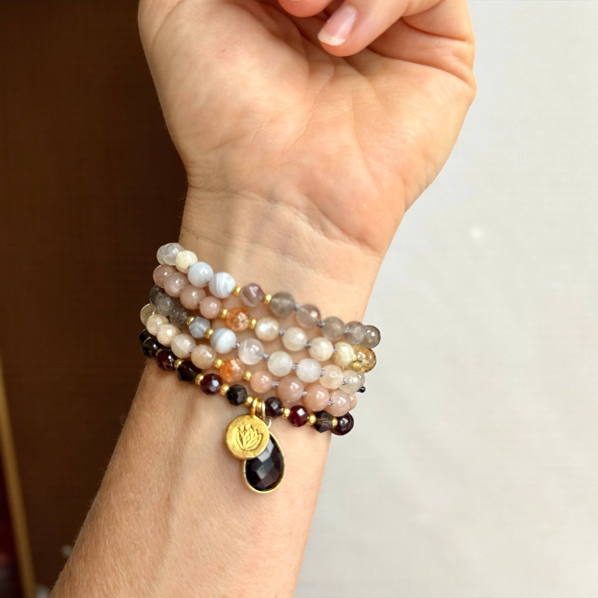 Jag är Amanda Jaten, händerna och hjärtat bakom Awakening Alice. I flera år skapade jag malas och intentionella smycken under namnet "MeraKalpa Malas", ett varumärke som följde mig genom otaliga festivaler, yogasammankomster och kreativa perioder i mitt liv. När min dotter föddes valde jag att ta ett steg tillbaka och skala ner för att kunna vara helt närvarande med henne. Nu återuppstår jag med en ny vision—Awakening Alice—ett varumärke som speglar både min utveckling och den uppvaknandets resa vi alla är på. Varje smycke är personligen handgjort av mig i Colorado, med naturliga ädelstenar, hållbar knytning och thailändska silver- och guldvermeilberlocker. Varje design är fylld med berättelse, symbolik och intention—oavsett om det handlar om att anpassa sig till chakran, fira en säsong eller erbjuda en daglig påminnelse om mod och självanslutning. Awakening Alice är mer än smycken; det är bärbar intention. Från heliga smycken till DIY Mala Kits som bjuder in människor till den meditativa konsten att knyta, blandar mitt arbete hantverk, medvetenhet och mening.