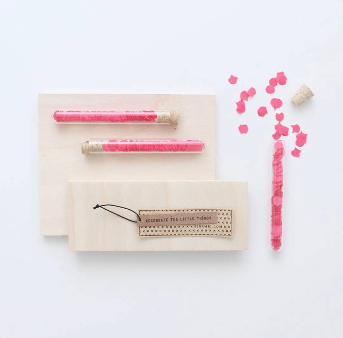 Hej, du! Birambi står för allt som är minimalistiskt och estetiskt tilltalande. Men: konceptet går längre än bara minimalistiska produkter. I denna digitala tidsålder skickar vi främst meddelanden via e-post och chattar, vilket gör gåvor mindre och mindre personliga. Hur ofta får du fortfarande ett riktigt födelsedagskort? Eller en spontan överraskning i brevlådan, förutom posten från skattemyndigheterna? Exakt. Därför går vi tillbaka till grunderna: ett enkelt budskap i en flaska i ett nytt utseende. Vi använder olika typer av provrör för vår produktförpackning. Genom att hålla våra priser låga försöker vi göra så många som möjligt nöjda med dessa personliga och originella gåvor via den gammaldags posten. Ser vi redan ditt första leende där? ;-)