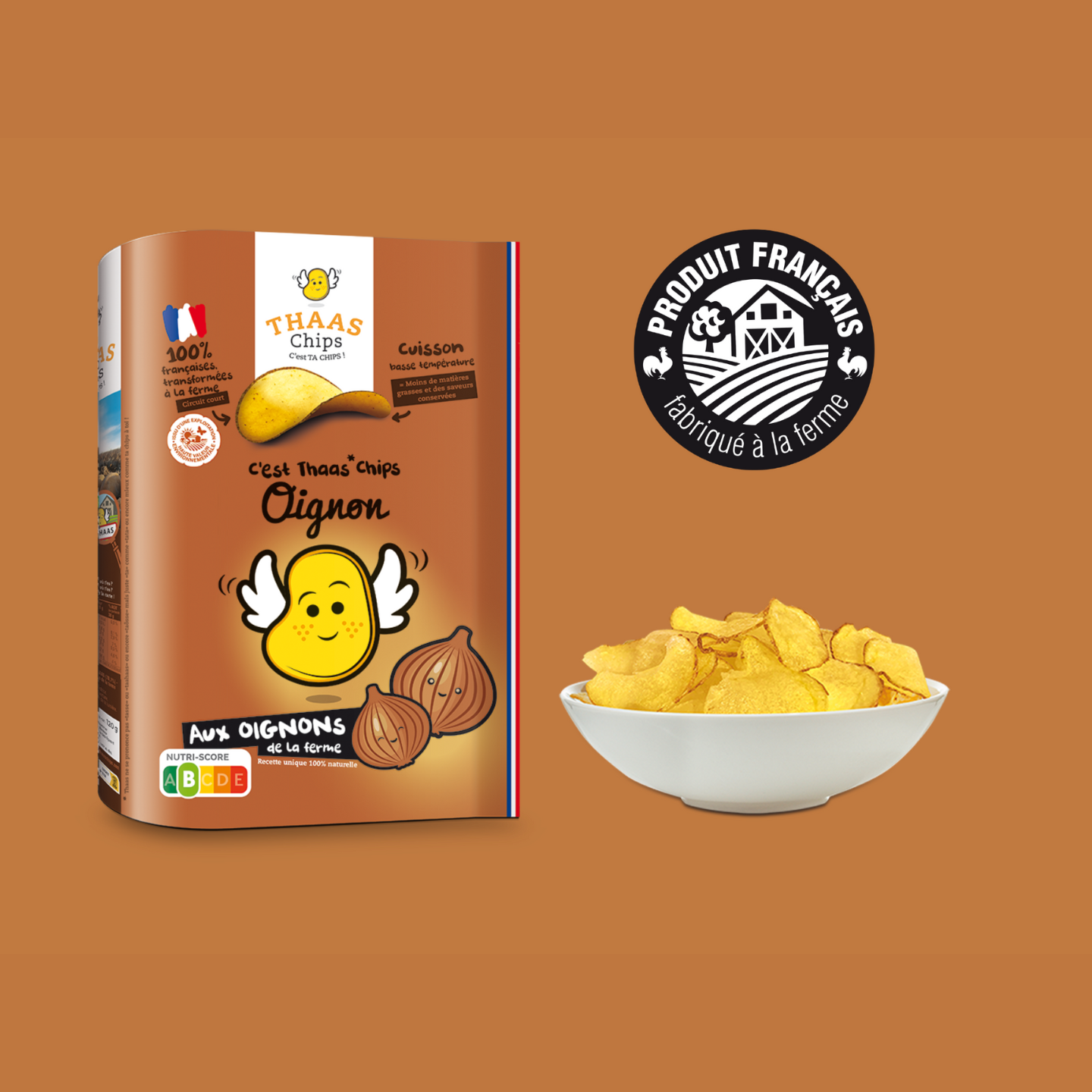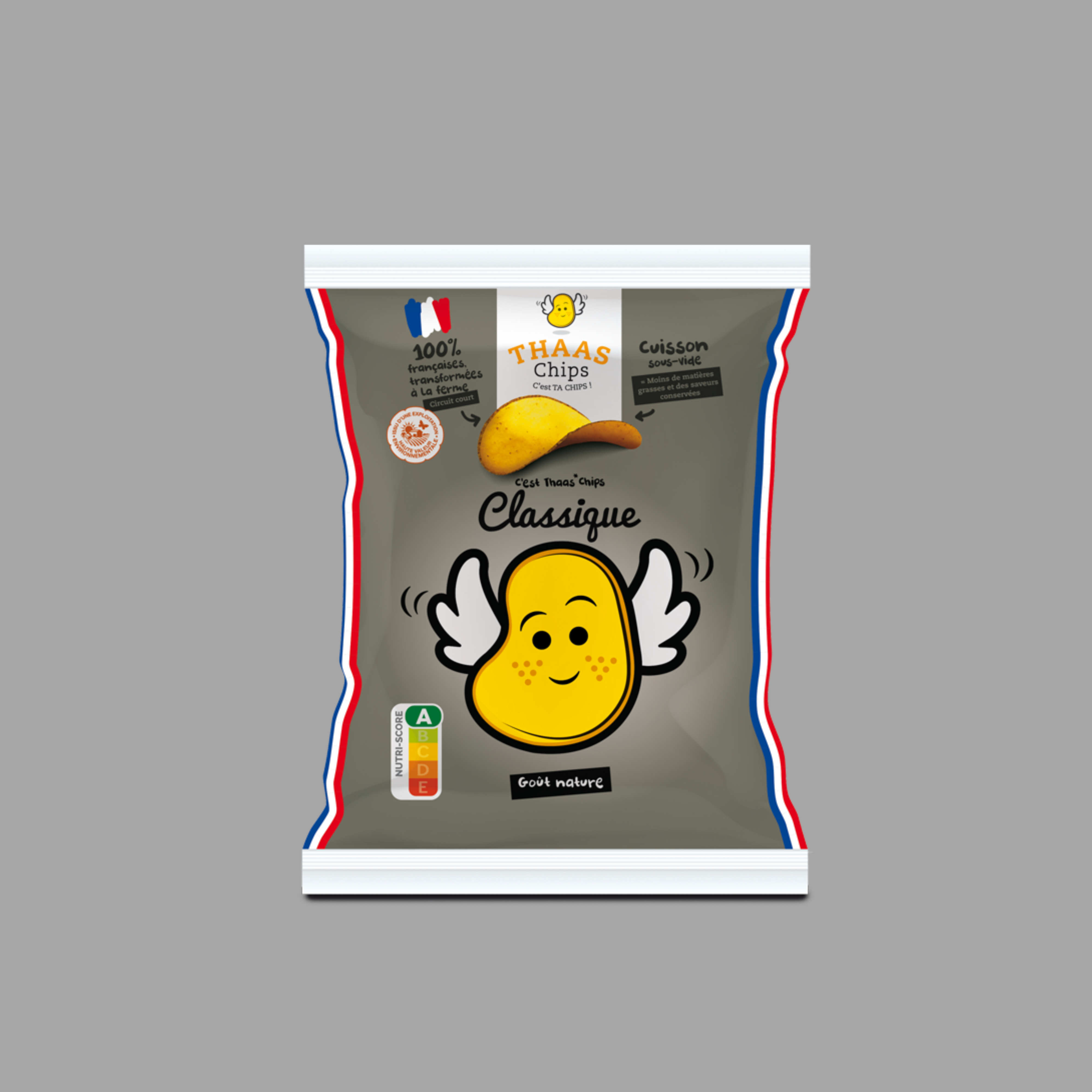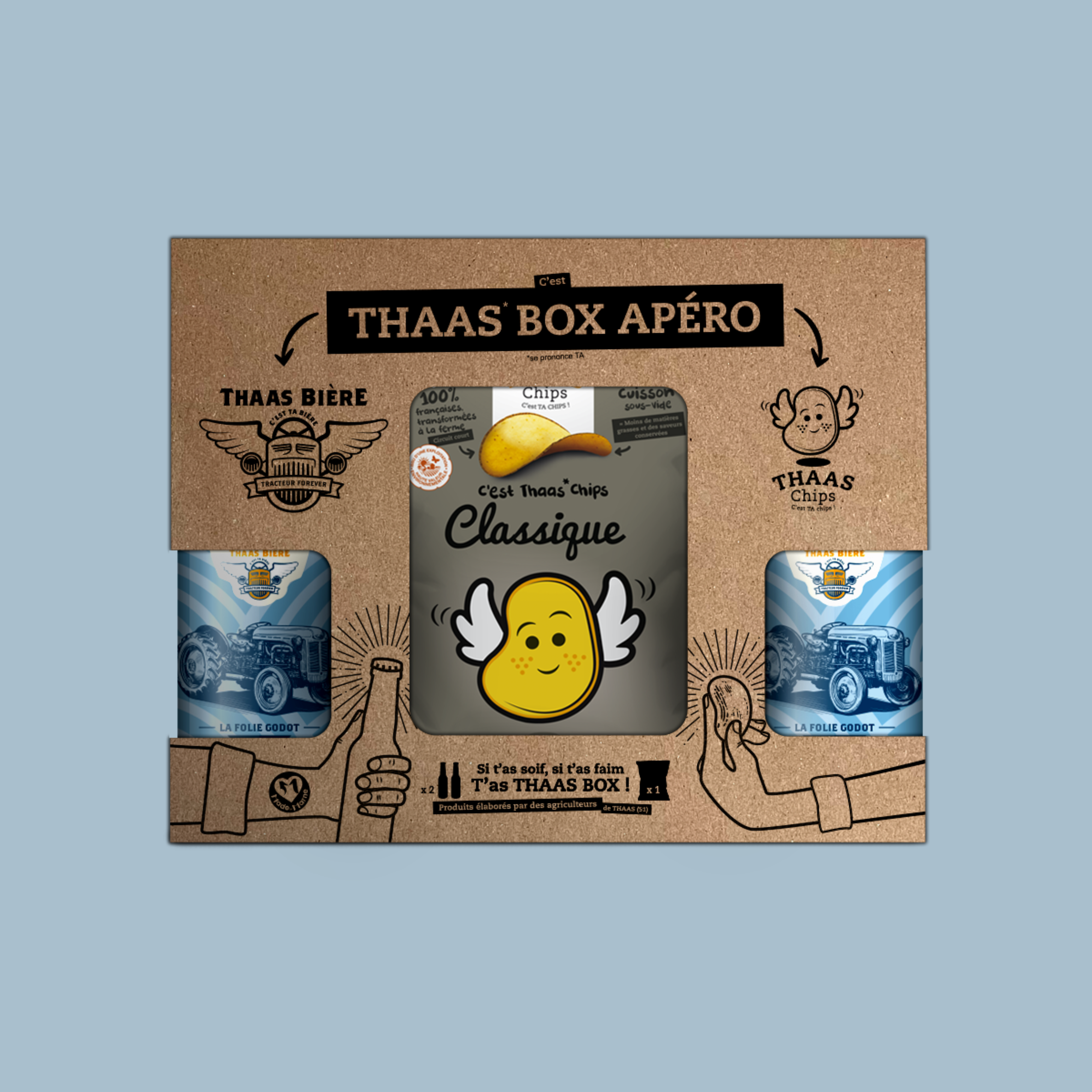 THAAS CHIPS: Det är dina marker, 100% franska! Detta är berättelsen om 2 bröder, David och Manu, som producerar potatis på sina tomter som ligger i Marne i byn THAAS (uttala inte ”cup” men ”ta”!). Fascinerad av vad som kunde bli av deras potatis, bestämde de sig en dag för att producera sina egna marker för att erbjuda en lokal och välsmakande produkt. Namnet på varumärket finns alla för dessa bröder som inte saknar en andra grad!