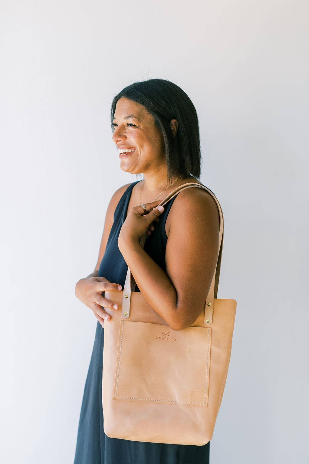 Det finns en känsla av förundran som kommer från att sätta på mormors smycken, laga mat och äta med mammas gamla bestick, eller ha på sig pappas brevjacka. Jag började Weather & Story för att designa produkter för den moderna kvinnan som en dag skulle väcka samma känsla av förundran. Jag lärde mig under en lokal läderarbetare för att lära mig de tidhedrade traditionerna och metoderna för att arbeta med läder och fann en verklig koppling till det kreativa utrymmet för design och hantverk. År 2016 fick Väder & Story sin start i mitt lilla sovrum på östra sidan av Austin, Texas. Varje produkt är utformad för att lägga till skönhet och funktionalitet i vardagen samtidigt som du får den typ av kvalitetsbra som kan bli en släktklenod helt sin egen. Namnet Väder & Story är inspirerat av stormarna våra produkter är byggda för att vädra och berättelserna de är designade för att bära. Vi använder etiskt anskaffat 100% fullkornigt läder och urgamla metoder för att tillverka tidlösa bitar som klarar många år av livet. Vi hoppas att de uppmuntrar dig att komma ihåg vikten av din berättelse och inspirera dig att engagera dig i berättelserna om dem omkring dig. Tack för att du gick med i storyn. Jag är hedrad att du är här. Lainey Wright | Ägare, Crafter