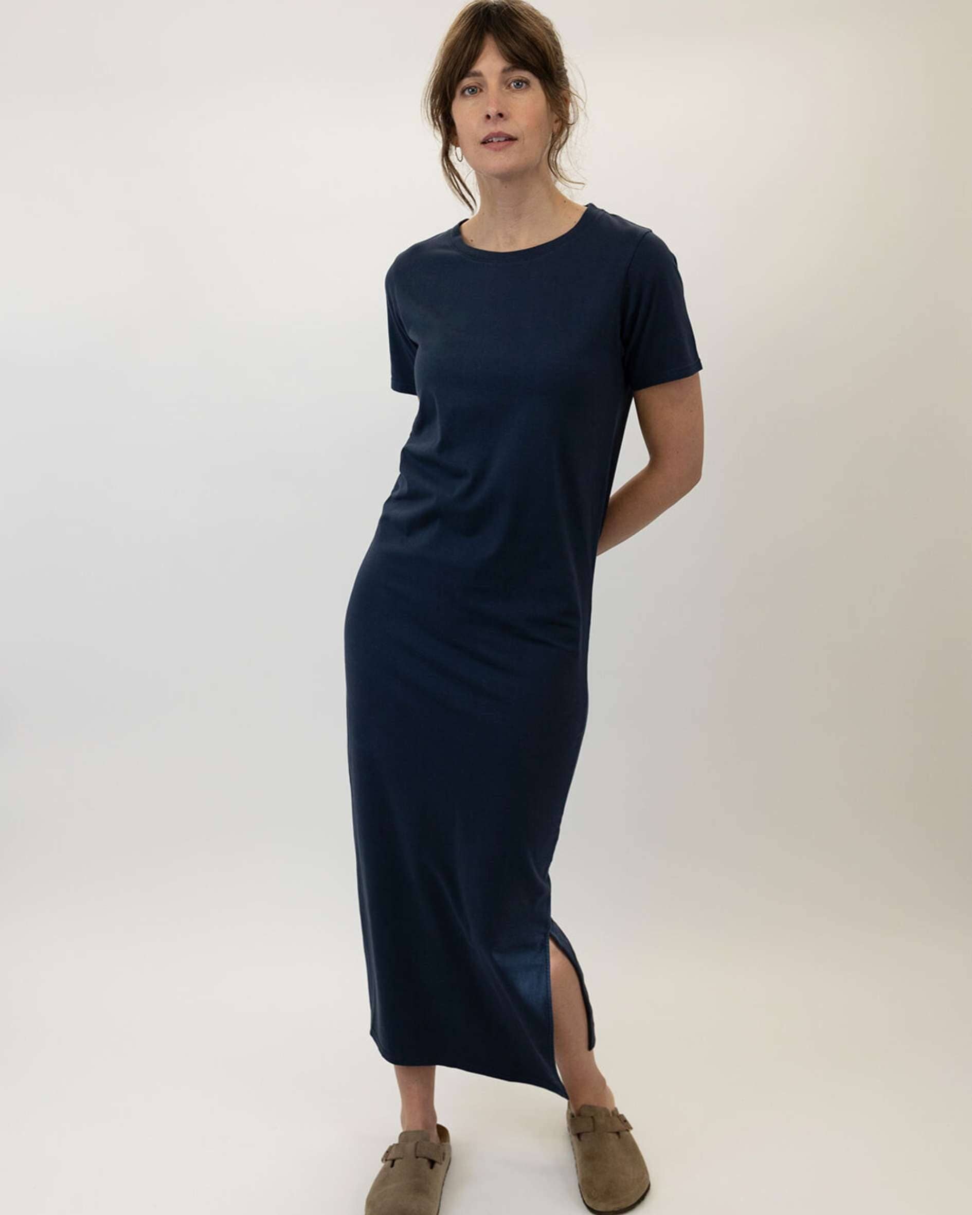 Ivy's sortiment av damkläder i ekologisk bomull föddes ur frustrationen (som modeköpare och konsument) över passformen, kvaliteten och hållbarheten hos det som fanns på marknaden. Som en livslång t-shirt-och-jeansbärare kom Ivys grundare, Sally, att värdesätta den enkla t-shirten ännu mer efter sitt första barns födelse 2016. Oavsett hur mycket hon letade kunde Sally inte hitta ett märke som uppfyllde alla kriterier. Det borde väl inte vara så svårt att göra högkvalitativa, hållbart tillverkade t-shirts utan krångliga detaljer, krympning, förvrängning eller noppor efter några användningar? Sally tänkte att om hon kände så här måste säkert andra kvinnor också göra det, så hon använde sin modeerfarenhet för att skapa de t-shirts hon hade letat efter. Sortimentet har nu utvecklats från bara t-shirts till sweatshirts, klänningar, kjolar och joggers. Vårt noggrant utvalda sortiment av damkläder i ekologisk bomull styrs av tre principer: 1. Tillverkade Rätt 2. Används Ofta 3.