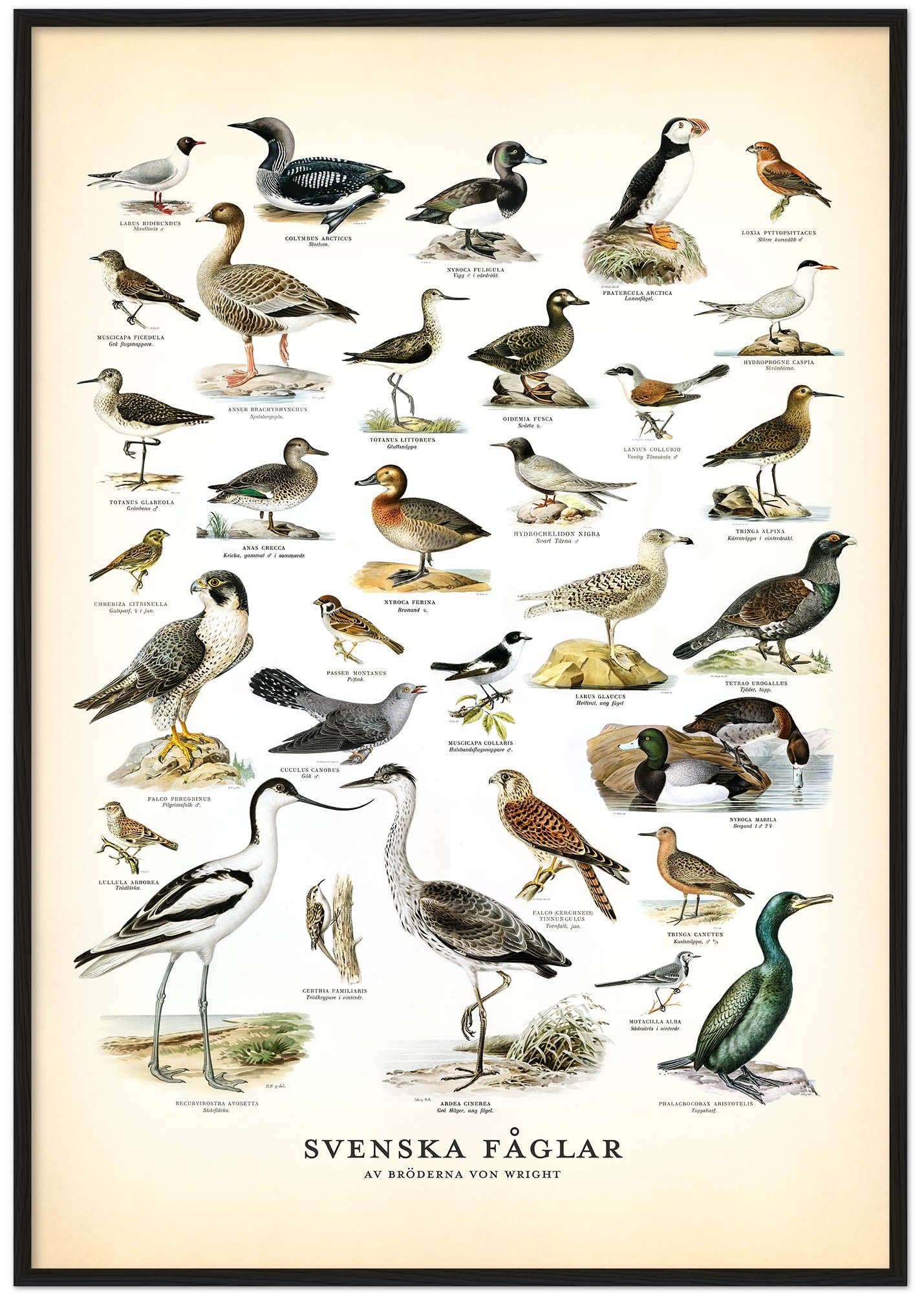 Svenska fåglar drivs av ett litet familjeföretag med rötter i designvärlden. För oss är färg, form och kvalitet ett livselixir. Vår satsning kring Svenska Fåglar fick luft under vingarna först 2020, när vi upptäckt bröderna von Wrights fantastiska fågelillustrationer. Eftersom hela familjen har ett ornitologiskt och historiskt intresse utöver inredningsdesign tog det inte lång tid innan vårat hus var fullt av de vackra fågelmotiven. Och Svenska Fåglar var kläckt...