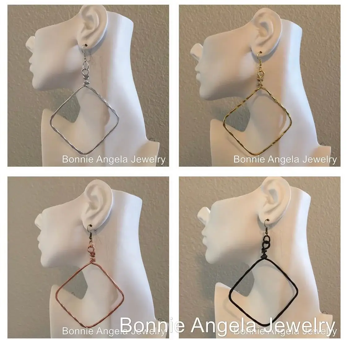 Grundad av skulptören och konstnären Angela Catirina Jones, vår studio är känd för att producera exceptionella smycken av gallerikvalitet. Inspirerad av verk av Alexander Calder och otaliga konstnärer under hela sin karriär strävar Angela Catirina efter att höja den vanliga detaljhandeln med en kuraterad, konstdriven samling som är överkomlig för vanlig detaljhandel. Vi producerar cirka 26 000 stycken handhamrade, trådlindade smycken varje år samt ett stort utbud av högkvalitativa pärlsmycken. Våra hållbara metaller erbjuds i över 2 dussin färger och de flesta mönster finns i flera storlekar. Nickelfri, blyfri och allergifri. Vi erbjuder också dina val av franska ledningar, studioledningar, stolpar eller clip-on (uppladdning) på begäran. Angela Catirina säger att hennes mål alltid har varit för varje kund som går i en butik, oavsett ålder, etnicitet, eller budget, hitta något hennes samling de älskar och vill köpa. Med det i åtanke är hennes kollektion över 1200 mönster och växer. Hon har varit smyckesdesigner sedan 1989 och delade Bonnie Angela-etiketten med sin mamma tills Bonnie gick i pension 2003. Denna kollektion är tillverkad i USA, tillverkad i Texas, med hjälp av amerikanska produkter i all möjlig utsträckning. Våra metaller är otroligt lätta, allergifria och så bekväma att bära att du inte ens inser att du har dem på. Vi transporteras i cirka 680 butiker över hela USA. Vi skickar över hela världen.