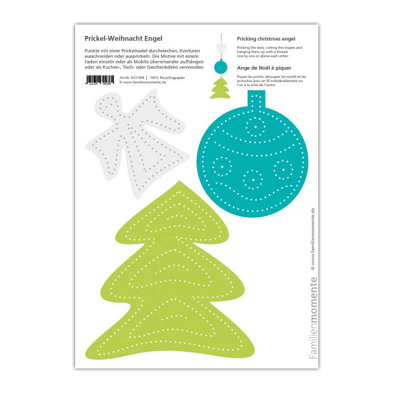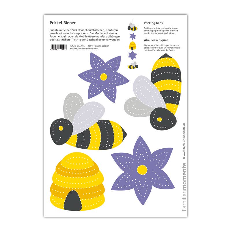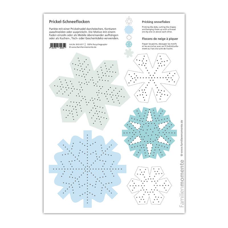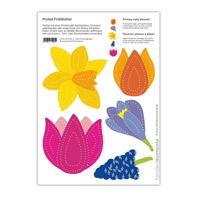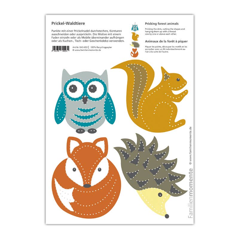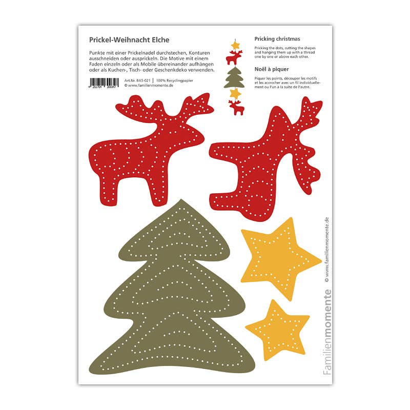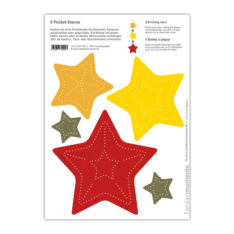 Familjestunder - Gör varje ögonblick värdefullt med prickmotiv från Familjestunder. Prickning är en gammal hantverksteknik som har återupptäckts av Familjestunder. Med många mallar kan olika dekorationer skapas - mobiler, ljuslyktor, gratulationskort, bordsdekorationer och mycket mer. Siffer- och bokstavskorten för prickning stödjer lärandet med alla sinnen.