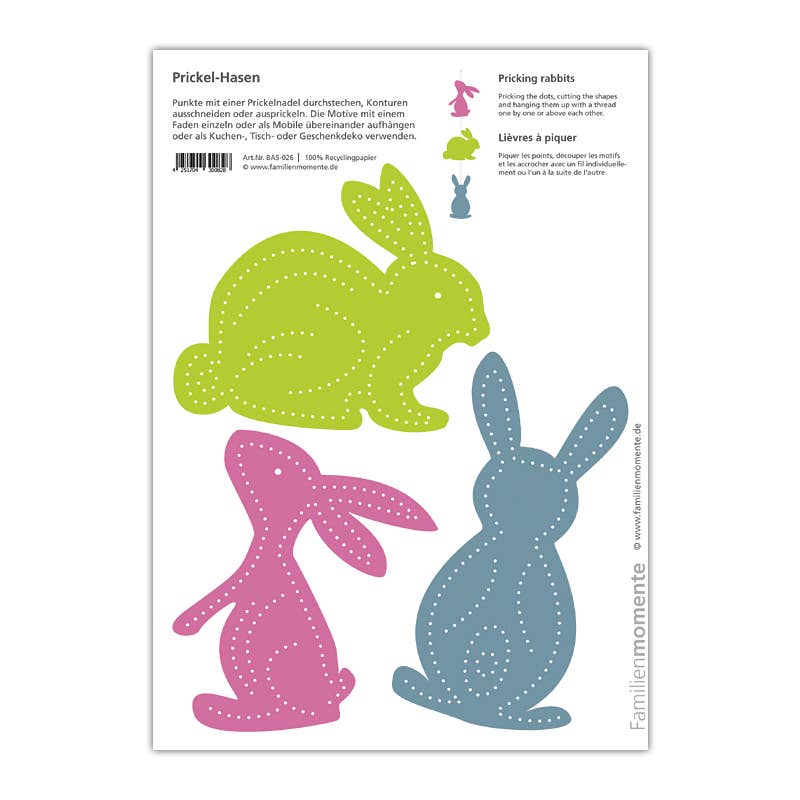 Familjestunder - Gör varje ögonblick värdefullt med prickmotiv från Familjestunder. Prickning är en gammal hantverksteknik som har återupptäckts av Familjestunder. Med många mallar kan olika dekorationer skapas - mobiler, ljuslyktor, gratulationskort, bordsdekorationer och mycket mer. Siffer- och bokstavskorten för prickning stödjer lärandet med alla sinnen.