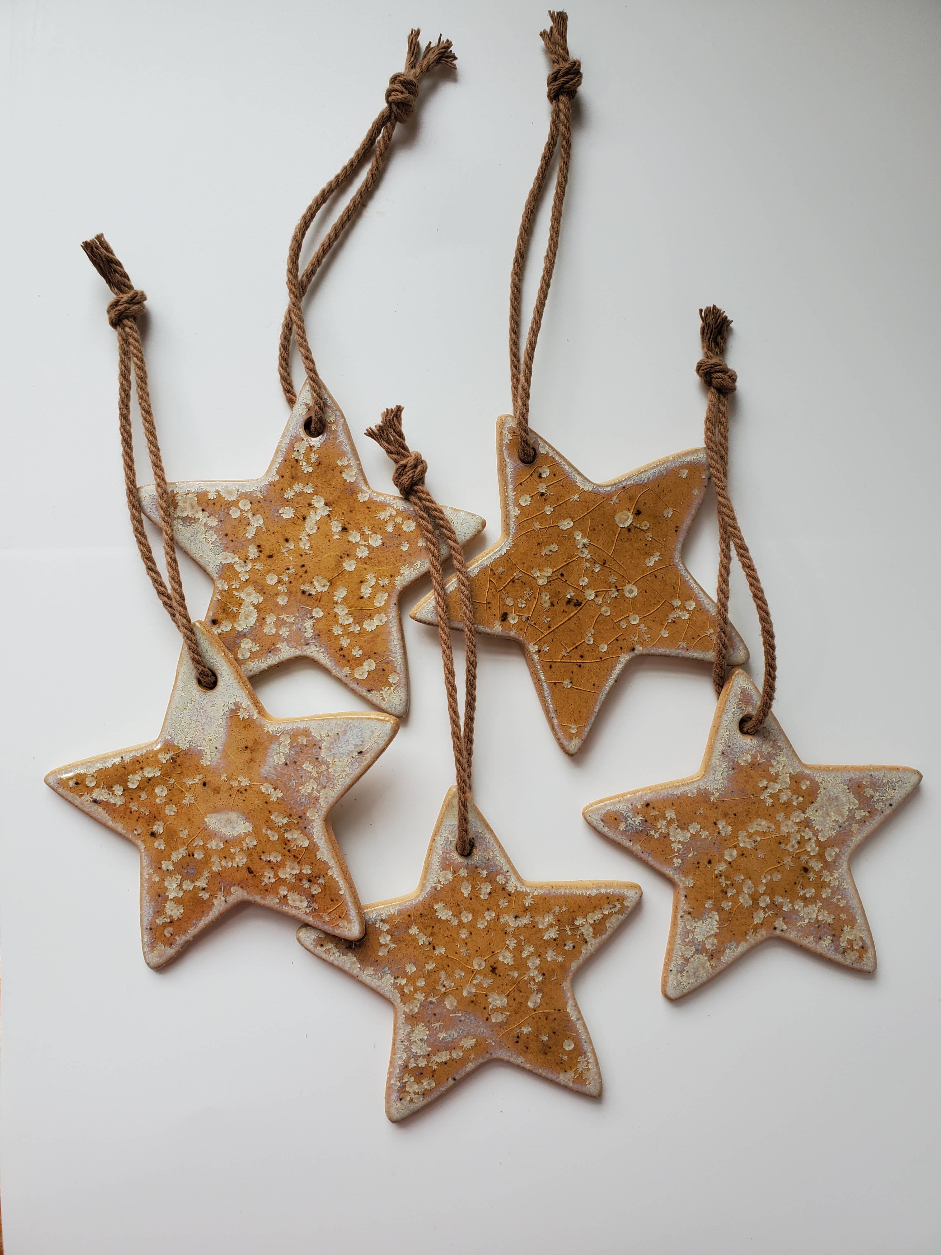 VÄNLIGEN LÄS Vi är ett litet team av 3 heltidsproducenter. Jag (Janna, skapare av CC) är fortfarande den primära glasyr-/glansartisten, vilket betyder att mer finns på min tallrik hela tiden. Efter att ha startat Curious Clay på Faire 2020 har jag ständigt översvämmas av order och förfrågningar. Vi producerar och skickar order så fort vi kan Jag är också mamma till en 5-åring, som har varit & fortsätter att vara vid min sida varje dag i studiolivet. Detta kommer med uppenbara begränsningar, eftersom min dotters behov alltid kommer först, gör mitt arbetsflöde något hackigt, som du kan föreställa dig. Jag älskar det jag gör, och jag är så tacksam för det samhällsstöd jag har fått från Faire. --------- Curious Clay föddes ur en intensiv kärlek till den handgjorda formen och önskan att skapa uppnåbara konstföremål. Som tidigare målare är närvaron av konstnärens hand i mina verk mycket viktig för mig. Både lerformen och glasyrapplikationen behåller gesten från min hand. Att vara lite självlärd, mitt arbete är främst plattbyggt med något element av handformning. Jag hoppas att mina verk kan leva i deras nya hem, och vara bortsett från de långsammare ögonblicken på dagen; oavsett om det är din morgonkopp kaffe eller eftermiddagsmeditation. Jag finner stor glädje i att skapa ett unikt keramik, och mitt hopp är att den glädjen kommer igenom.