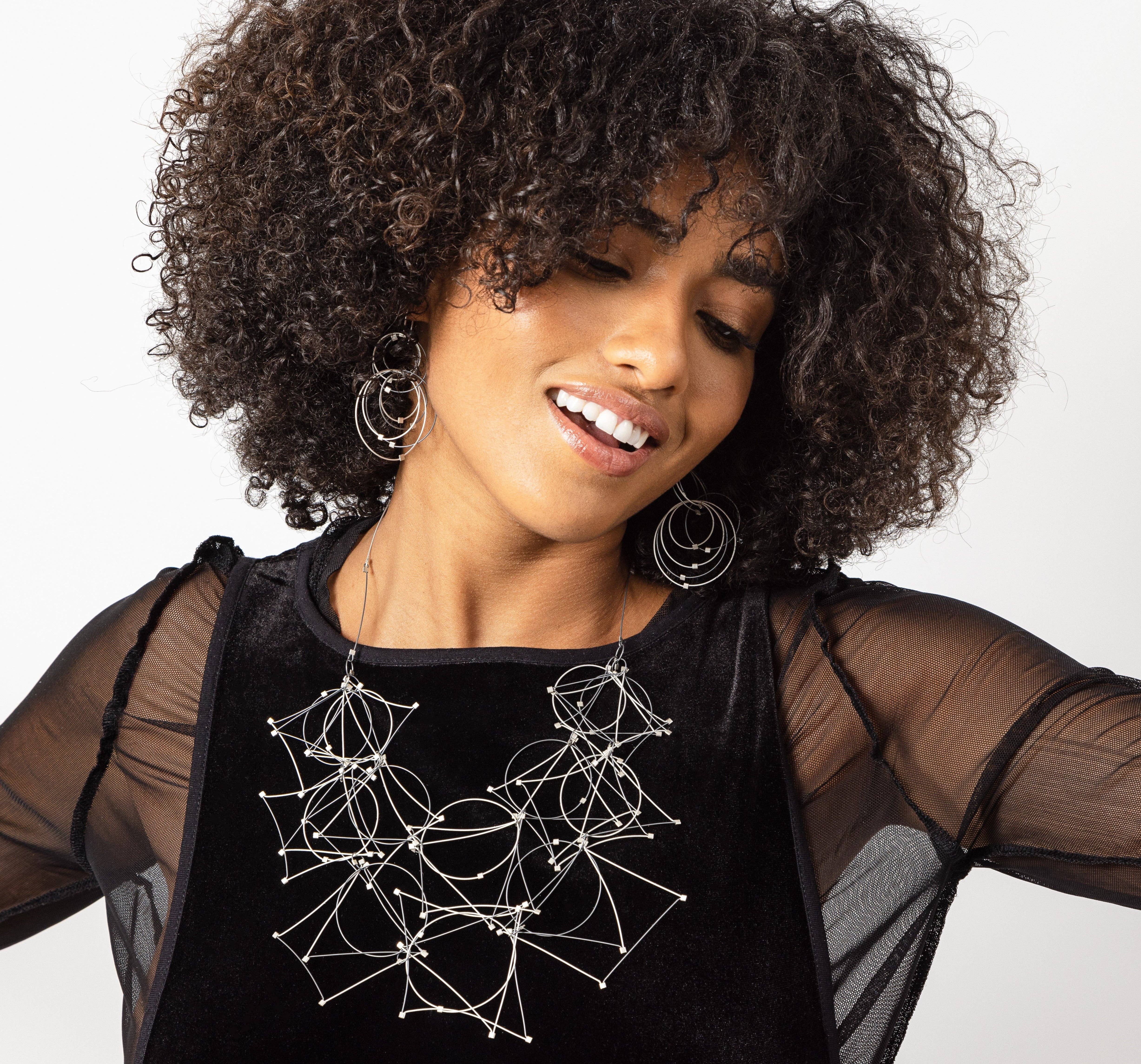 Varje MPR Smycken från Meghan Patrice Riley pjäs tillverkas för hand i MPR Atelier i Brooklyn, New York av utbildade konstnärer och metallsmeder. Genom att blanda metaller med textiltekniker experimenterar jag med klassiska, elementära material som vår klassiska nylonbelagda kabeltråd i rostfritt stål blandat med fina metaller och halvädelstenar för att omtolka dem för att skapa skulpturala, moderna smycken som är feminina, lyxiga och lockande samt konstruerad för bärbarhet och hållbarhet. Vi arbetar med nylonbelagd rostfri stålkabel som är belagd i fina metaller som 24k gult guld och sterlingsilver. Denna lilla kabel ser ut som en tråd men är faktiskt 49 miniatyrtrådar vävda ihop för att göra en monofilamentliknande miniatyr rostfritt stålkabel som är mjuk som en textil men har en superstark kärna av stål. Kabelns tillverkningsprocess liknar kablarna för upphängningsbroar som är konstruerade för att röra sig med jordens skiftplattor för att inte kollapsa utan svänga med rörelse. Jag lägger sedan till små fyrkantiga kontakter och fynd av 14k guldfyllning och sterlingsilver med inslag av halvädelstenar vilket gör dessa bitar allergivänliga och lyxiga. Samlingarna ser ultra-läcker ut och är extremt lätta (bra för örhängen!) men kan krossas och studsa tillbaka i form på grund av kabelns egenskaper. De smycken kollektioner som erbjuds är verkligen unika, tankeväckande, handgjorda och framför allt bärbara.