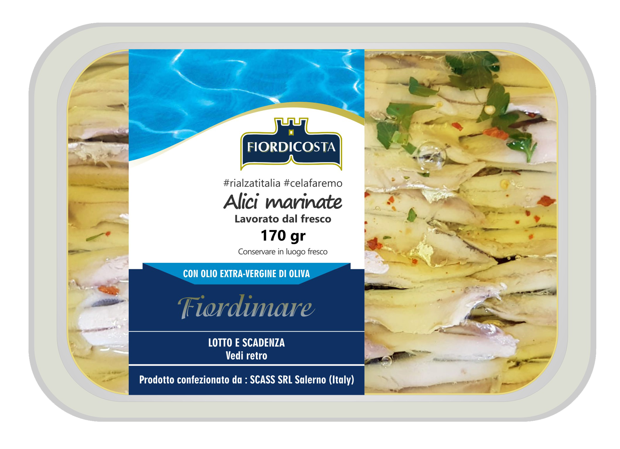 Fiordicosta varumärke av företaget Scass srl, föddes i november 2011; ett certifierat företag, erbjuder på marknaden fiskprodukter av jordbrukslivsmedelskulturen som är typisk för Kampaniens kuster, genom en rad klassiska förpackningar, med hjälp av råvaror som tagits från utvalda fiskmarknader och partnerskap med konsortier och fiskare kooperativ i området. Erfarenheterna av de olika trenderna på marknaderna och tidigare generationer, har lett oss till slutförandet av en färdig produkt som ligger på ett medelhögt mål. Världen av catering utvecklas ständigt och med våra produkter kan vi följa alla gastronomiska segment och erbjuda hög kvalitet till både konsumenter och professionella aktörer inom sektorn. Kvalitetslösningar som lämpar sig för alla behov, med full respekt för traditionerna, med ett åtagande som alltid syftar till att förbättra. Idag, efter mer än 10 år av Brewing Fine Fisk-Food, är vi närvarande i de bästa distributionskedjorna i HO.RE.CA. Snabbmat och marknadsföring