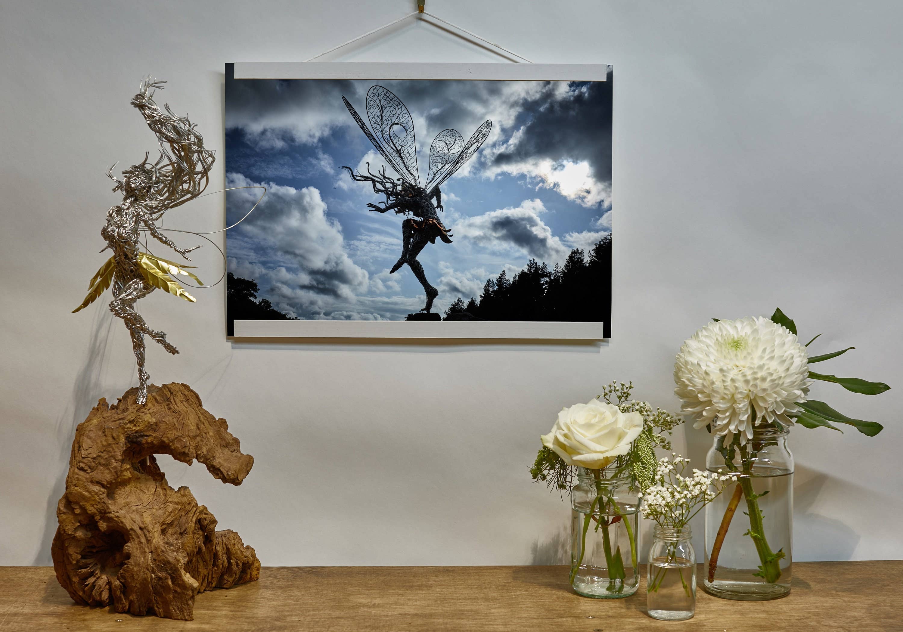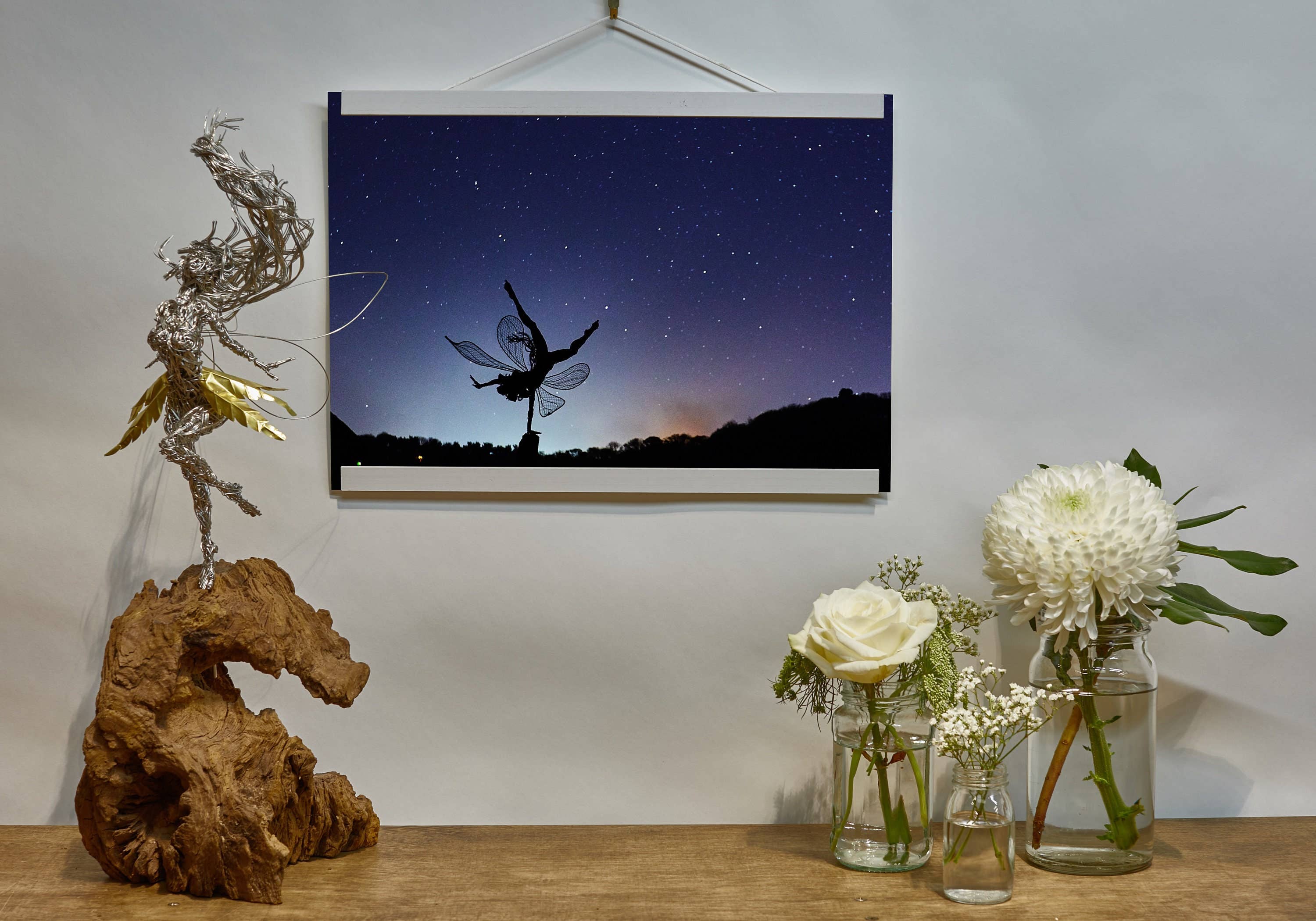 Vi är ett familjeföretag som tillverkar och säljer Fantasy-relaterade tråd/metallverk och produkter. Hela konceptet kom från min far Robin, som skapade och skulpterar trådfeer skulpturer. Du kanske har sett några av hans skulpturer i Trentham Gardens i Staffordshire. Det var medan man lagade ett staket som idén om tråd som ett skulpturalt medium kom till. Tråd är perfekt för amatörskulptören eftersom den inte kräver någon svetsning eller speciella processer, och är praktiskt taget obegränsad i vad du kan producera. Det är som metalllera. Allt du behöver är en trådspole, en tång och din fantasi. Vi tillverkar och säljer också en mängd olika hantverksprodukter och presentidéer, kolla bara in vår onlinebutik för att se mer. ”Älvor åberopar tankar om fantasi. De hjälper dig att fly från den verkliga världen ett ögonblick och är i allmänhet förknippade med bra saker. Älvor är trevliga. Jag tillverkar trådfeer eftersom jag älskar hela den kreativa processen att designa och bygga något fint och känsligt från hårda industriella material.” ”Det finns ingen större känsla av tillfredsställelse än att stå tillbaka och säga till dig själv ”Jag gjorde det” och vara stolt över det. Den tekniska termen för det är ”personlig byrå” och det saknas tyvärr i den moderna världen av ställföreträdande liv. Det är så givande som konstnär att kunna dela med mig av vad jag gör och hur jag gör det med världen.”
