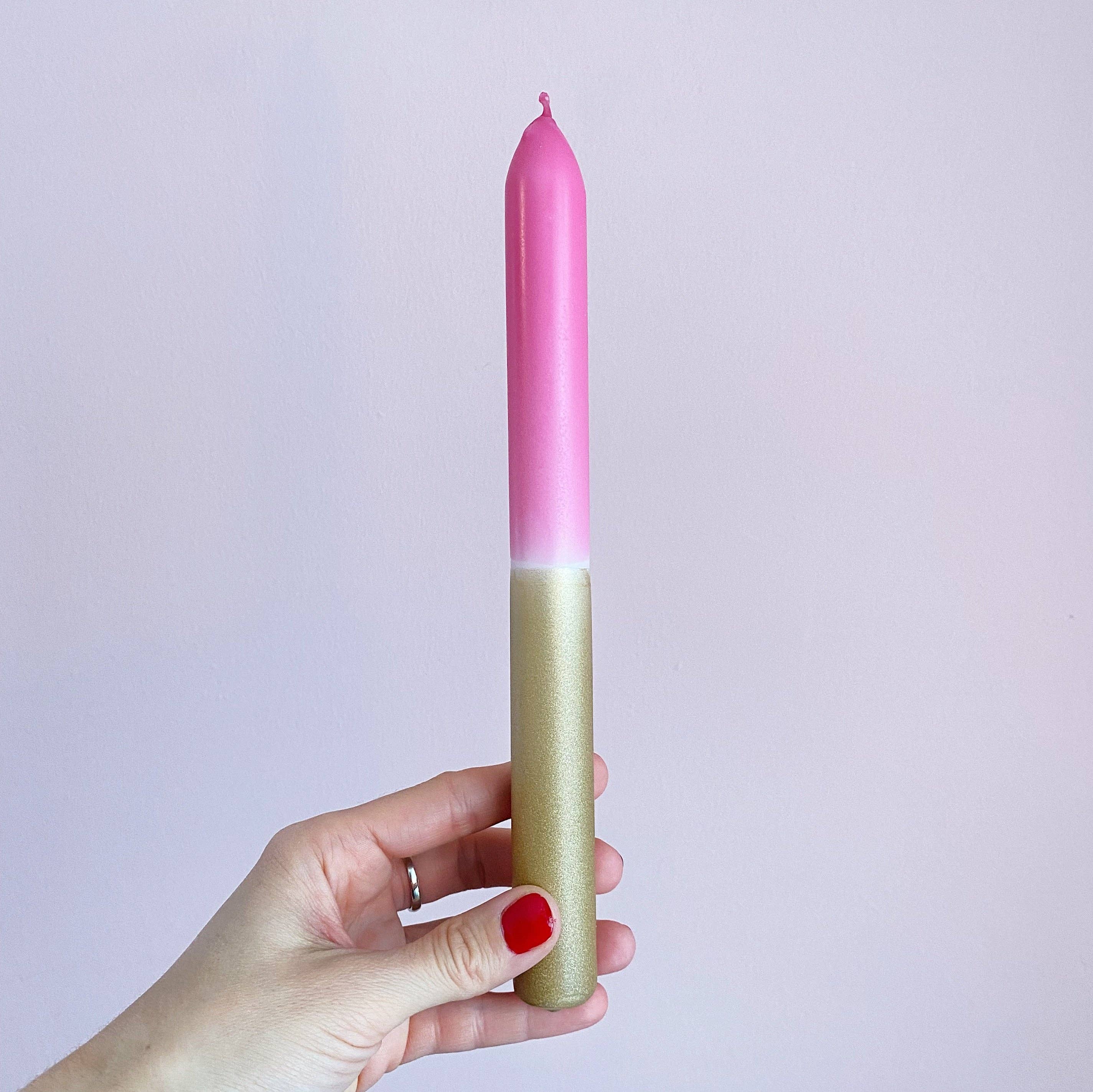 Handfärgade ljus sedan 2020 i ständigt föränderliga säsongsmässigt samordnade kombinationer dipdye pelare, stav och virvel ljus i neon eller pastell look