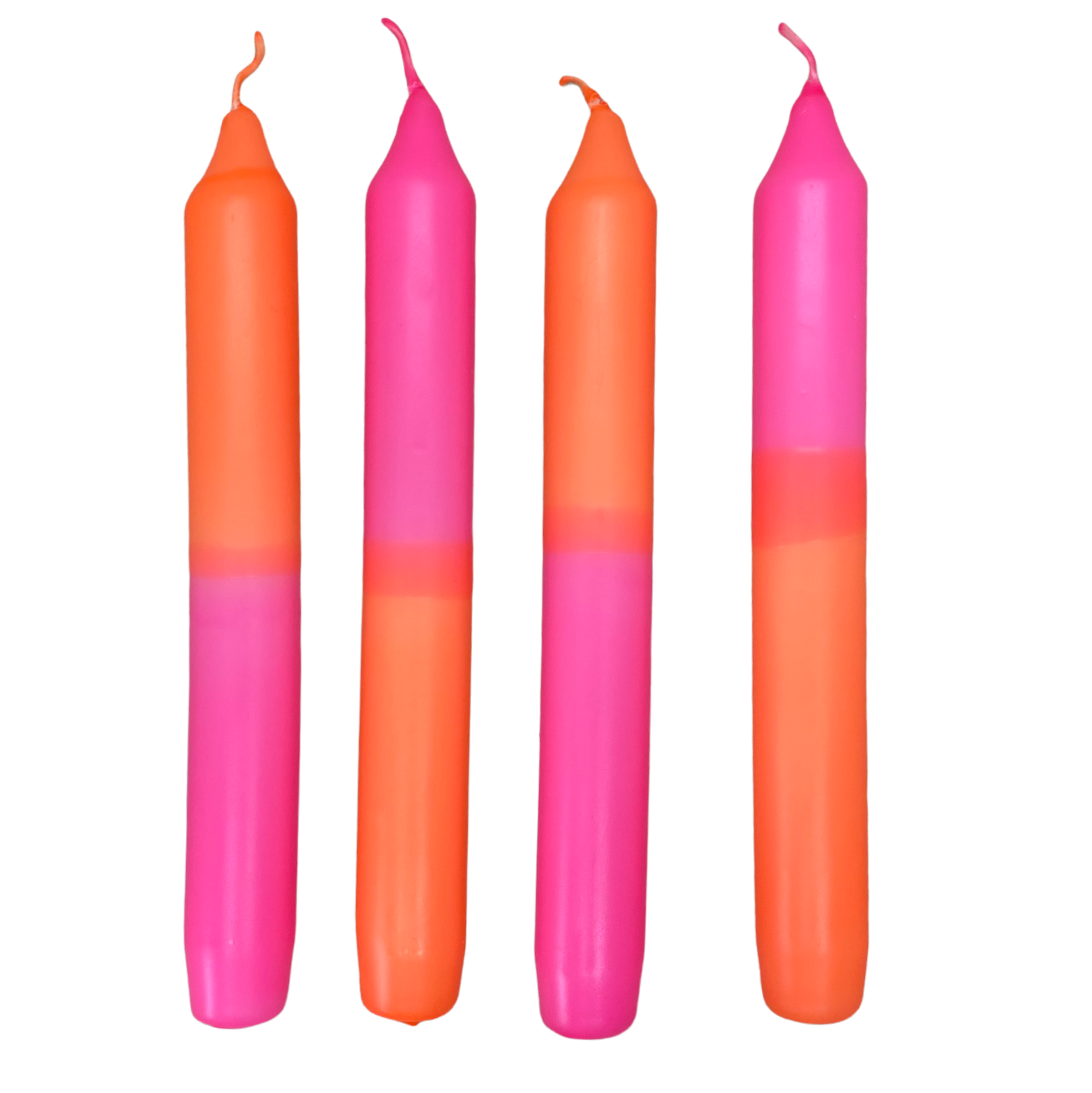 Handfärgade ljus sedan 2020 i ständigt föränderliga säsongsmässigt samordnade kombinationer dipdye pelare, stav och virvel ljus i neon eller pastell look