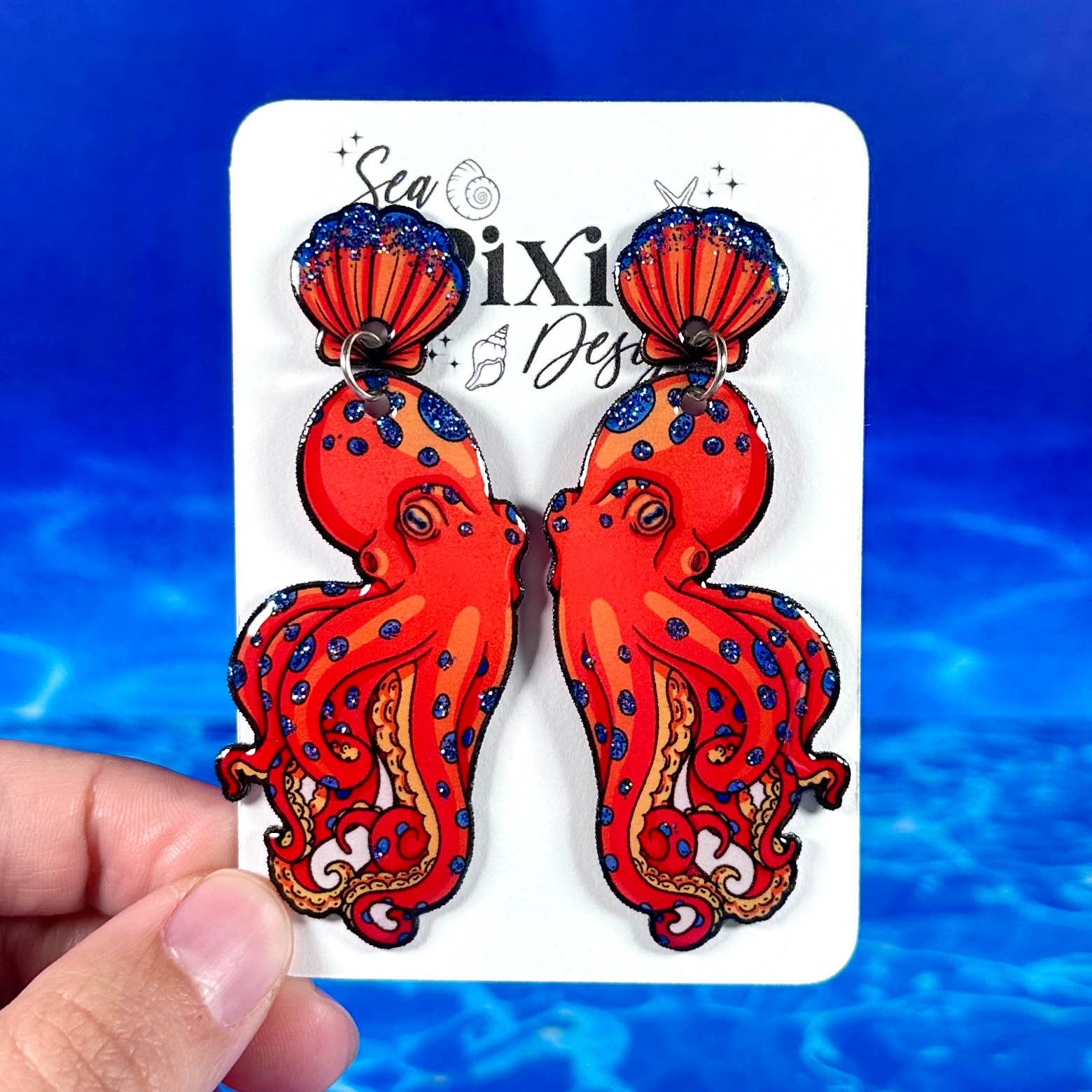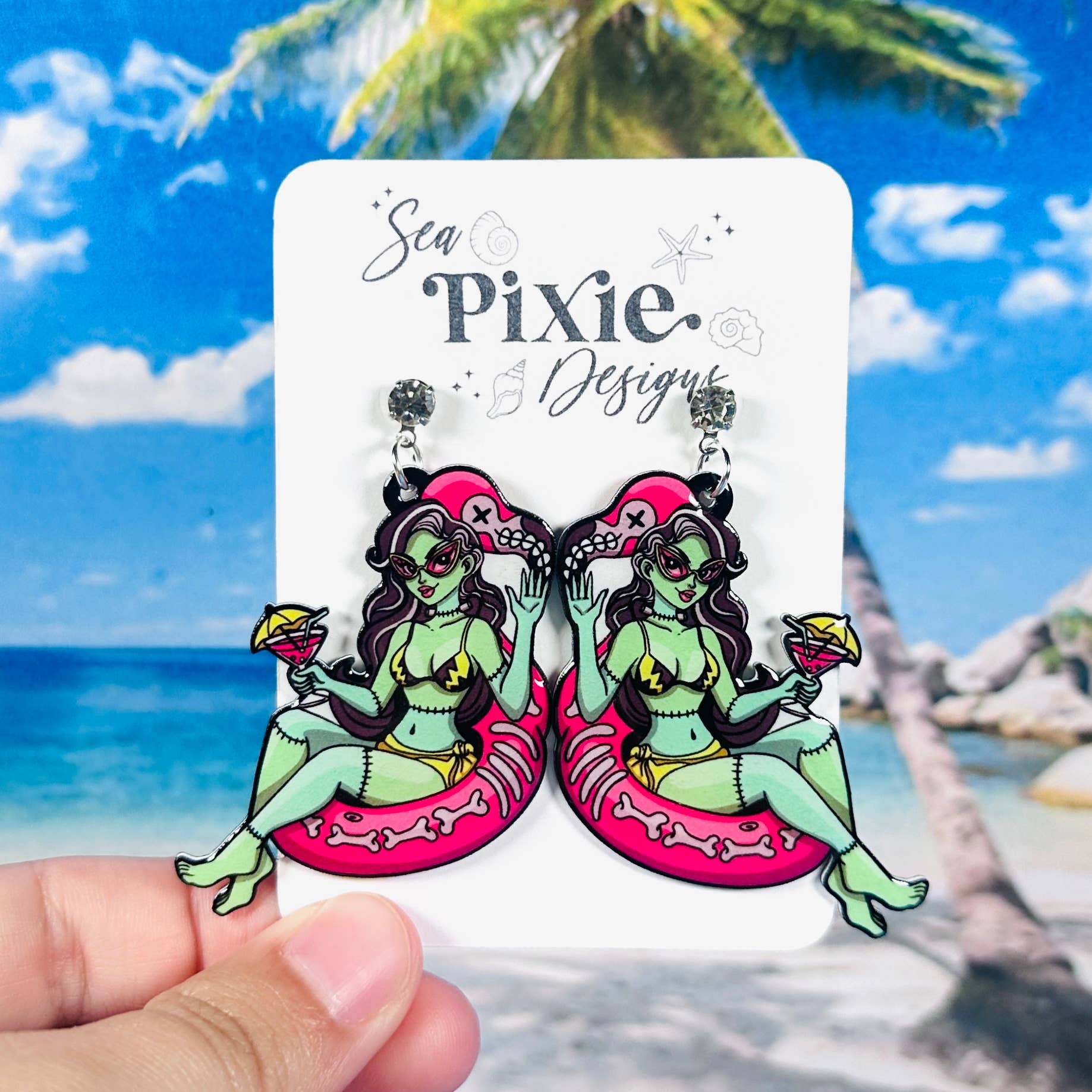Sea Pixie Designs är ett varumärke som fokuserar på originalkonst och firar unika, fantasifulla och uttrycksfulla smycken. Sea Pixie Designs grundades av en konstnär och före detta gymnasielärare, som ville skapa bärbar konst som visade upp hennes illustrationer. Varje par örhängen har handritade illustrationer och är handgjorda med omsorg och uppmärksamhet på detaljer. Varje örhänge är ett statement, med djärva färger, glitter och unika designer, samtidigt som de förblir lätta för känsliga öron. Sea Pixie Designs erbjuder också pins och klistermärken av dessa unika illustrationsdesigner.