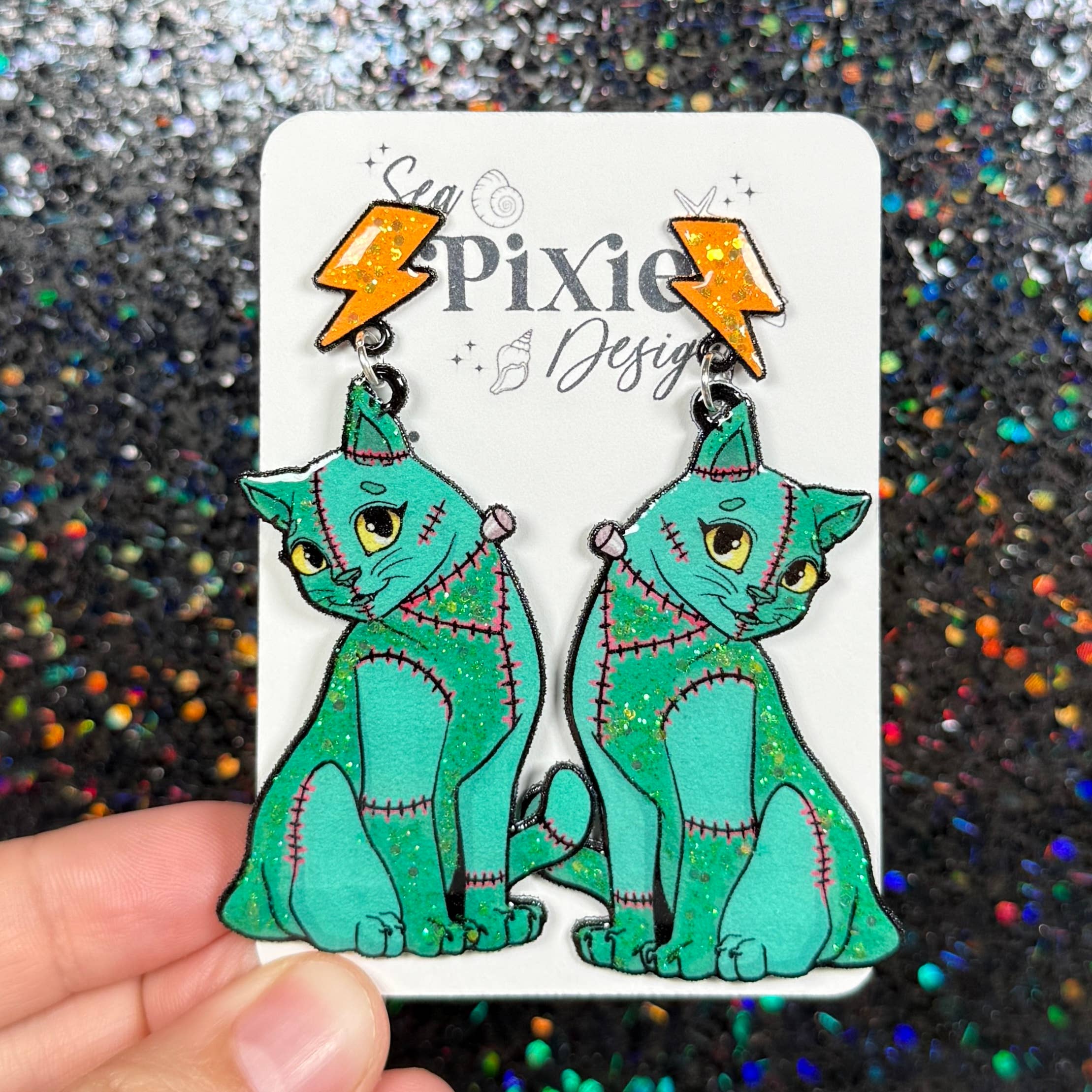 Sea Pixie Designs är ett varumärke som fokuserar på originalkonst och firar unika, fantasifulla och uttrycksfulla smycken. Sea Pixie Designs grundades av en konstnär och före detta gymnasielärare, som ville skapa bärbar konst som visade upp hennes illustrationer. Varje par örhängen har handritade illustrationer och är handgjorda med omsorg och uppmärksamhet på detaljer. Varje örhänge är ett statement, med djärva färger, glitter och unika designer, samtidigt som de förblir lätta för känsliga öron. Sea Pixie Designs erbjuder också pins och klistermärken av dessa unika illustrationsdesigner.