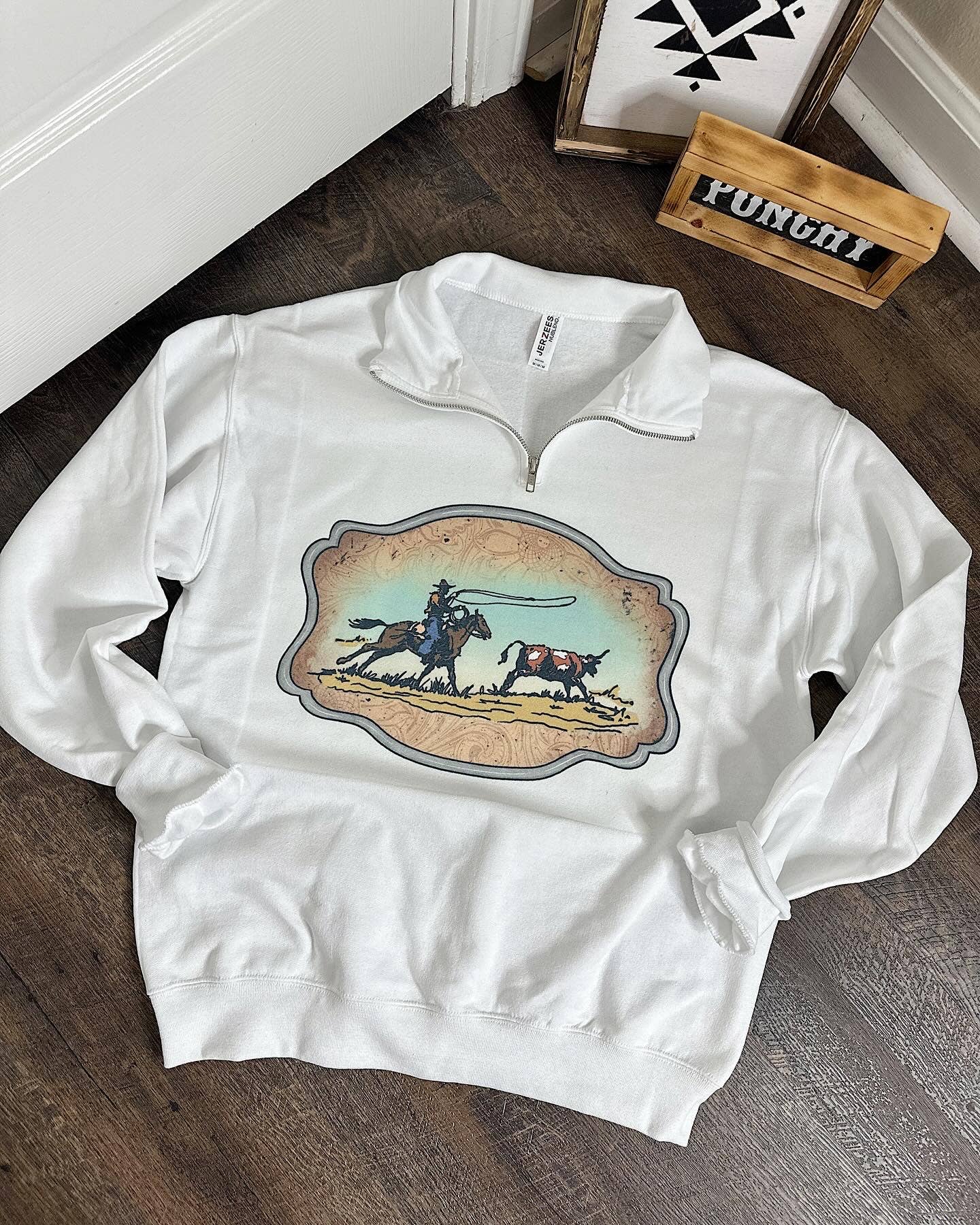 Om du älskar västerländskt mode men också vill vara bekväm och avslappnad, har du kommit rätt! Vi är en västerländsk butik belägen i Louisiana som erbjuder grafiska t-shirts, crewnecks, quarter zips och MER! Vi försöker erbjuda ett stort utbud av västerländska och trendiga designer så att det finns något för alla! Jag hoppas att du älskar det du ser! - Madison från Gunpowder and Glam!