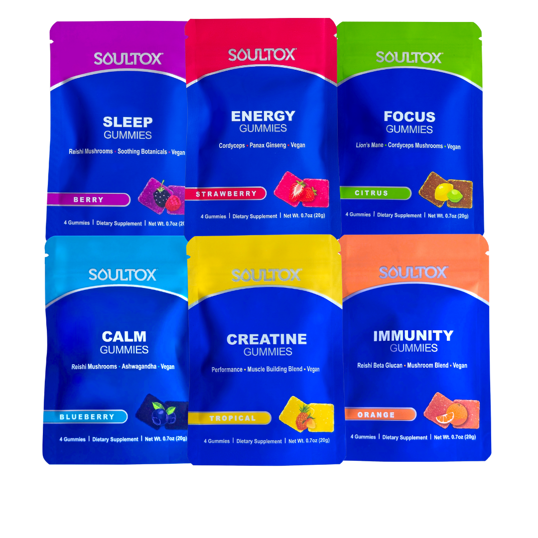 Soultox: En resa till läkning Soultox föddes från grundarens personliga hälsokamp. Han kämpade mot kroniska tarmproblem och frekventa sjukhusbesök och fann ingen varaktig lättnad från konventionell medicin. Frustrerad vände han sig till naturen och utforskade holistisk läkning, gamla metoder och modern näring. Genom denna resa upptäckte han att sann hälsa börjar inom kroppen, med fokus på tarmhälsa och naturliga ingredienser. Soultox framträdde som ett varumärke dedikerat till att återställa balans och ge människor möjlighet att ta ansvar för sin hälsa. Vårt uppdrag Soultox är mer än ett wellnessvarumärke; det är en rörelse mot holistiskt liv. Vi erbjuder produkter som ger näring, avgiftar och stödjer kroppens naturliga läkning. Våra växtbaserade erbjudanden hjälper människor att må bäst och leva livet fullt ut. Våra produkter: Alkaliskt mineralinfunderat vatten: Hydraterar och balanserar kroppen med viktiga mineraler och organiska smaker, vilket stöder tarmhälsa och energi. Vegan Functional Mushroom Gummies: Med reishi, lejonman och cordyceps stöder dessa gummier immunitet, mental klarhet och stressanpassning. För varje kropp Wellness är personligt. Oavsett om du ökar tarmhälsan, förbättrar energin eller förbättrar fokus, är Soultox här för att stödja din resa med högkvalitativa, ekologiska produkter. Soultox: Läka din kropp, höja din själ. Vem har själen?