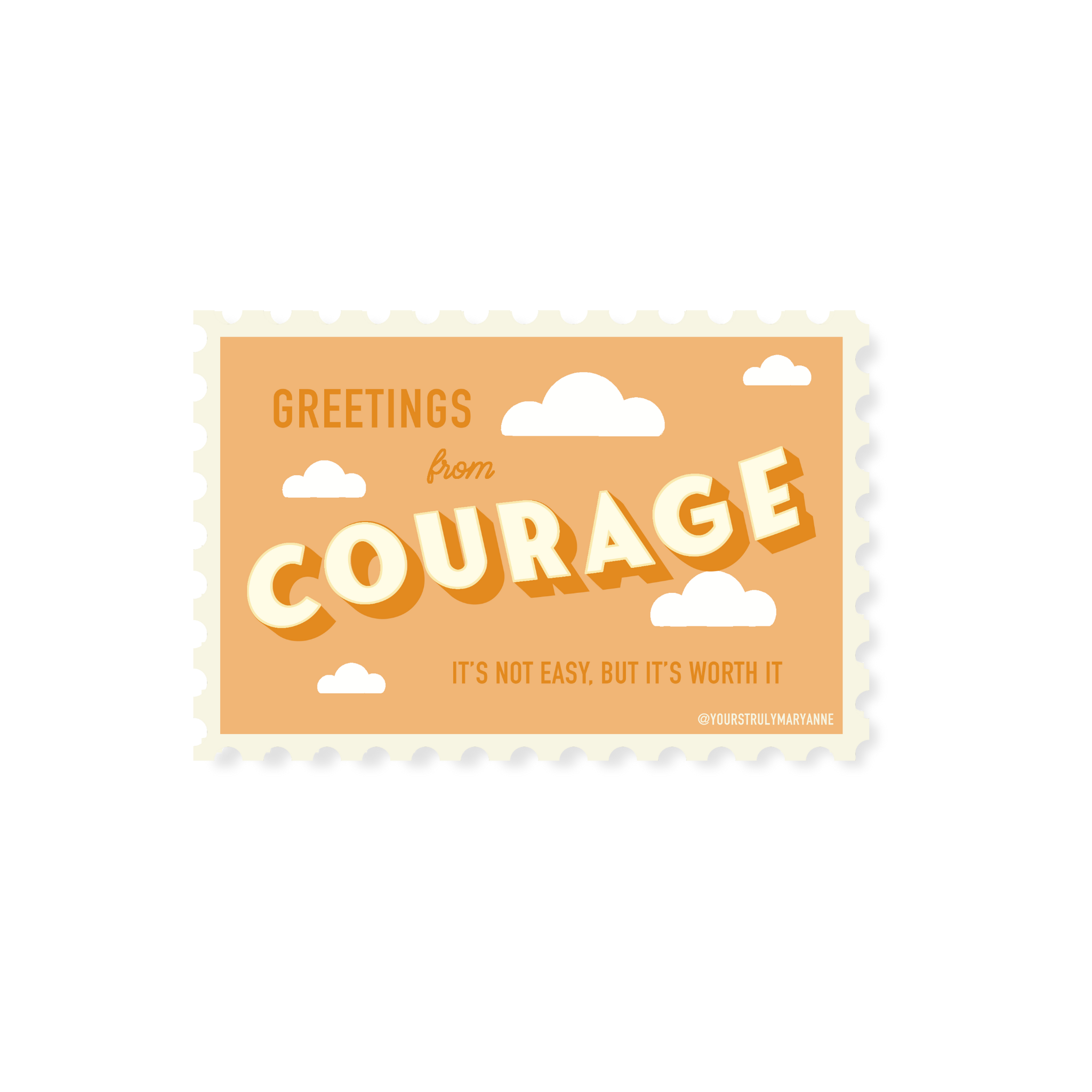 Är du redo för en resa genom din inre värld? Hej, jag heter Mary Anne och jag är konstnär, äventyrare i inre världen, socialarbetare och medmänniska. Jag skapade Yours Truly, Mary Anne efter att ha navigerat ensam på den mentala hälsoresan och äntligen hittat ett säkert utrymme att dela mina erfarenheter i terapi tillsammans med andra som kan relatera. Jag sökte högre utbildning i socialt arbete för att ge samma utrymme till andra och hittade ett sätt att använda denna ovärderliga kunskap och mina erfarenheter för att kanalisera min kreativitet och erbjuda stöd på ett mer tillgängligt sätt. Mitt mål är att hjälpa andra att känna sig mindre ensamma, validera dessa mycket mänskliga upplevelser och normalisera samtal kring mental hälsa. Jag strävar efter att fira vad det innebär att vara människa - misstag, rädslor, glädje, och allt... och bjuder in nyfikenhet att avslöja de vackra delarna av det som gör oss till de vi är. Mina mönster, skrivande och produkter är inspirerade av de platser vi reser genom våra inre världar, de destinationer vi vågar drömma om, och de människor vi ansluter till genom denna livslånga resa hem till oss själva. Du hittar färgglada illustrationer, lekfulla ordlekar, validerande meddelanden och lite sass genom mina kort, klistermärken, anteckningsblock, stift, tryck, tygväskor och mer. I ett försök att bli mer hållbara är alla mina kort tryckta på återvunnet papper med ett återvunnet papperskuvert, förpackade i komposterbara klara ärmar.