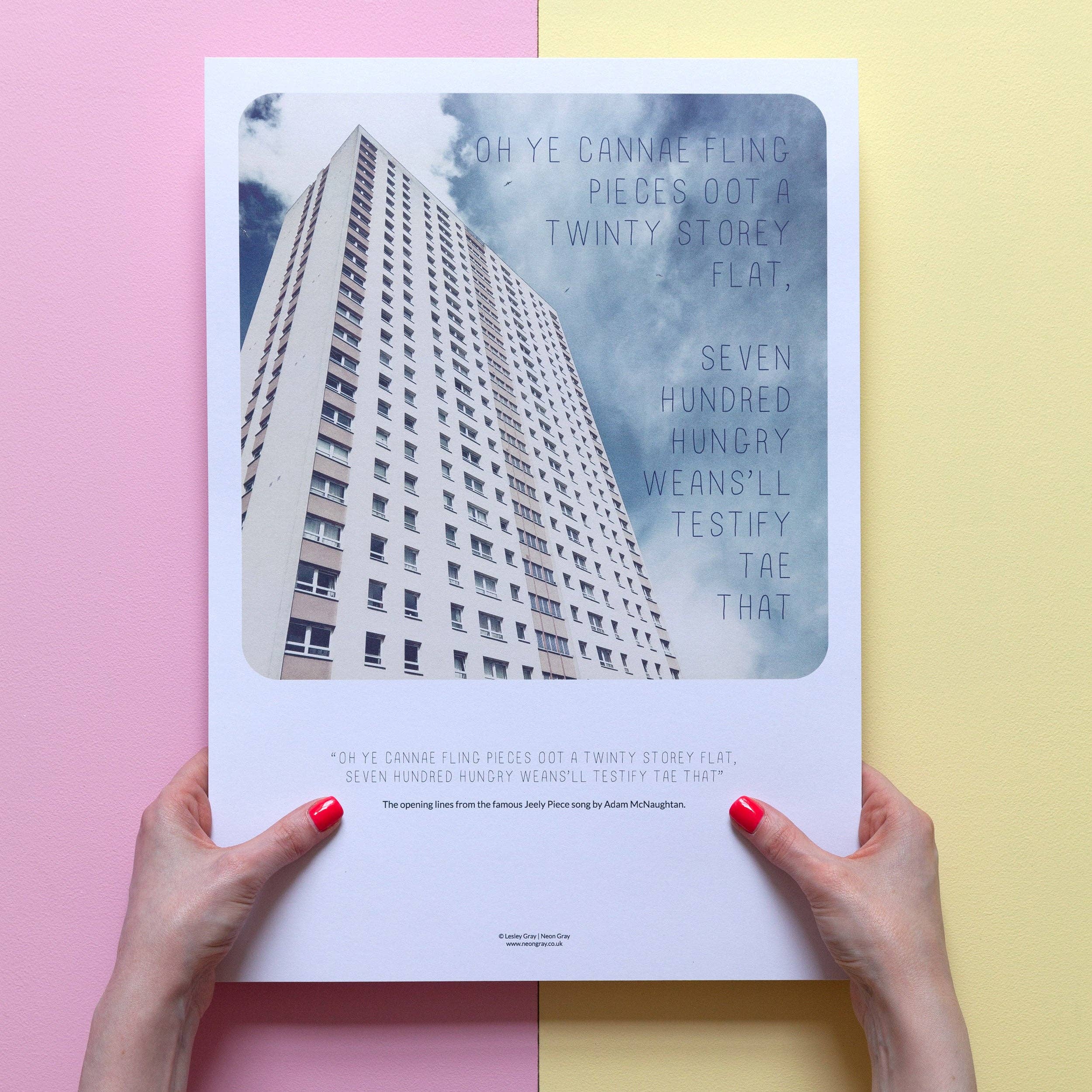 Hallå, Jag är Lesley, en resefotograf och nostalgi-junkie. Neon Gray är mitt passionprojekt. En liten produktetikett, kombinerar fotografering och design för att skapa en unik blandning av kul, knäppa konstverk. Jag har fotograferat städer, städer och landskap över hela världen i över ett decennium, men jag har alltid haft en längtan efter att gräva i hem och presentartiklar. Det började från ett litet skrivbord i hörnet av mitt vardagsrum med en rad 8 gratulationskort med min kärlek till Glasgow och den tidlösa gamla kamerastilen. Om jag var tvungen att sammanfatta varumärket med några ord skulle jag säga vintage nostalgi, retrotryck, och analog resefotografering. Jag antar att varumärket är som min svalare, yngre syskon. Det leker med vintagekameror, kasta tillbaka den till 80- och 90-talet och komma ihåg somrarna tillbringade dricka te med min mormor. Jag tror att resor och äventyr är mat för själen. Oavsett om det är att prova en ny lokal restaurang, vandra en Munro eller utforska en rustik stad någonstans i världen; äventyr är kärnan i min lycka. Resor matar min kreativitet och låter mig designa konstverk som väcker minnen och gnistor lite nostalgi eller vandringslust hos andra.