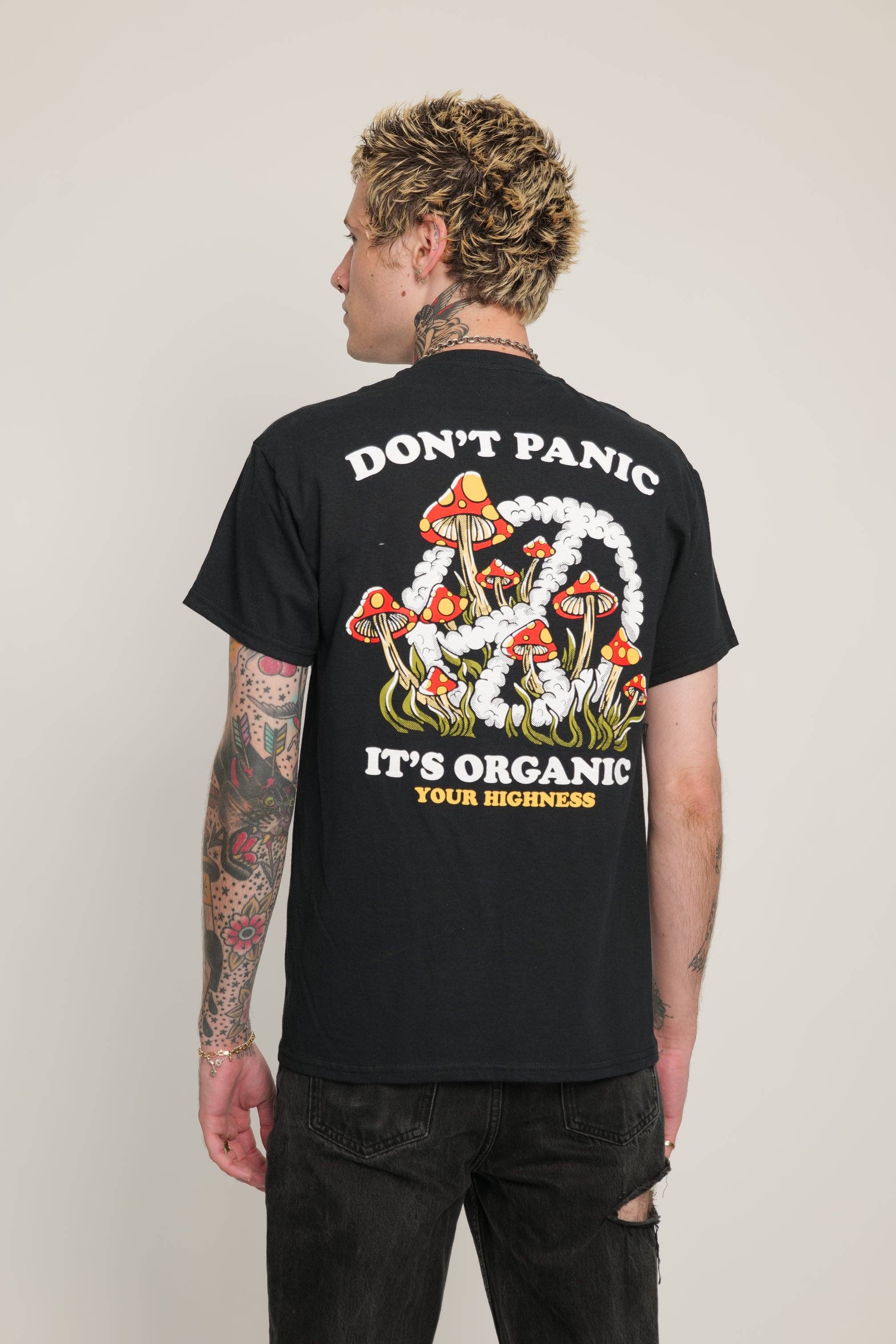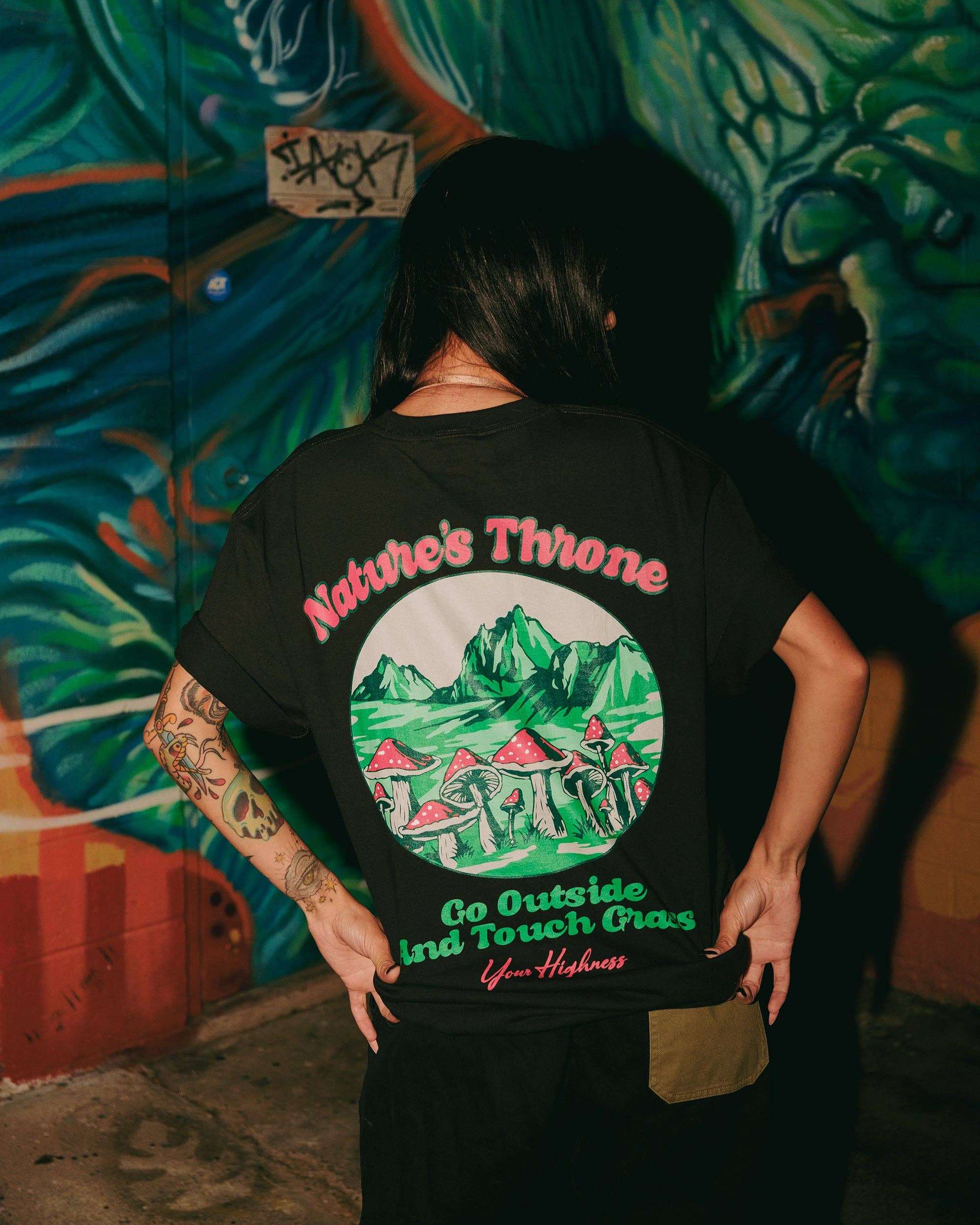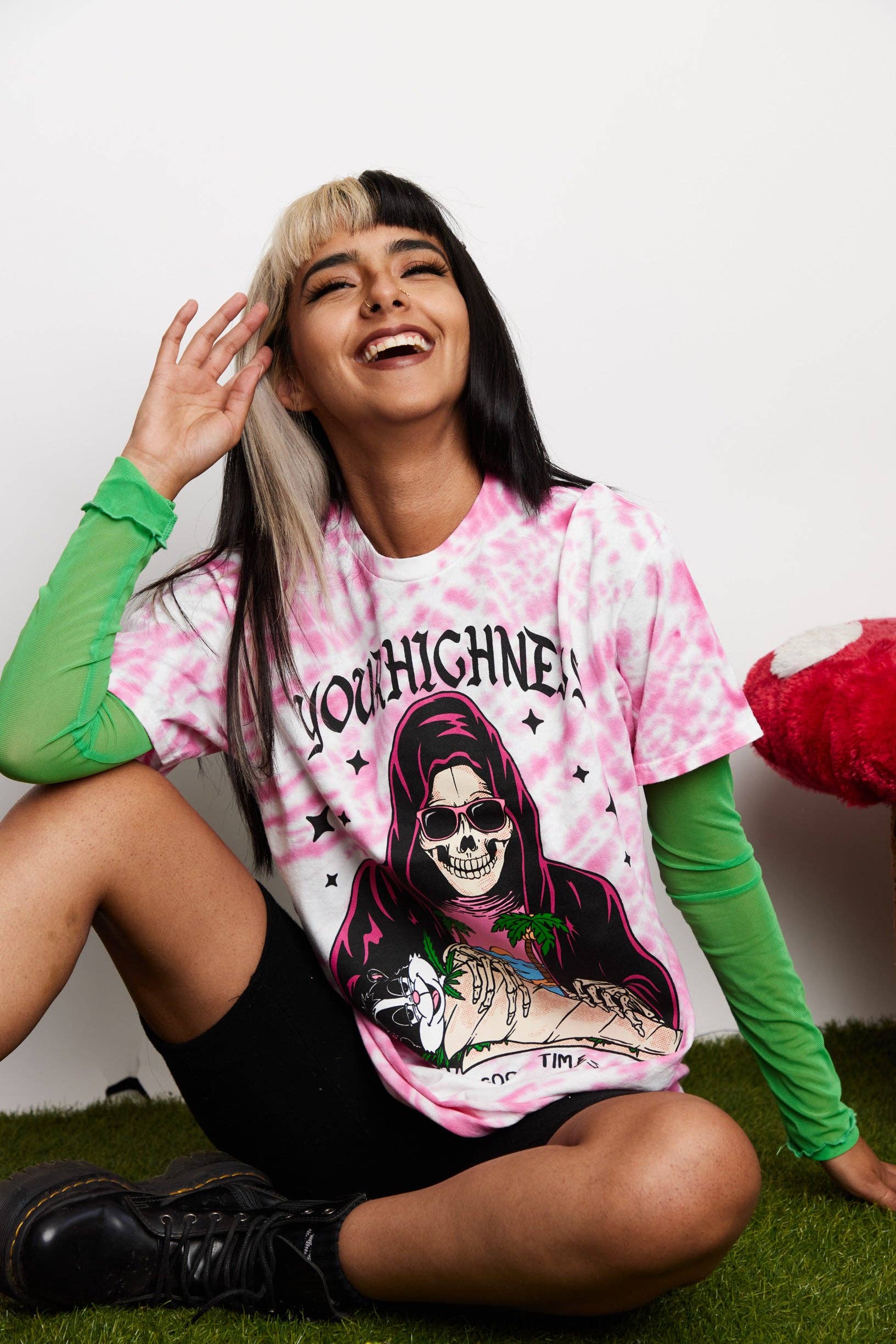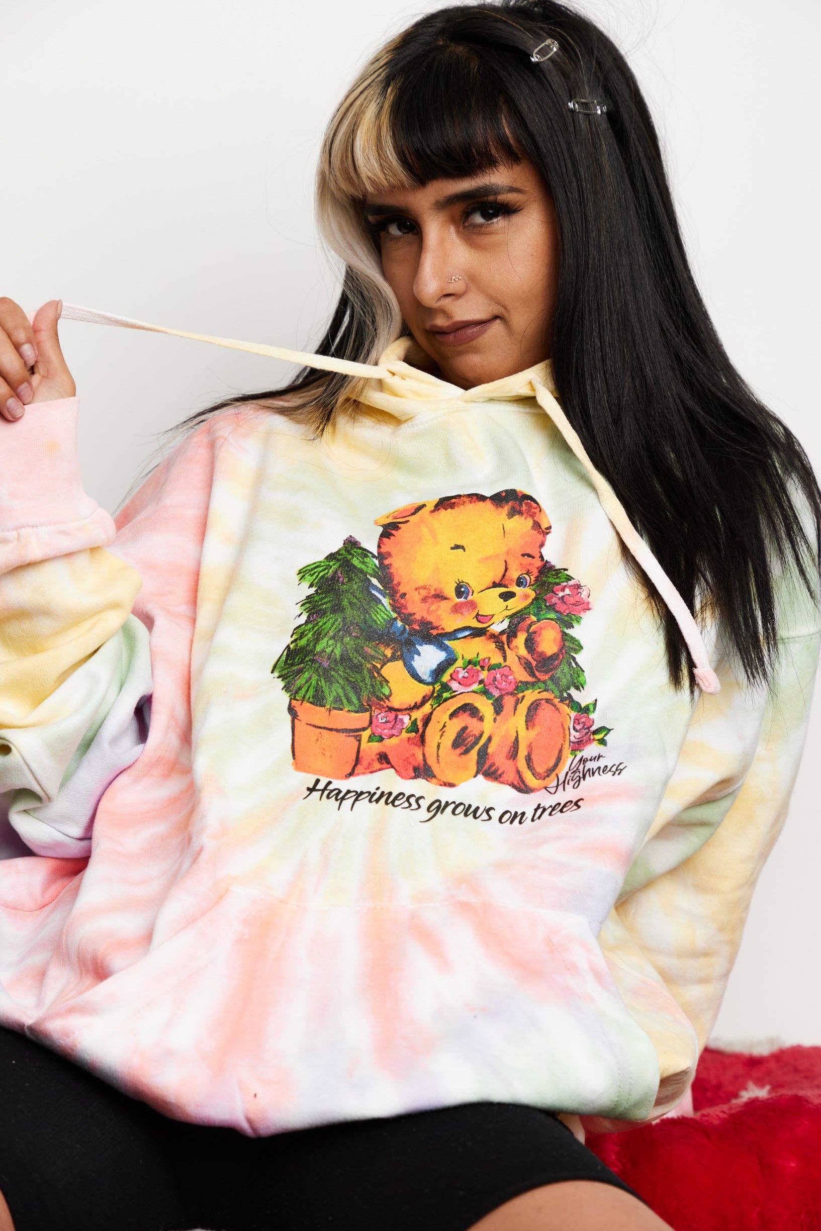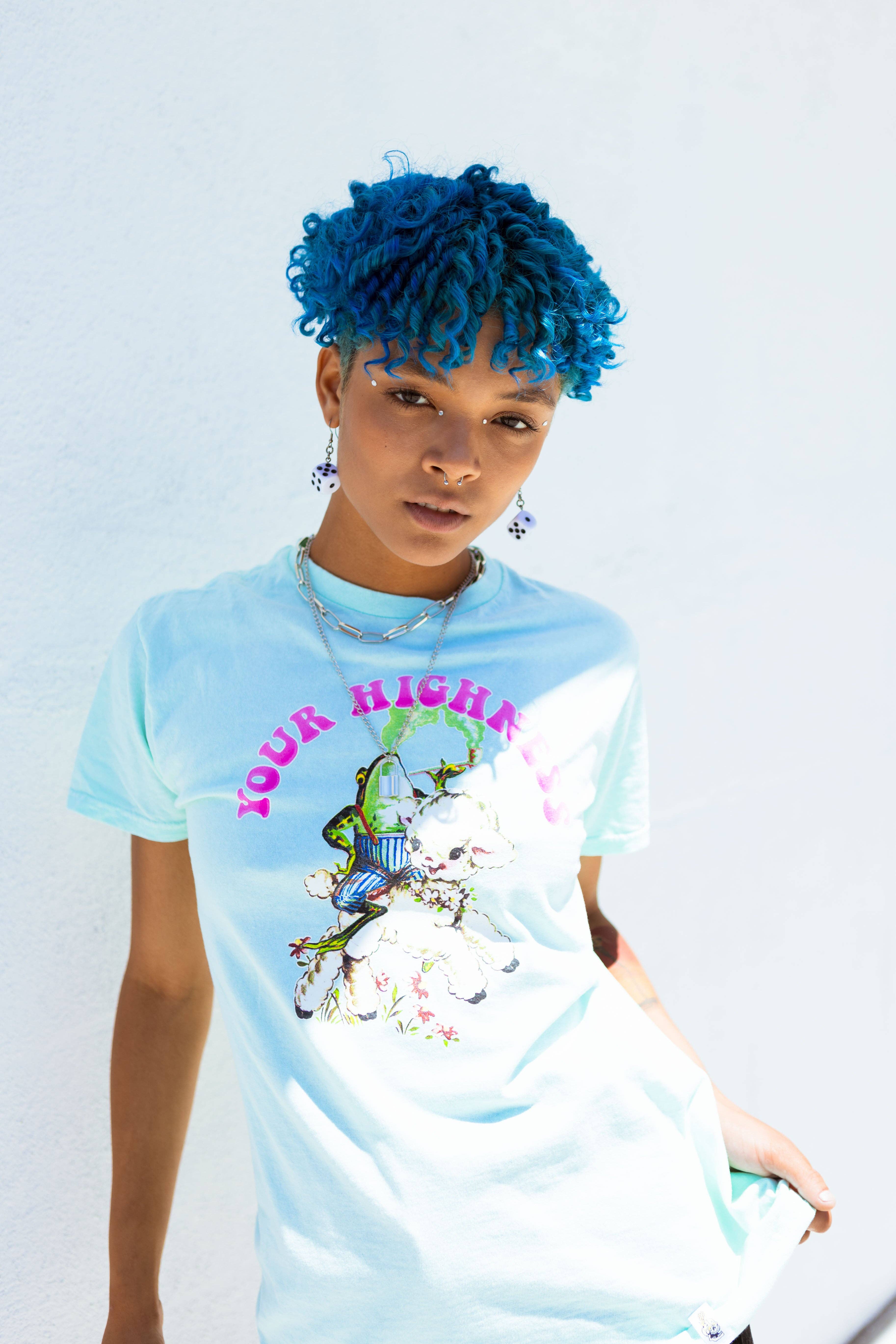 Ers höghetskläder uppmuntrar dig att ha en känsla av självvärde, omfamna positivitet och behandla dig själv som kungligheter. Med en blandning av psykedelisk grafik, popkulturreferenser och inspirerande budskap har Your Highness-kläder snabbt blivit en stapelvara i stonergarderoben. Låt oss fira höjderna och fortsätta växa, skapa vad som får dig att må bra med en högre standard.