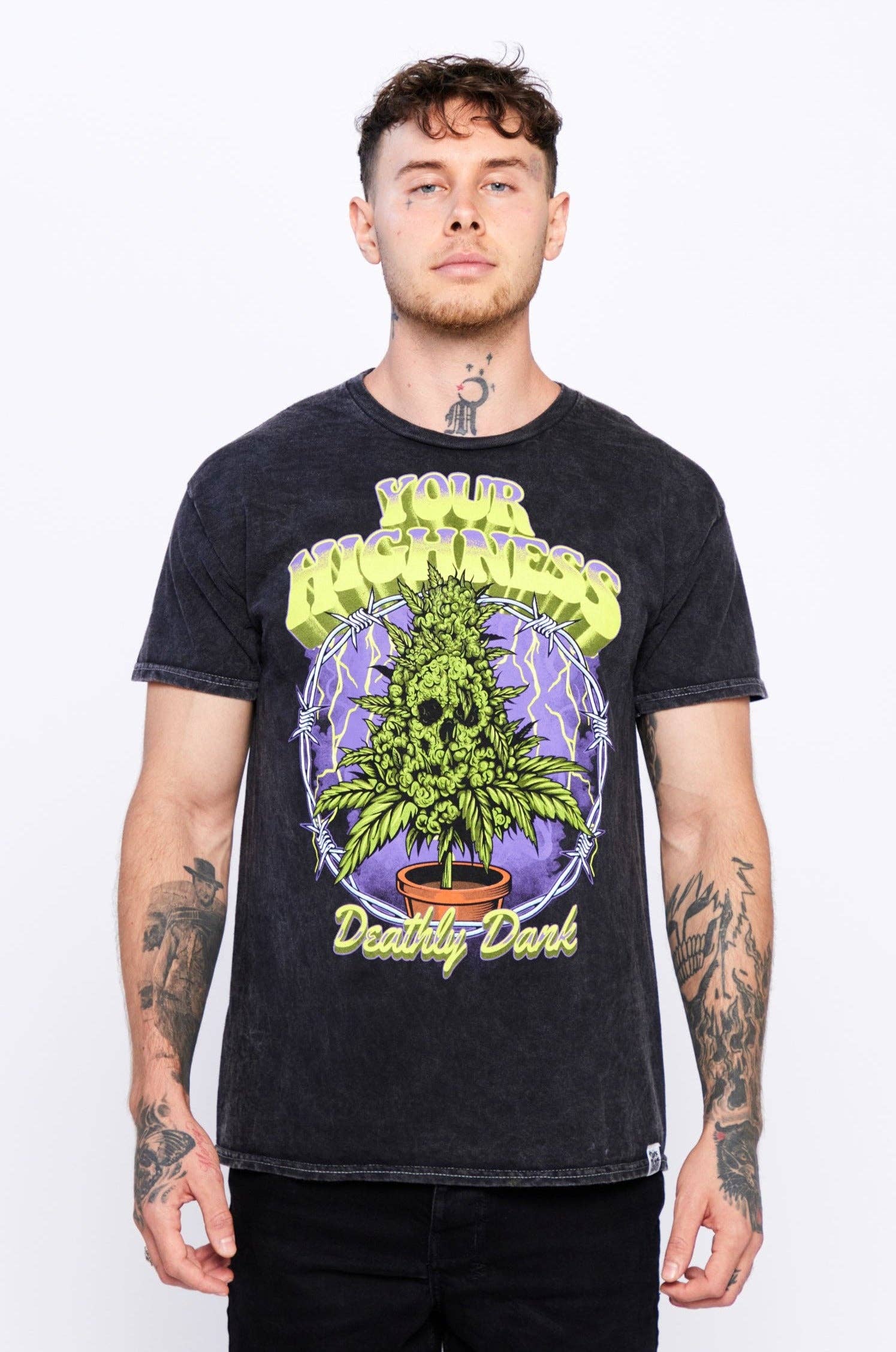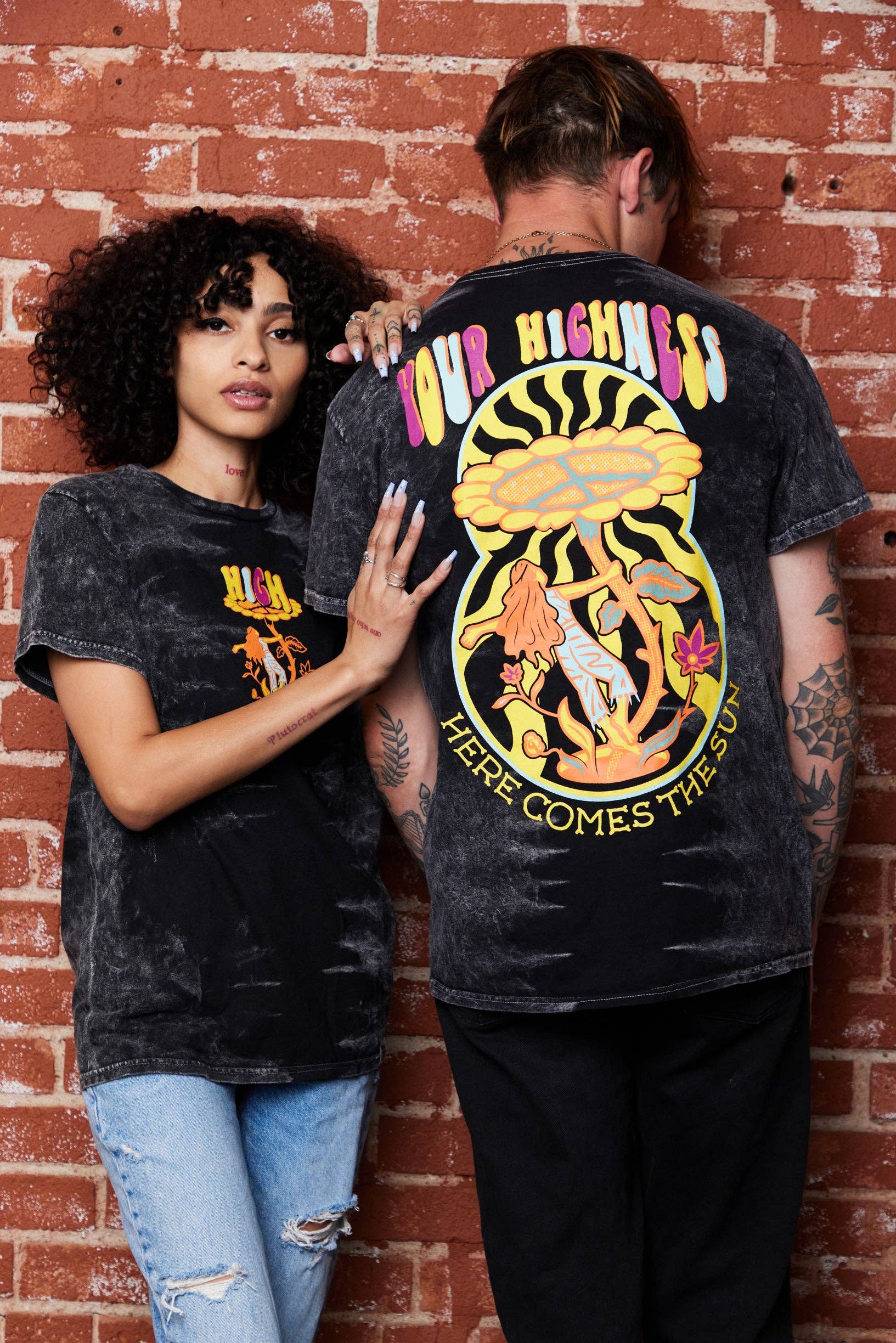 Ers höghetskläder uppmuntrar dig att ha en känsla av självvärde, omfamna positivitet och behandla dig själv som kungligheter. Med en blandning av psykedelisk grafik, popkulturreferenser och inspirerande budskap har Your Highness-kläder snabbt blivit en stapelvara i stonergarderoben. Låt oss fira höjderna och fortsätta växa, skapa vad som får dig att må bra med en högre standard.